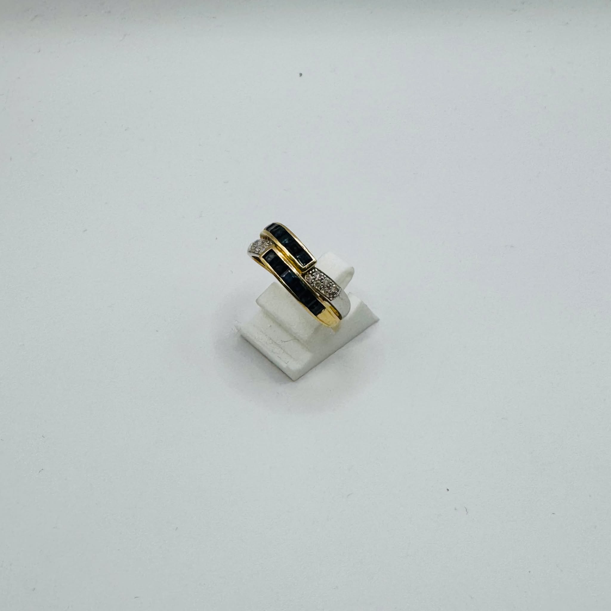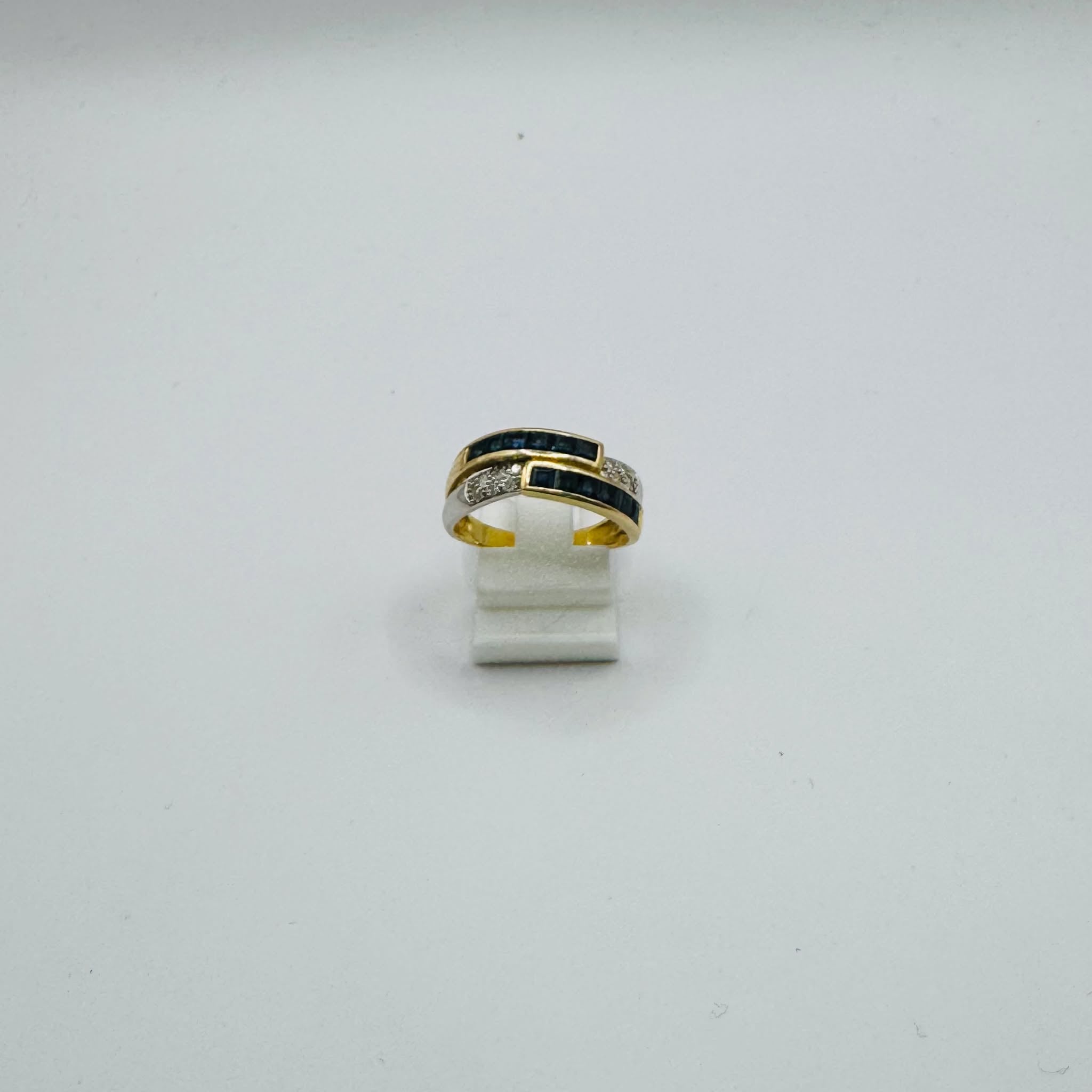 • Bague Demi Tour en Or Jaune et Blanc 18 K avec Diamants - T 59