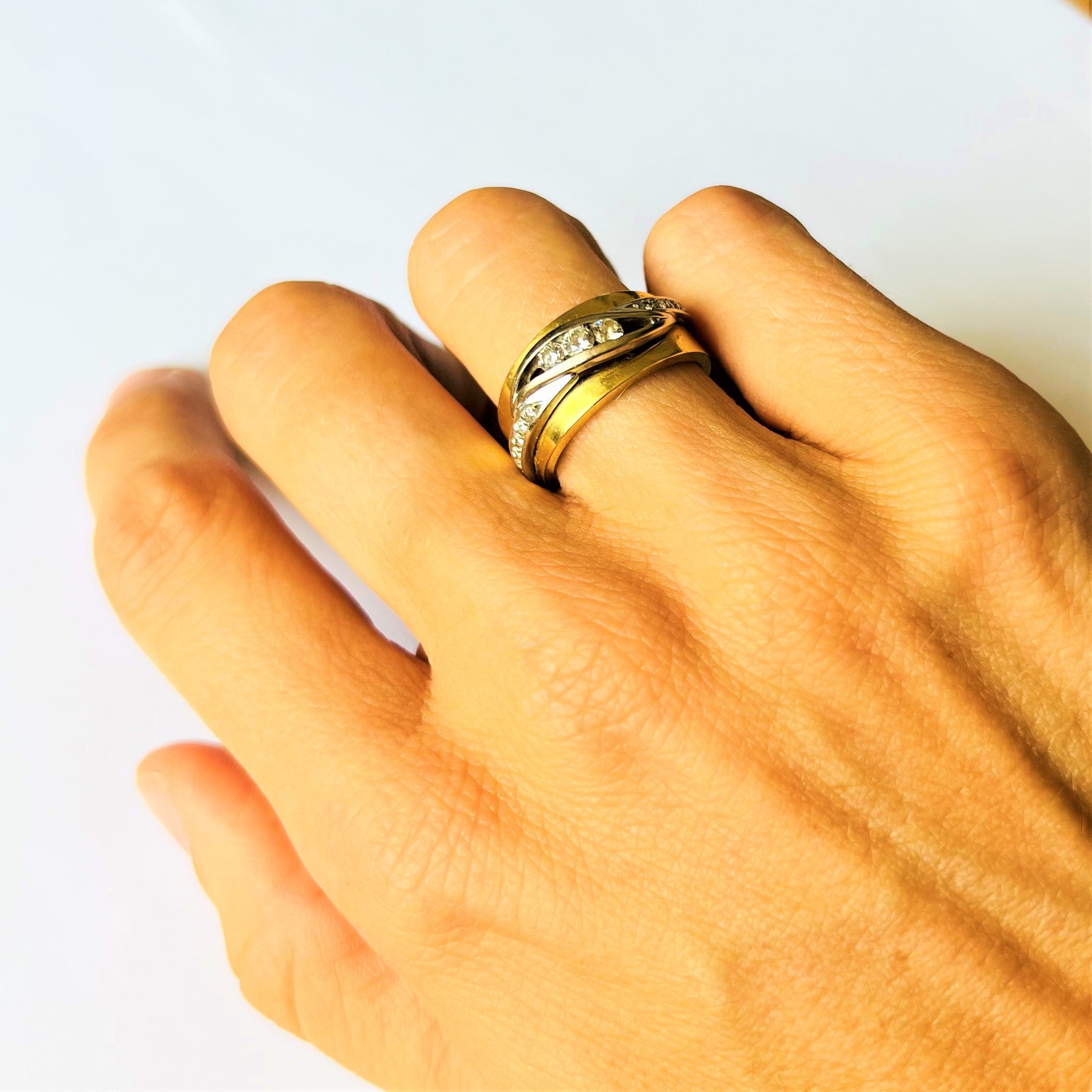 Craquez pour cette chic et élégante bague 2 ors ornée de scintillants diamants