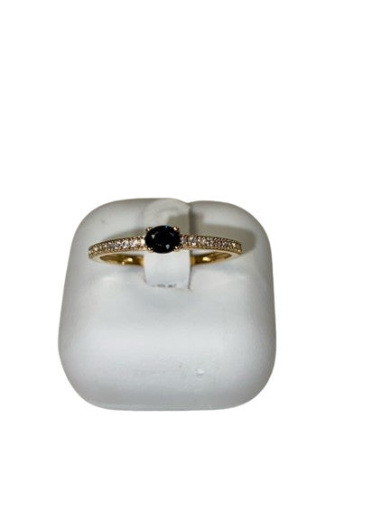 Etat : Comme Neuve Très belle bague NEUVE en or 18 carat (750/1000) avec un saphir de 3 sur 4 millimètres et 20 éclats d'oxyde de zirconium