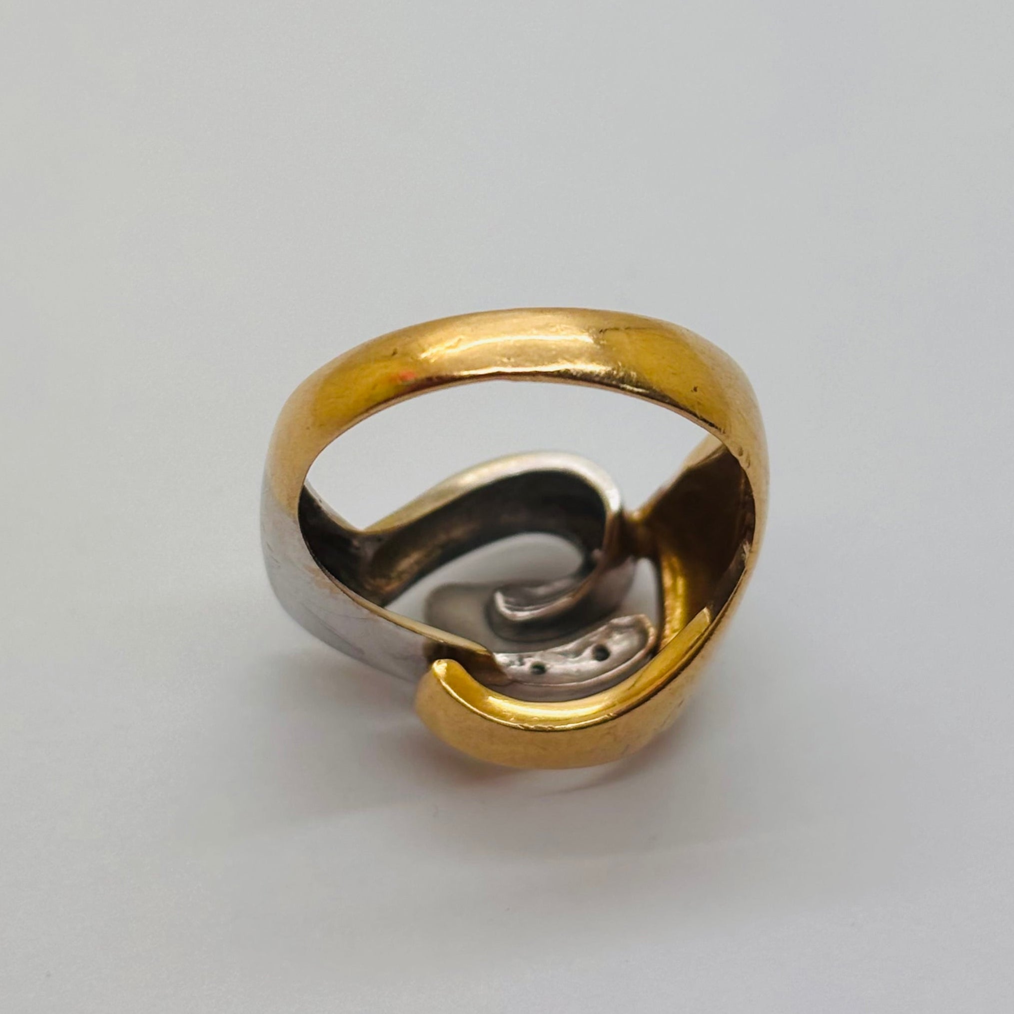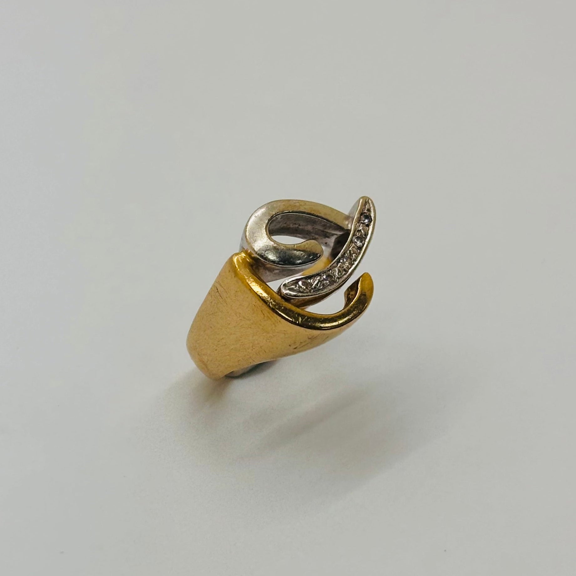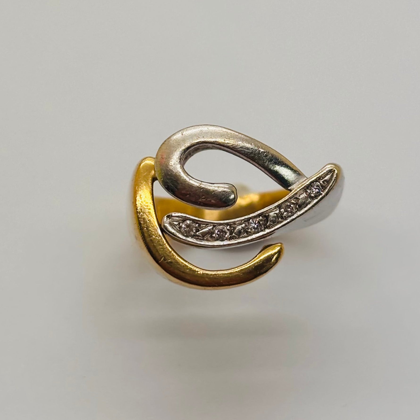 Magnifique bague en ors jaune et blanc 18 carats (750/1000), ornée de cinq petits diamants.