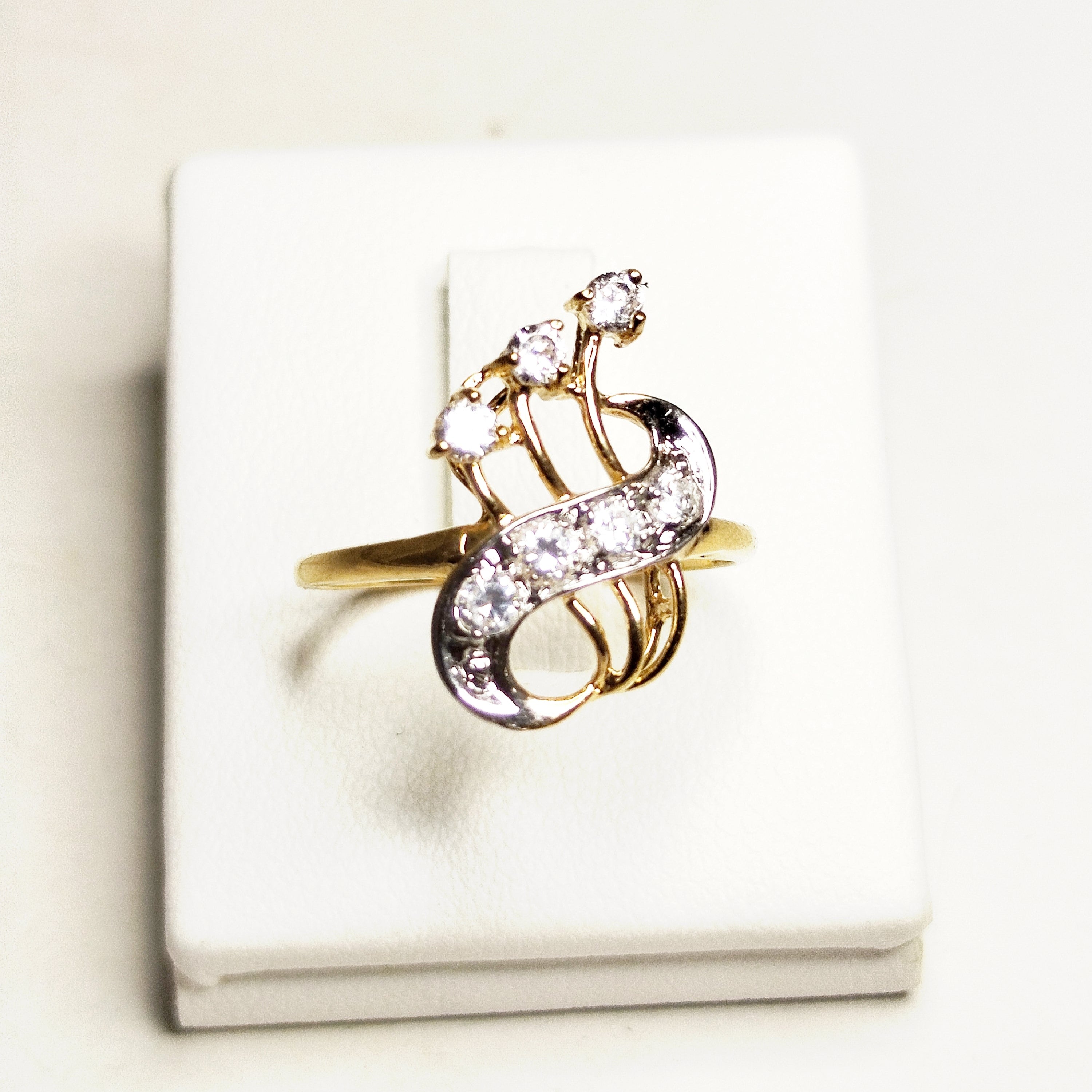 Bague empierrée en or jaune et or blanc 22 carats (916/1000), ornée de pierres en oxyde de zirconium. Taille 52, pour un poids de 2,05 g. Élégante et raffinée, elle est poinçonnée 21k et en très bon état.