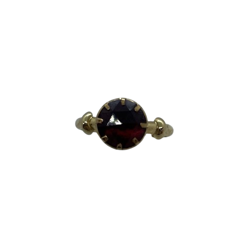 Bague empierrée en or jaune 18 carats (750/1000), ornée d’un grenat. Elle est en taille 55 et pèse 3,23 grammes. Ce bijou ne porte pas de poinçon mais reste en bon état. Un modèle élégant à la fois sobre et raffiné, idéal pour un usage quotidien ou à offrir.