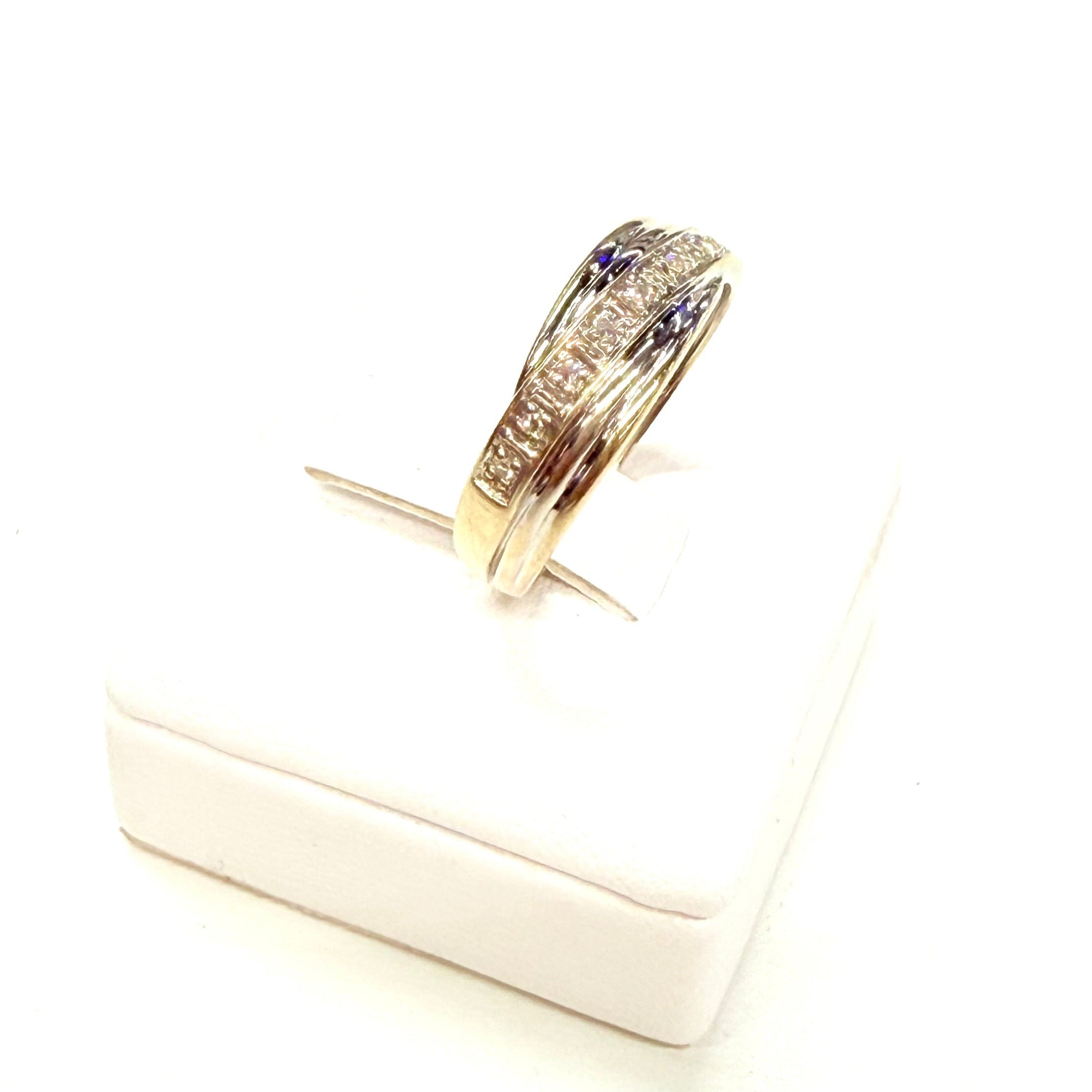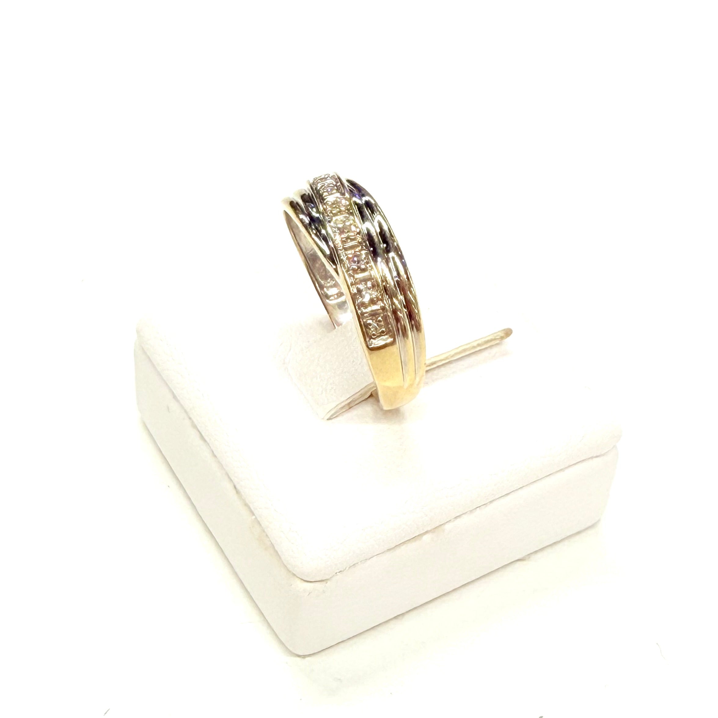 Bague empierrée en or blanc 18 carats (750/1000), poinçonnée "750". Elle pèse 2 grammes et est proposée en taille 52. Le modèle est serti de diamants qui lui confèrent une élégance discrète et raffinée. La bague est en très bon état.