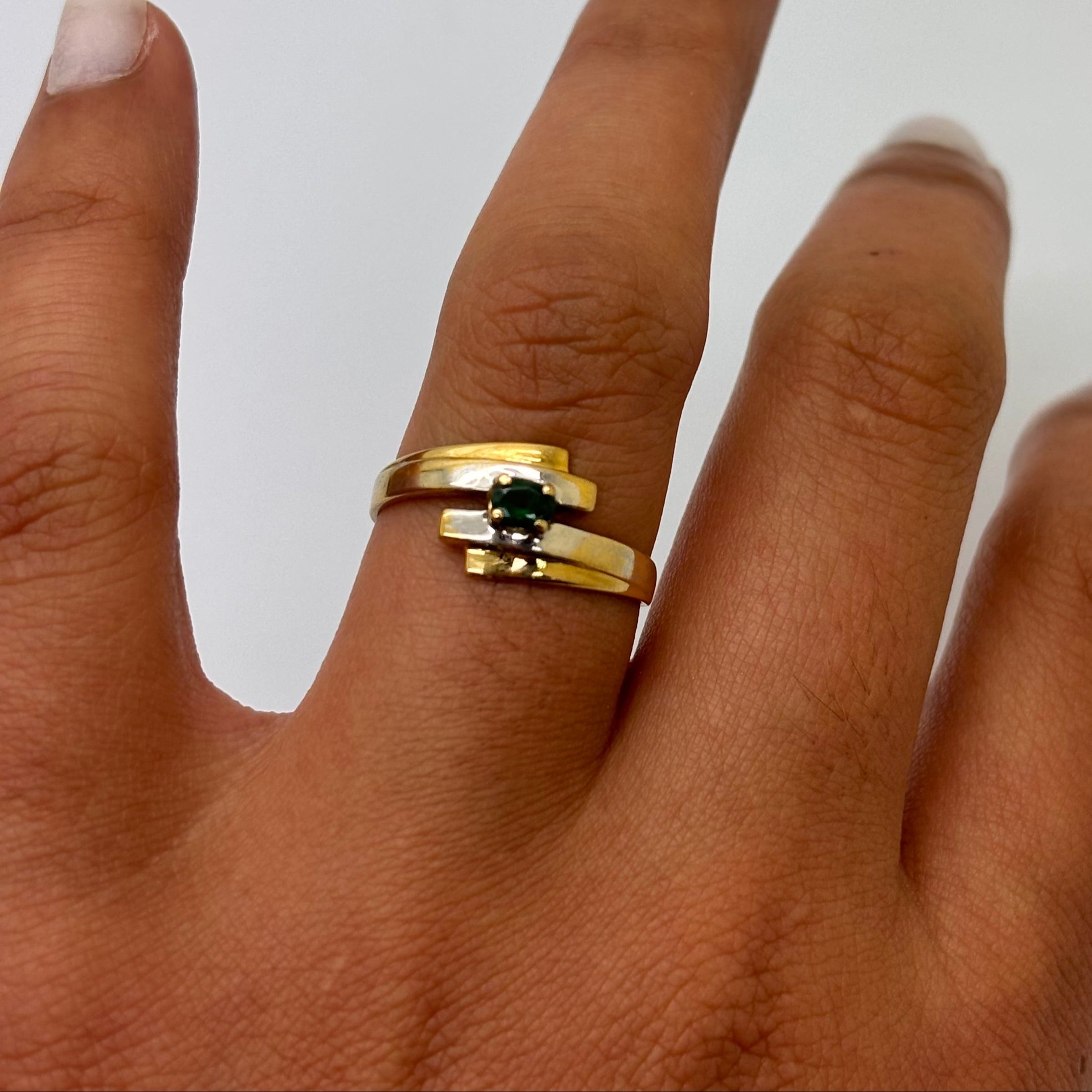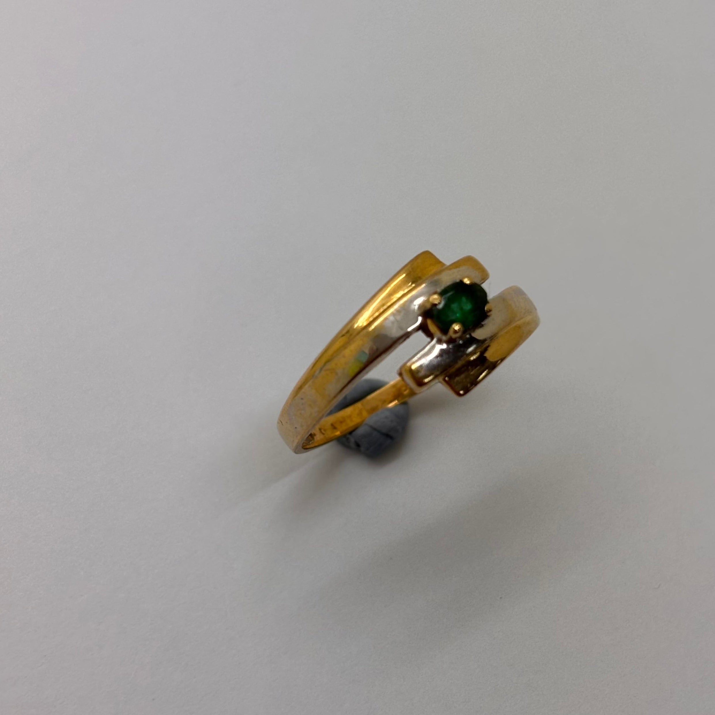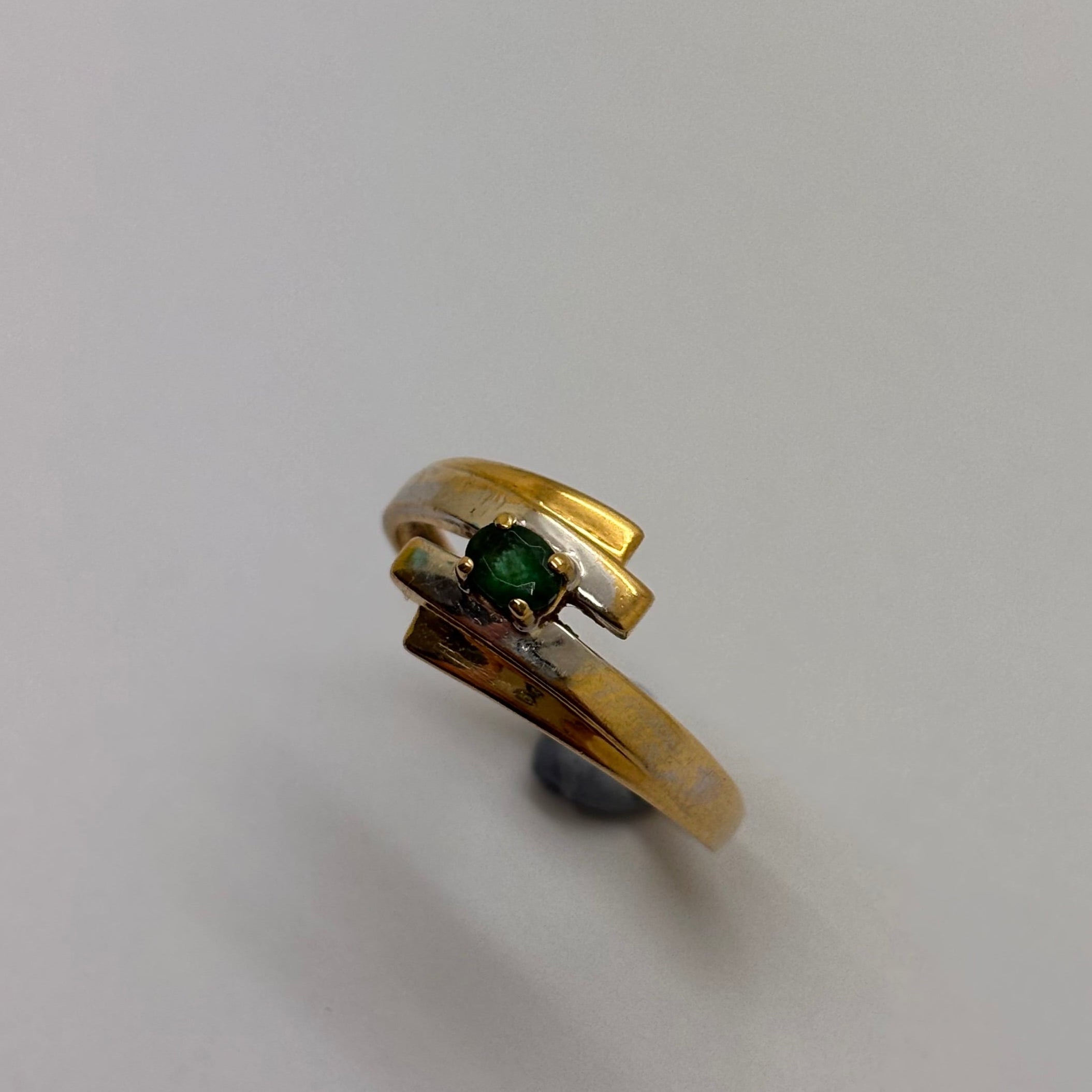 Bague empierrée en or jaune 18 carats (750/1000), sertie d’un émeraude central.