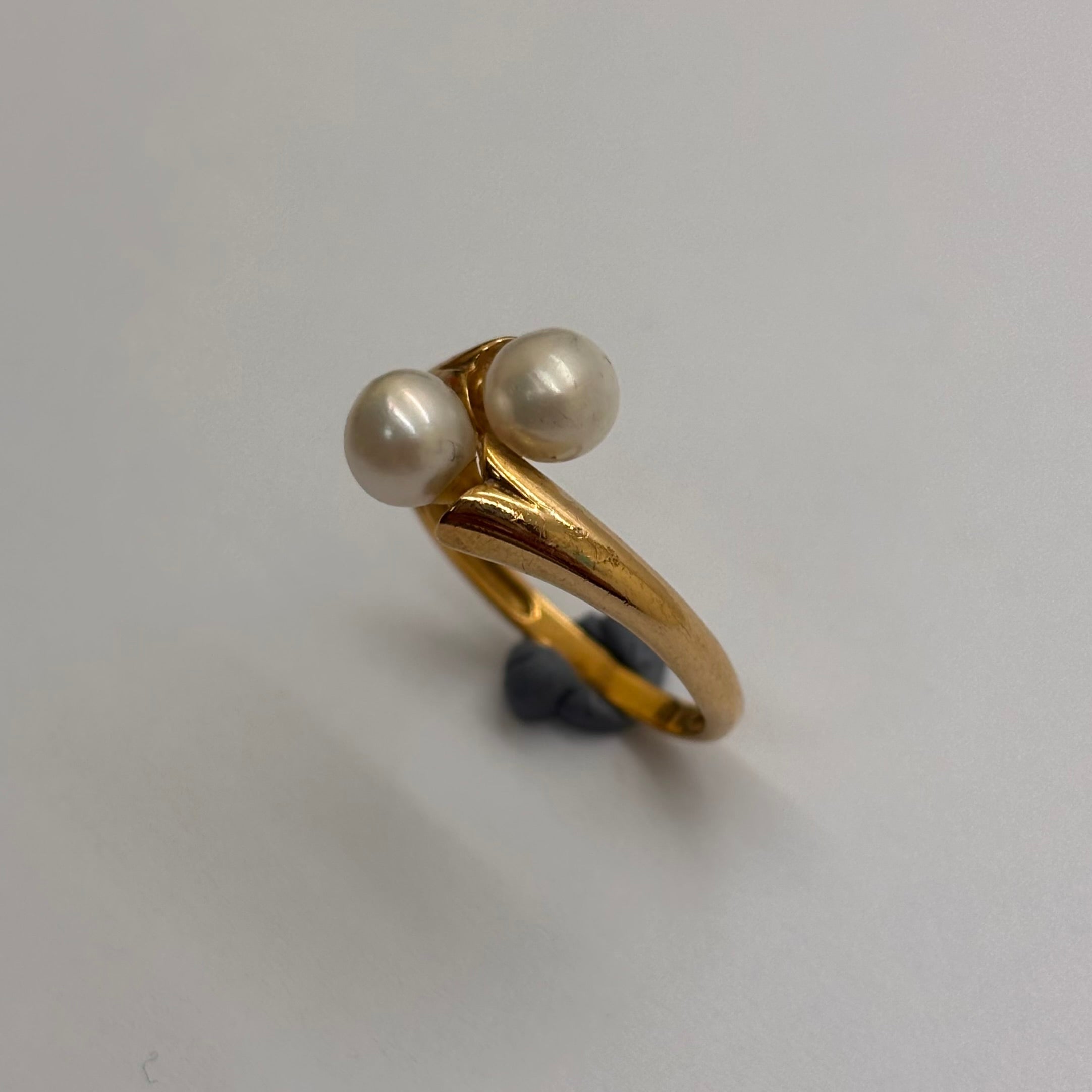 Bague en or jaune 18 carats (750/1000), sertie de deux perles.