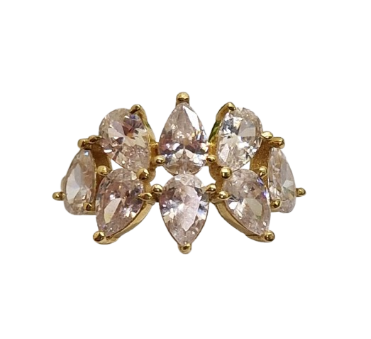 Bague feuille en or jaune 18 carats (750/1000), poinçonnée 750 et Tête d’Aigle. Pesant 4,39 grammes et de taille 59, elle est subtilement ornée d’un oxyde de zirconium qui met en valeur son design raffiné inspiré de la nature.