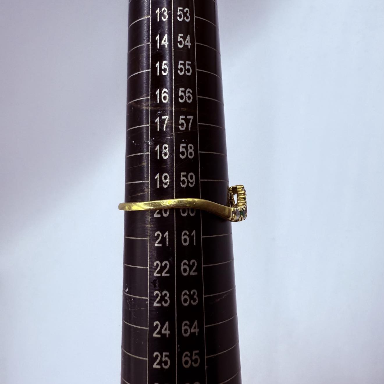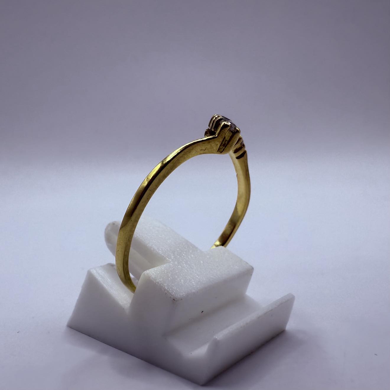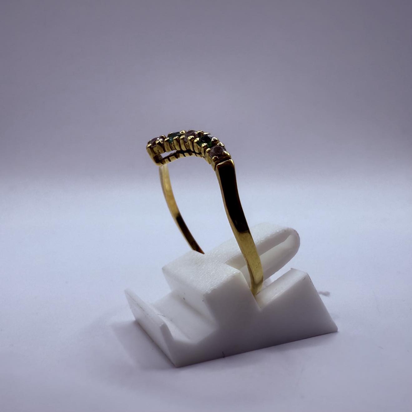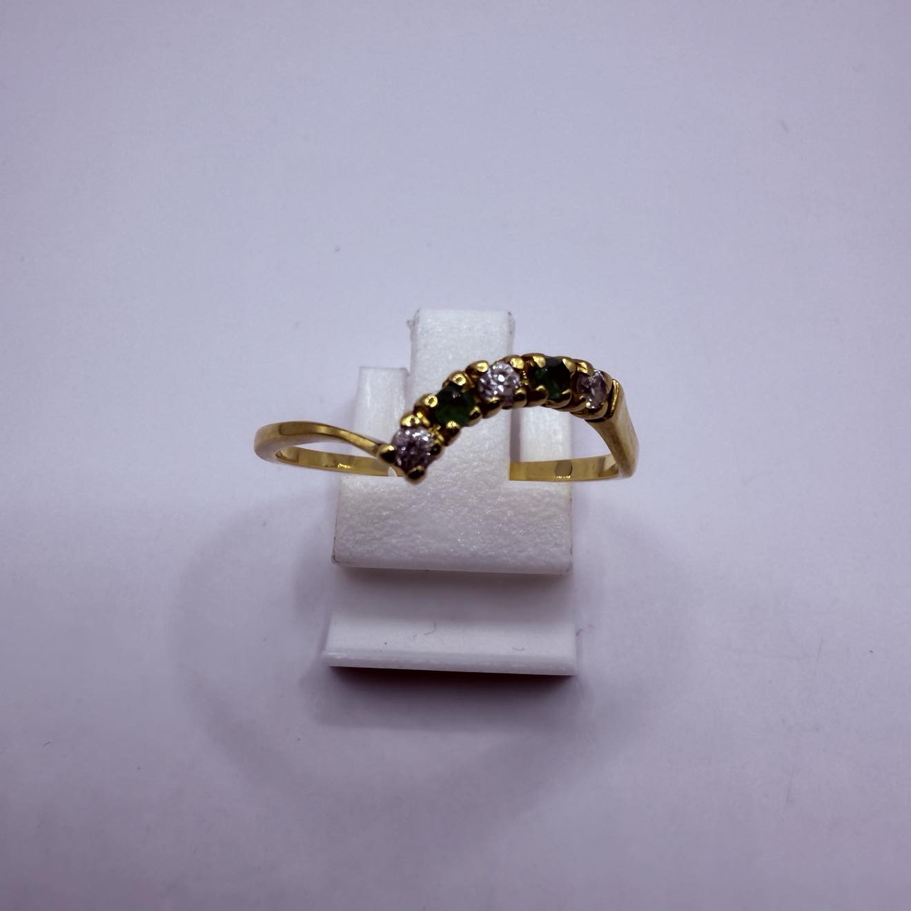 Bague empierrée en bon état en or jaune 18 carats (750/1000), poinçonnée 750, d’un poids de 1,73 gramme. Elle est ornée de pierres en oxyde de zirconium et correspond à une taille 60.