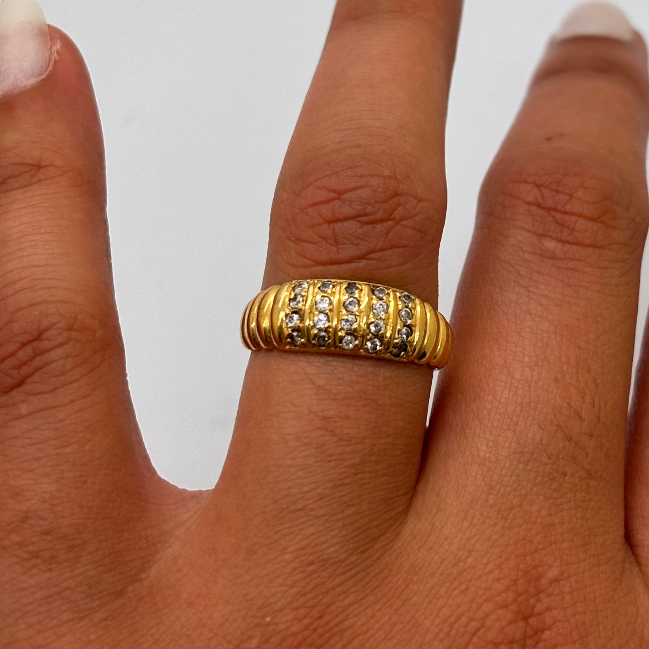 Charmante bague en or jaune 18 carats (750/1000), sertie de vingt petits zircons.