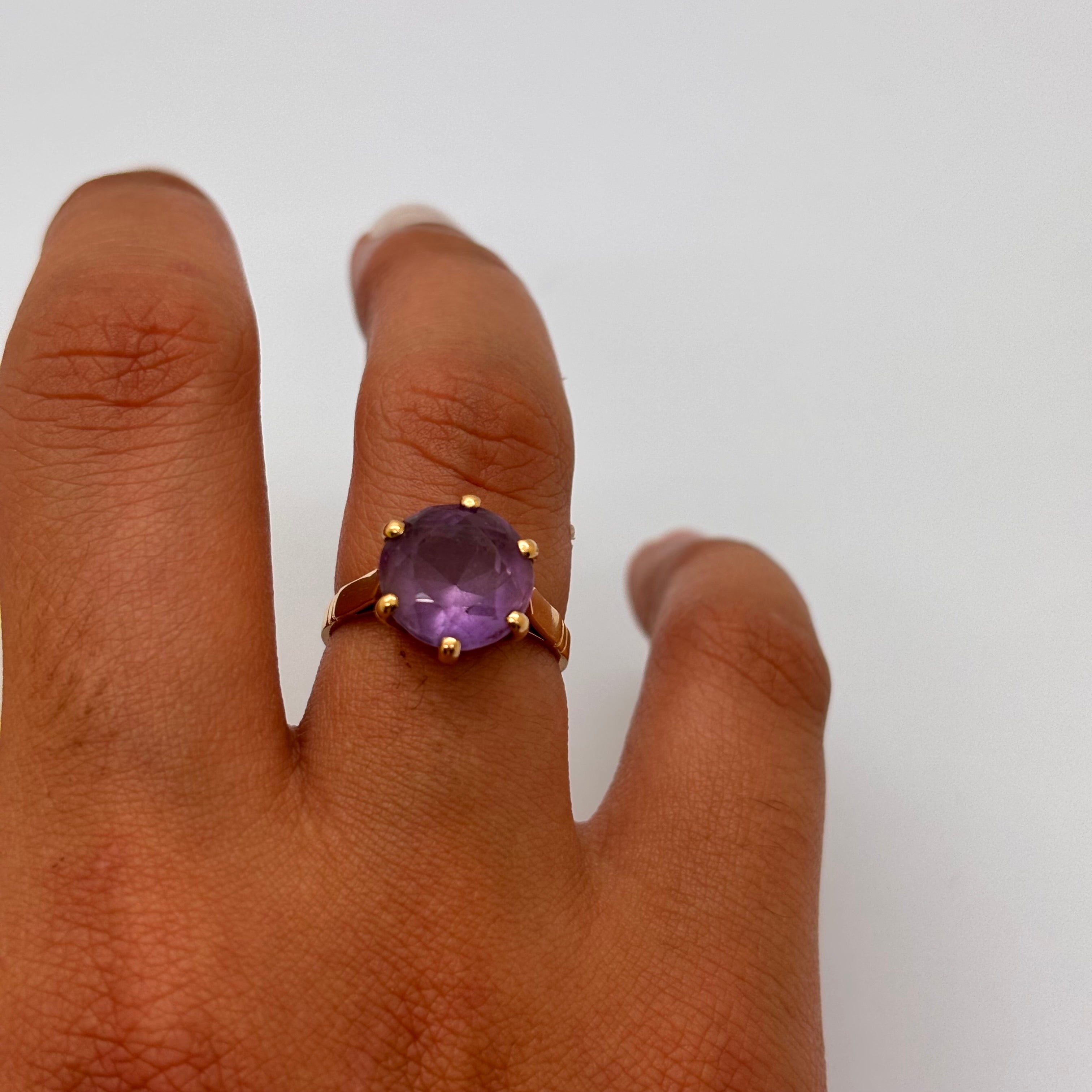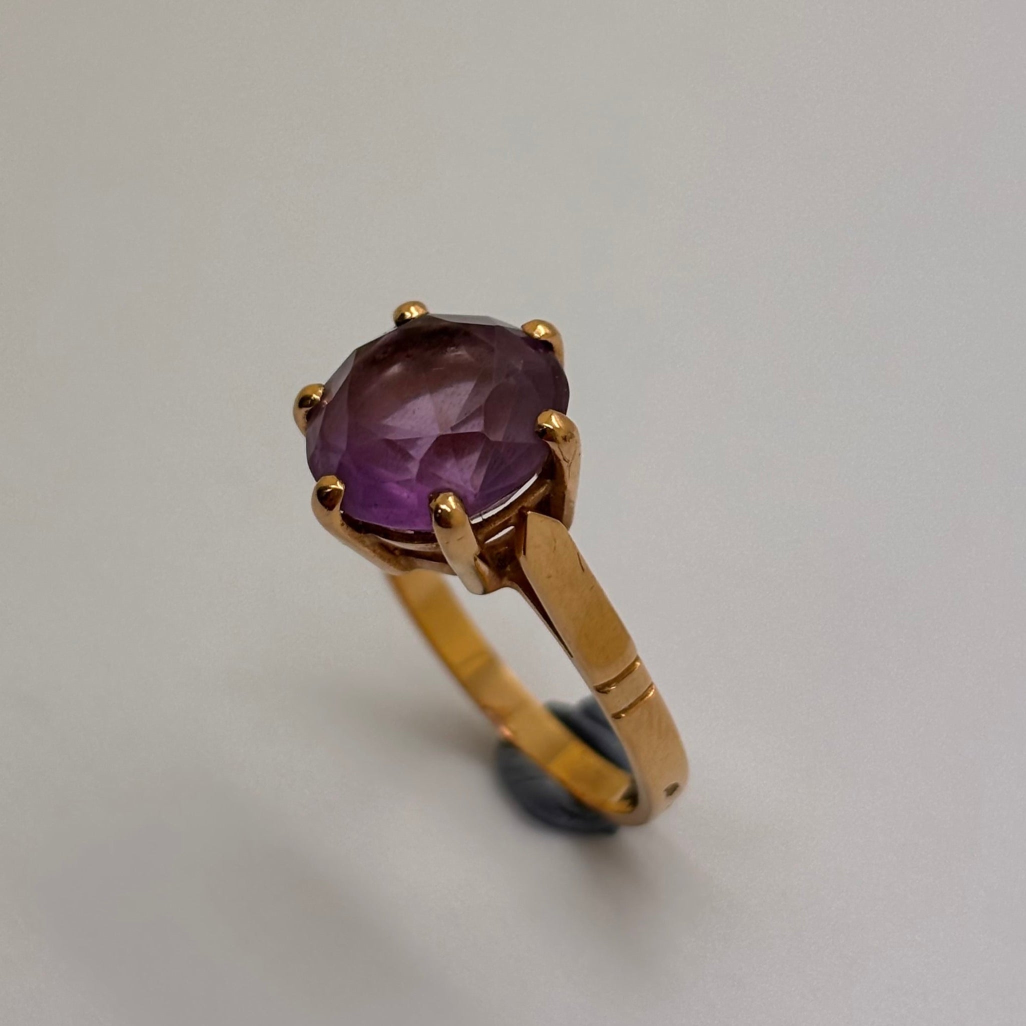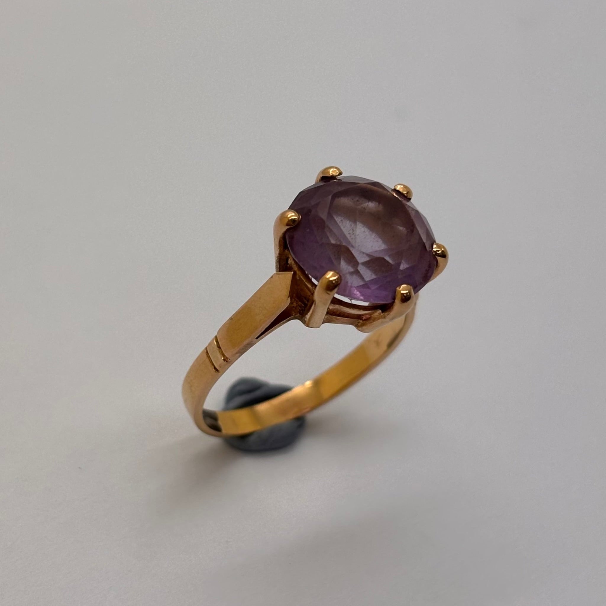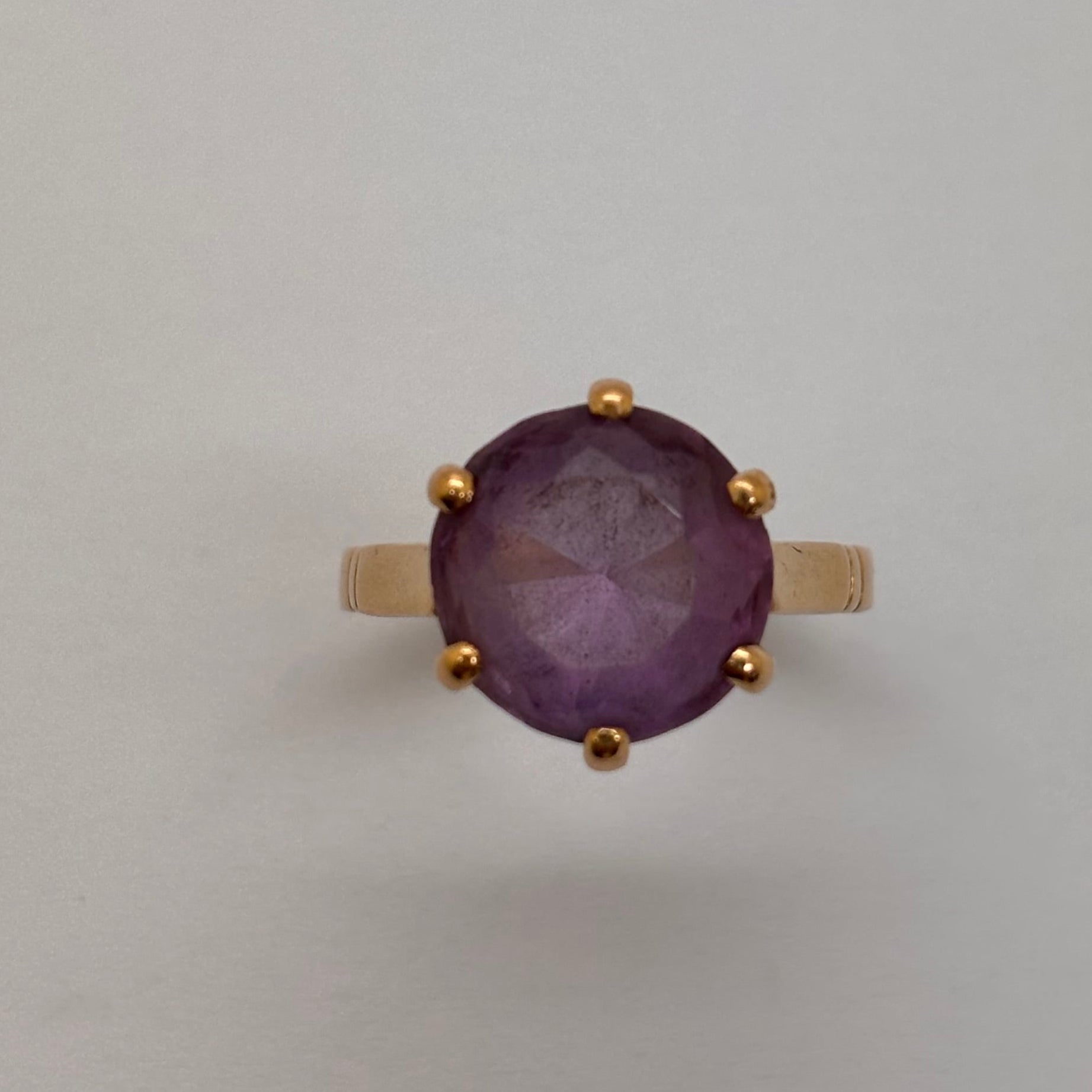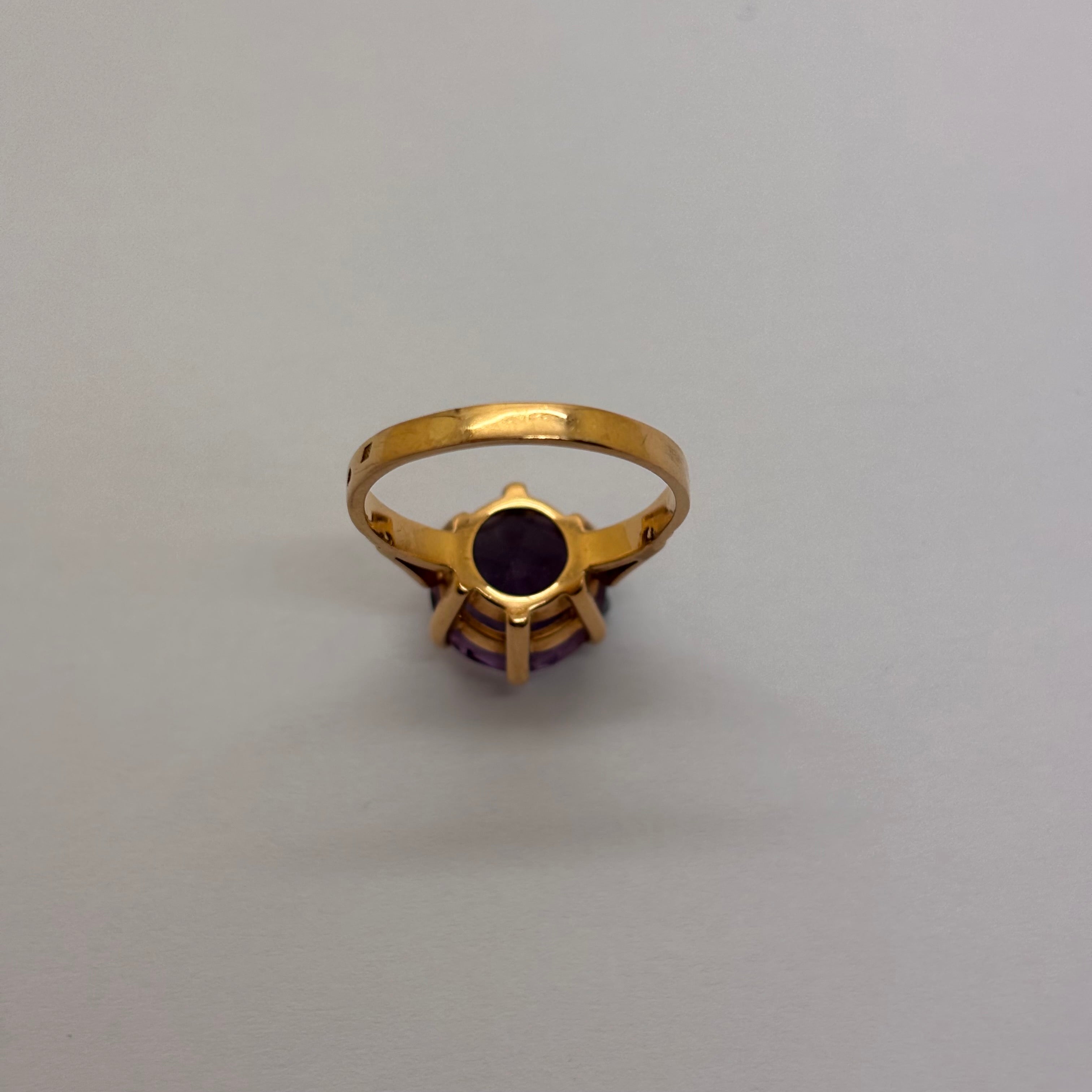 Bague empierrée en or jaune 18 carats (750/1000), poinçonnée à la tête d’aigle, est ornée d’une améthyste unique qui lui apporte une touche de couleur subtile et raffinée. D’un poids de 4 grammes, elle est proposée en taille 52,5.