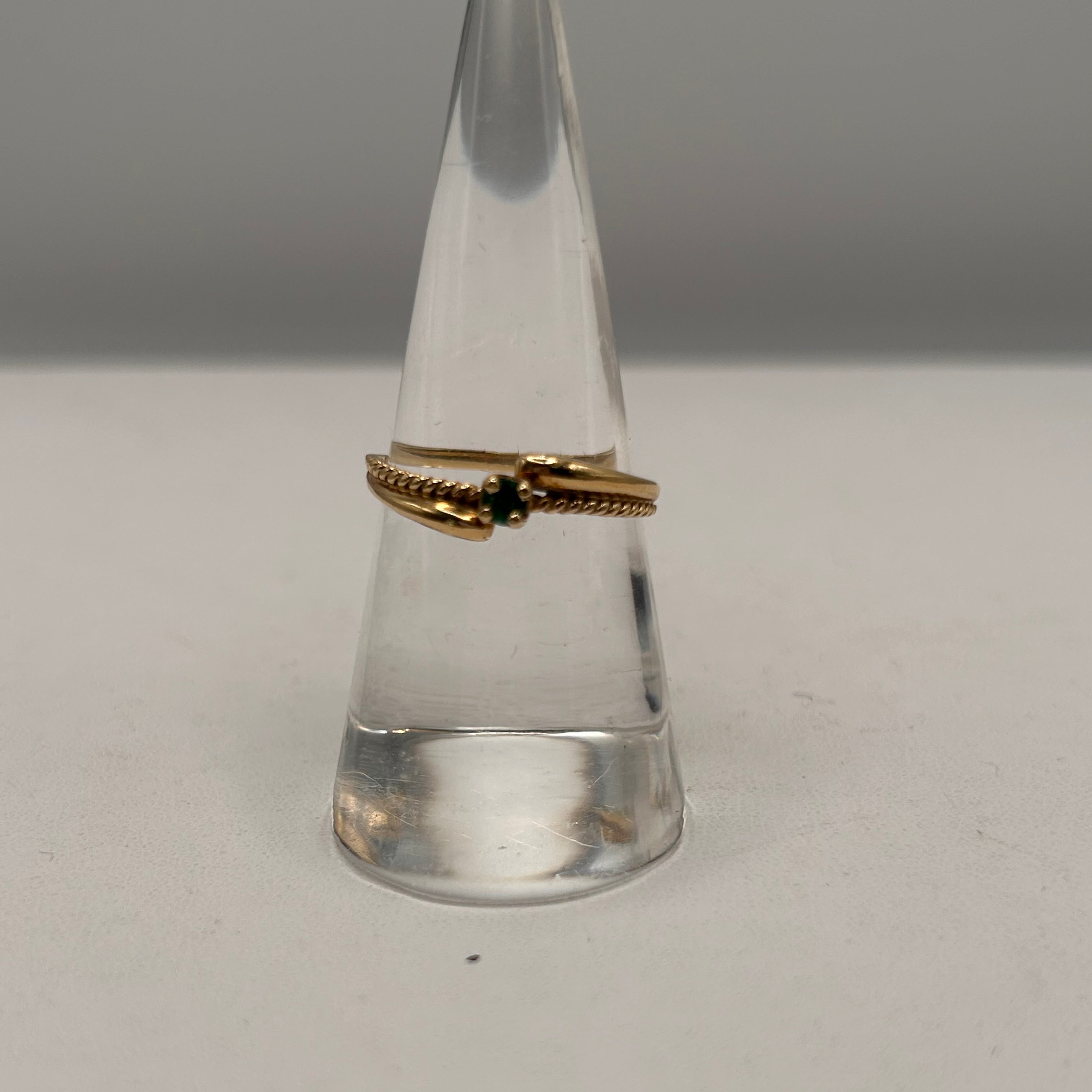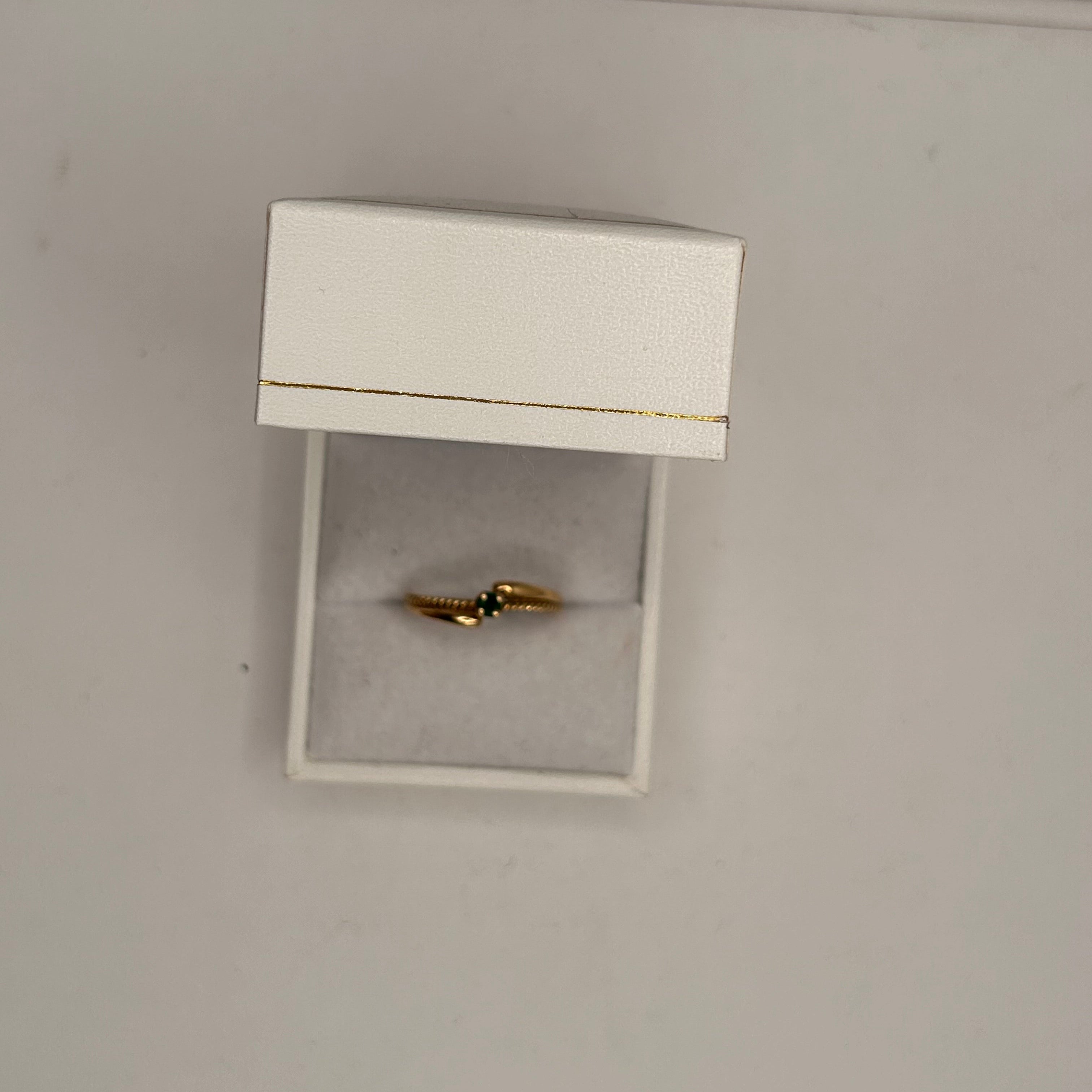 Bague empierrée en or jaune 18 carats, délicatement ornée d'une émeraude de 0,06 carat. Fine et élégante, elle apporte une touche de couleur subtile et raffinée. En très bon état, c’est un bijou discret au charme intemporel.