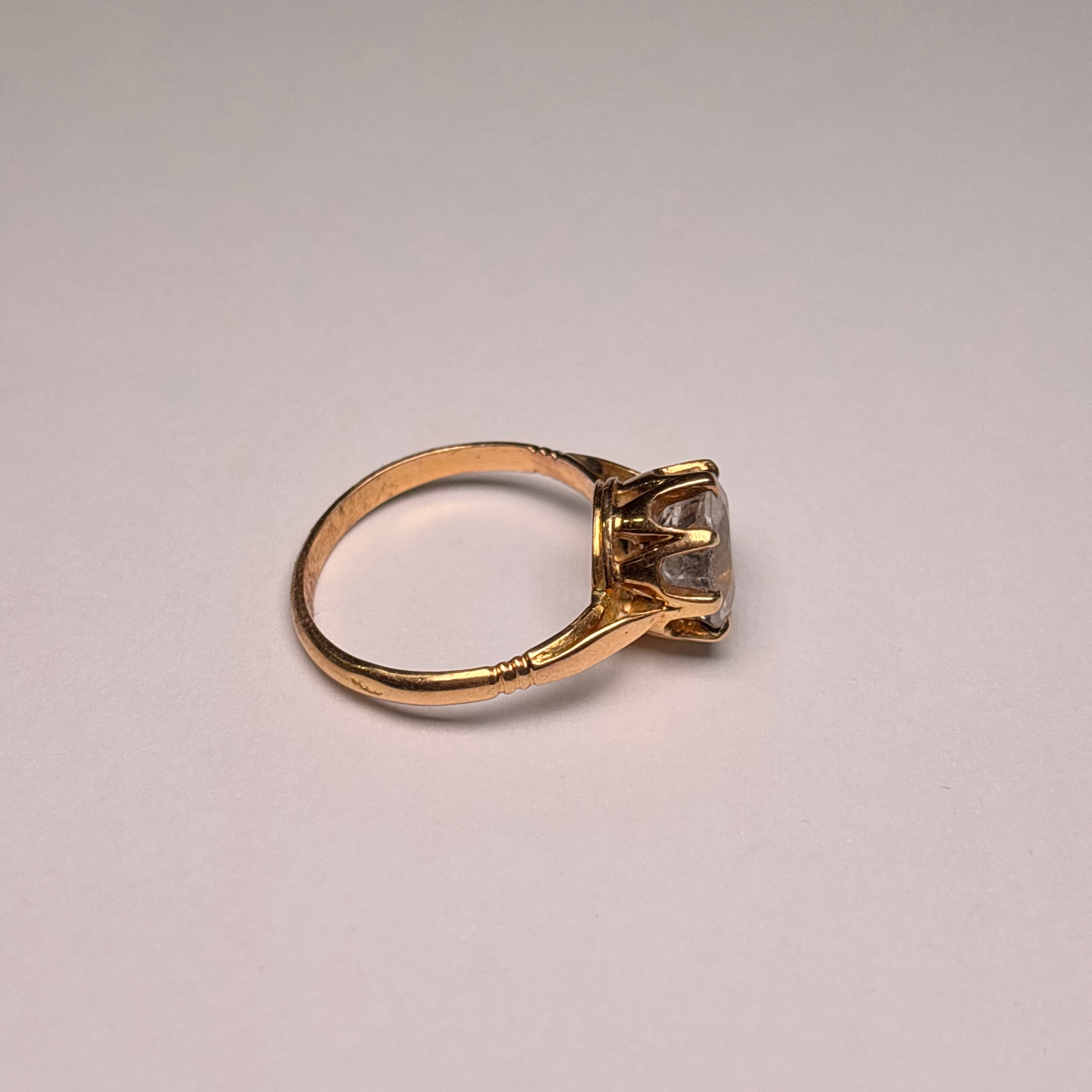 Bague empierrée en or jaune 18 carats (750/1000) est ornée d’un oxyde de zirconium, apportant une touche de brillance élégante. Elle pèse 3,40 grammes et est proposée en taille 54. Bien qu’elle ne comporte pas de poinçon, elle se présente en très bon état général.