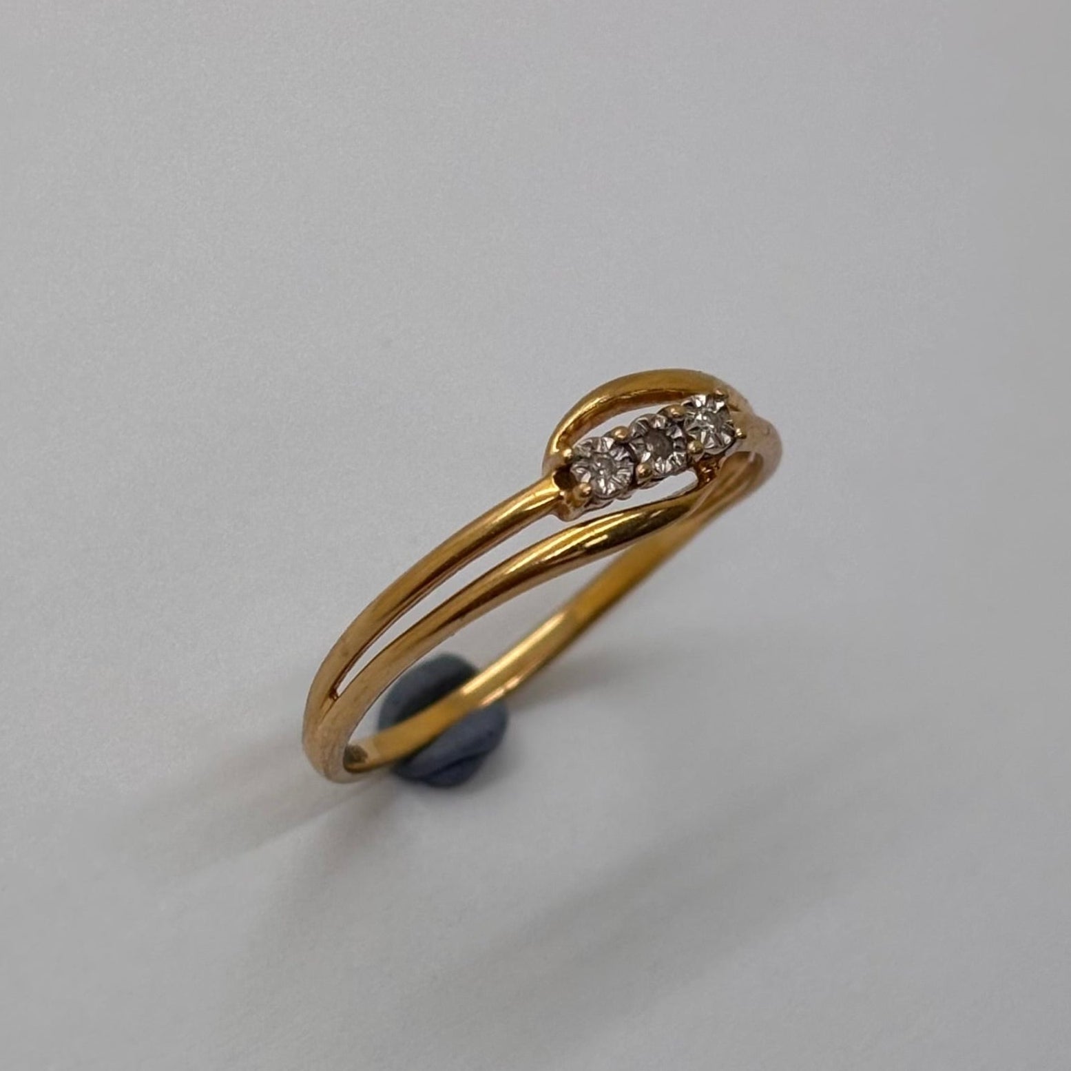 Bague en or jaune 18 carats (750/1000), sertie de trois petits diamants.