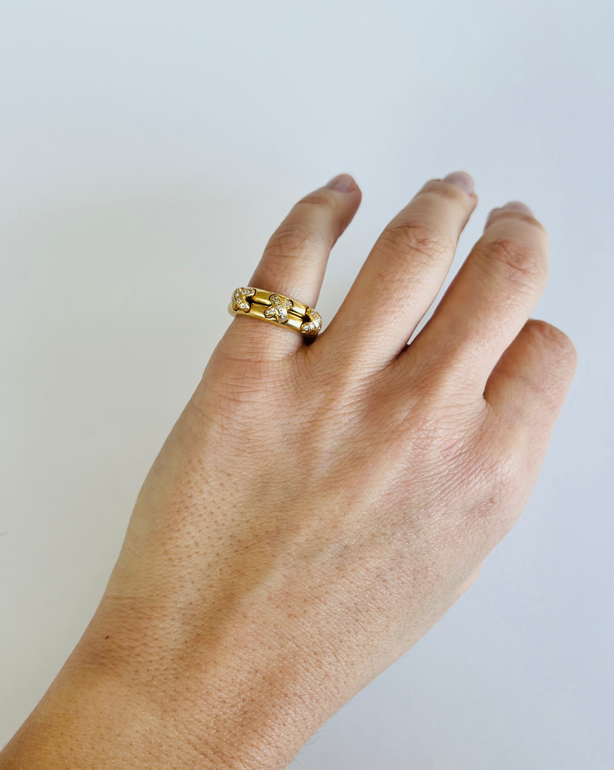 Très belle bague Chaumet Liens 3 croisés or jaune 18k avec éclats de diamants. Parfaite pour rendre chic et sublimer vos tenues !