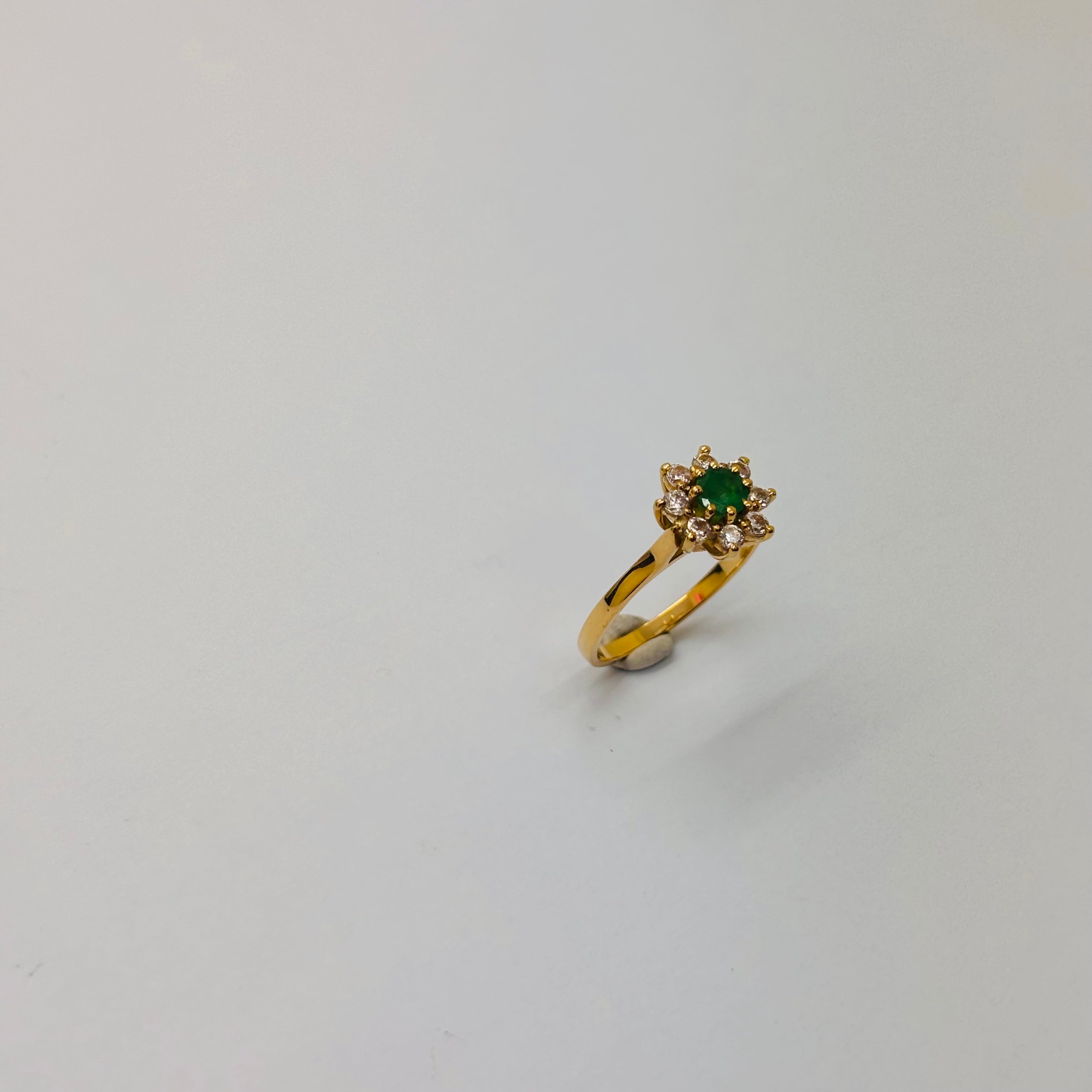 • Bague Marguerite en Or Jaune 18 Carats avec Emeraude - 3.39 Grs