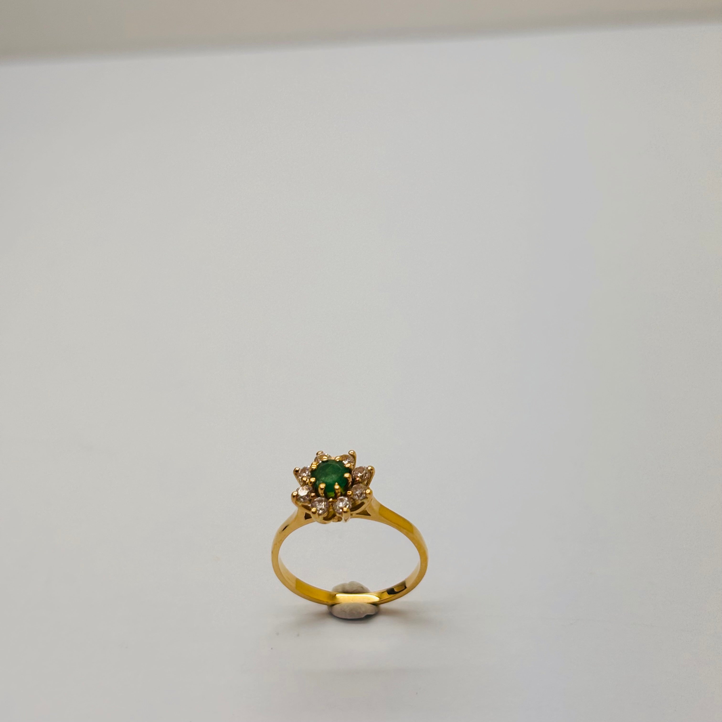 Bague Marguerite en Or Jaune 18 Carats avec Emeraude - 3.39 Grs