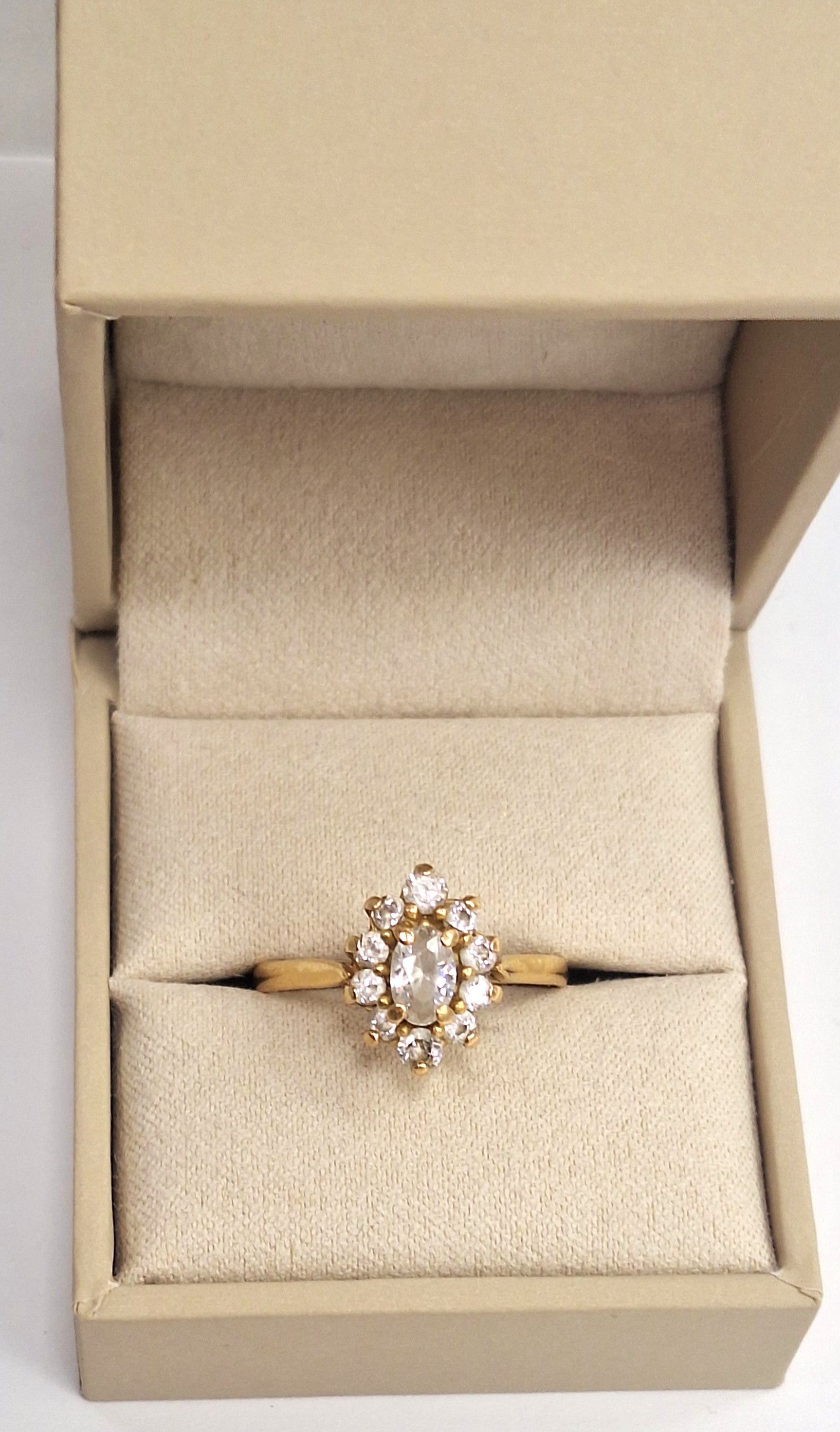 Éblouissante et raffinée, cette bague marguerite en or jaune 18 carats (750/1000) est une pièce intemporelle. Pesant 2,99 grammes et proposée en taille 58, elle offre un ajustement confortable et une élégance discrète. Ornée de 11 oxydes de zirconium étincelants, elle illumine chaque tenue avec son éclat unique. En très bon état, ce bijou exceptionnel est livré dans un écrin raffiné accompagné de son certificat d'authenticité, garantissant sa qualité et son unicité.