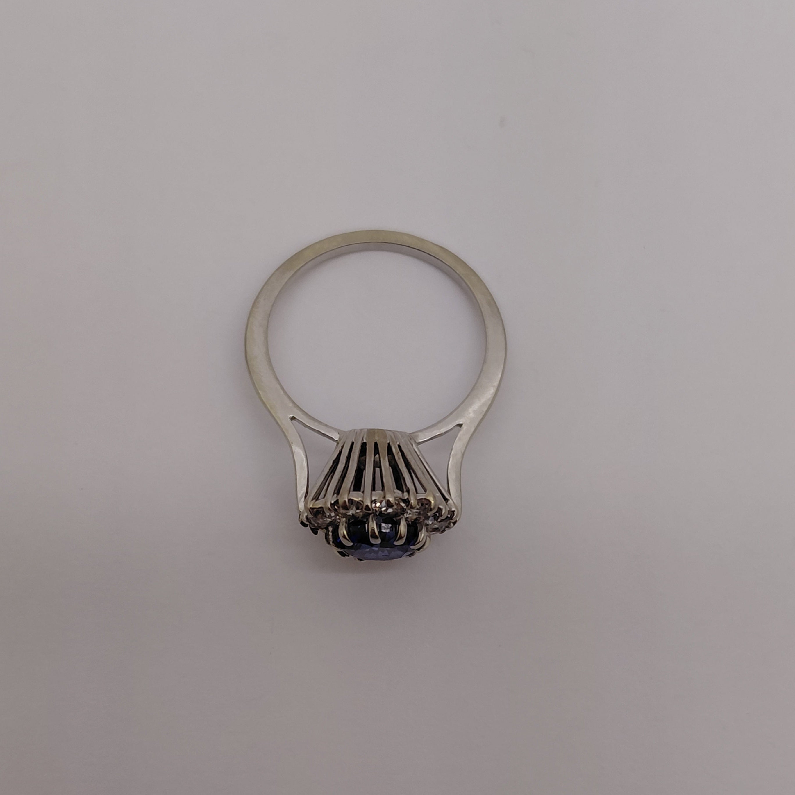 Bague de type Marguerite en or jaune et or blanc 18 carats (750/1000), ornée de pierres en oxyde de zirconium. Le bijou porte le poinçon Tête d’Aigle, pèse 3,74 grammes et correspond à une taille 54. État : bon.