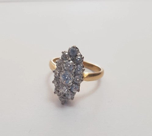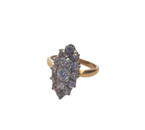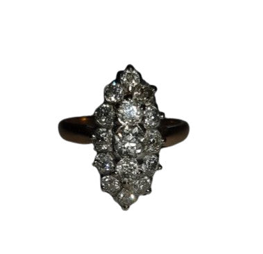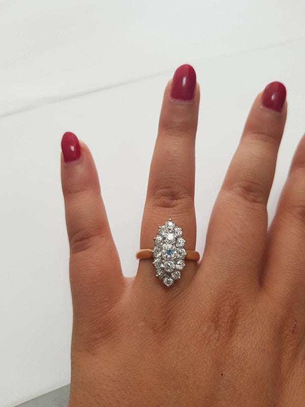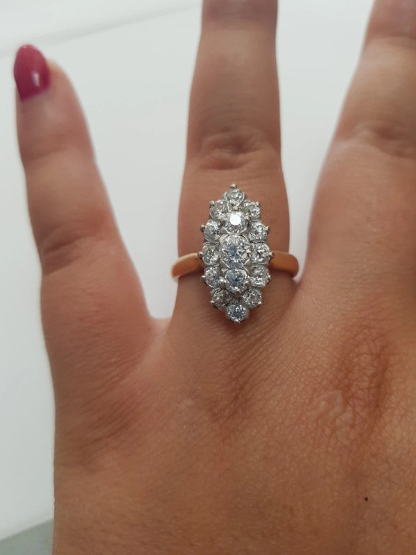 Superbe bague or 750/1000 type marquise ornée de diamants naturels