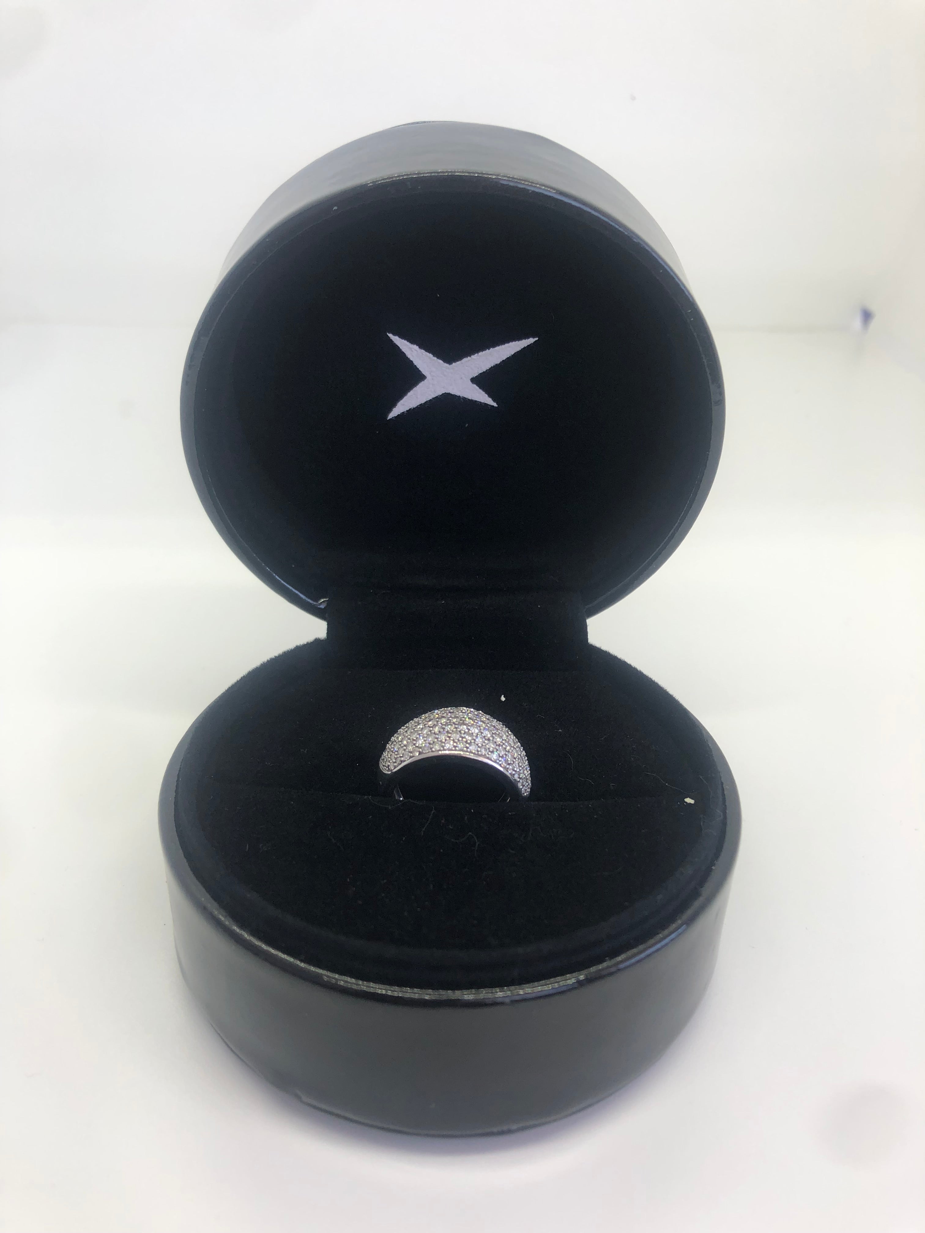 Bague signée de la Maison Mauboussin en or blanc 18 carats, modèle C'est toi la Star, pavée de diamants, 100 diamants taille brillant, d'un poids total d'environ 1,00 ct, tour de doigt : 52, poids total : 8,16 g, poinçon tête d'aigle, vendue avec écrin d'origine et d'époque.