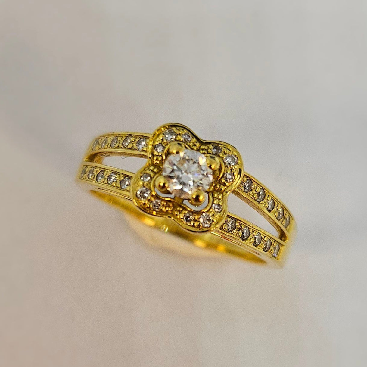 Un bijou d’exception signé Mauboussin ! Cette somptueuse bague Chance of Love n°2 en or jaune 18 carats, ornée d’un diamant central de 0.20 carat et d’un pavage délicat de 0.11 carat, incarne à la perfection l’élégance et le prestige.