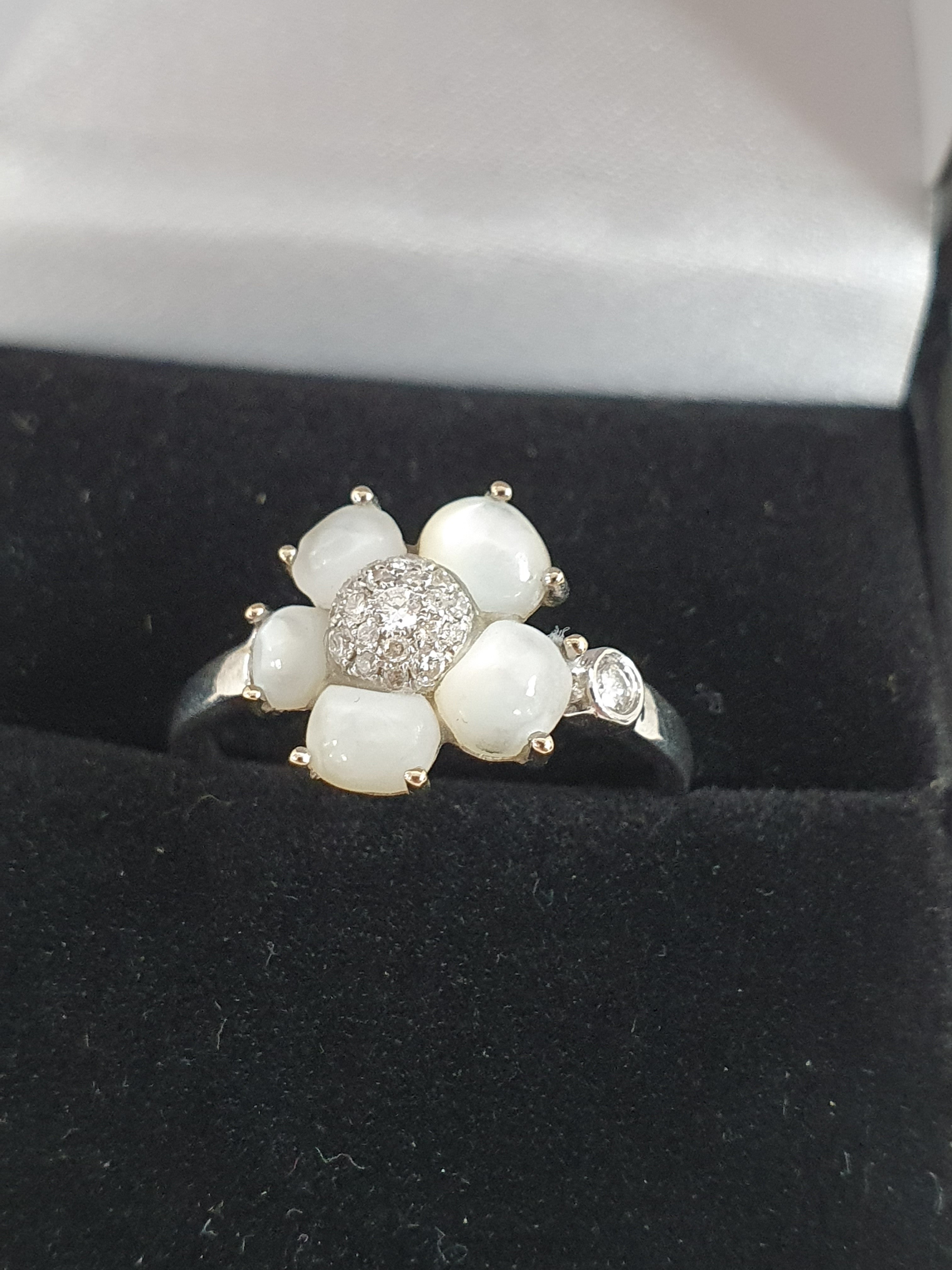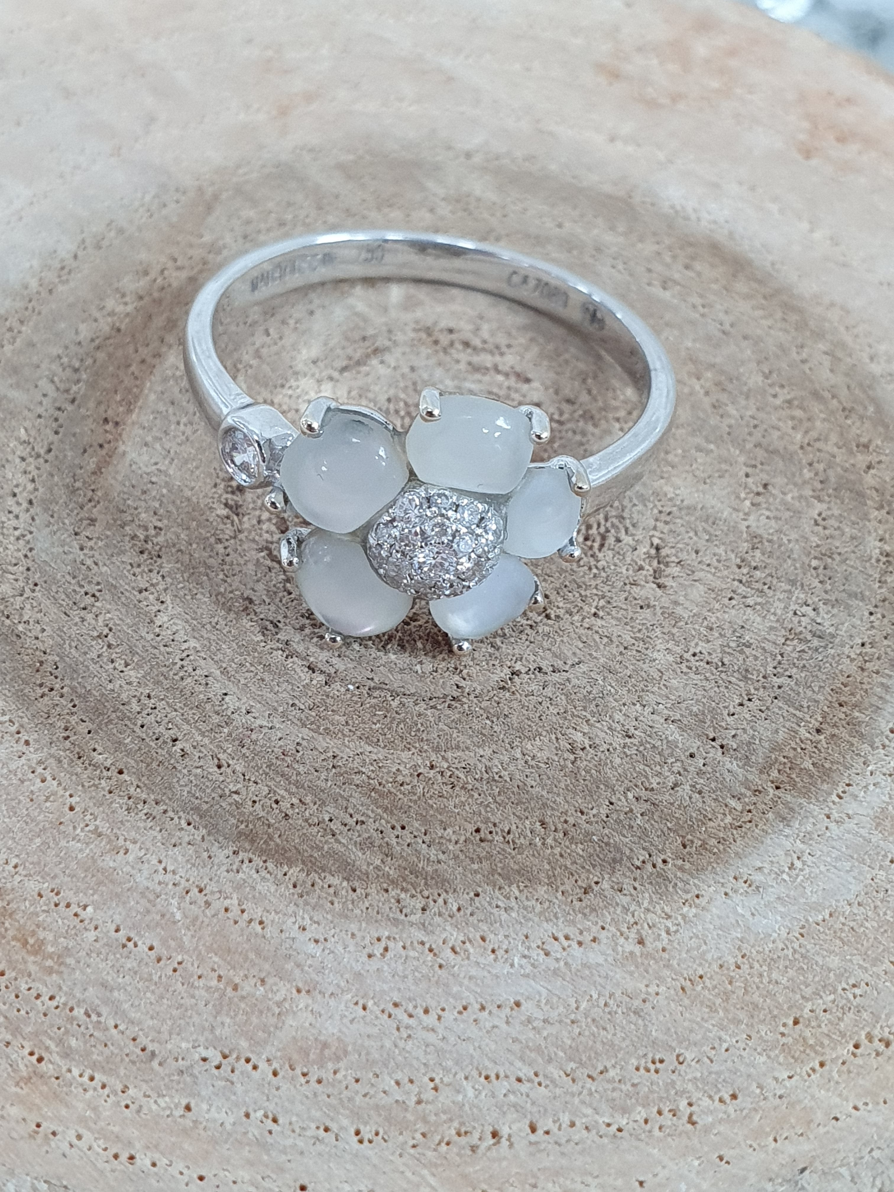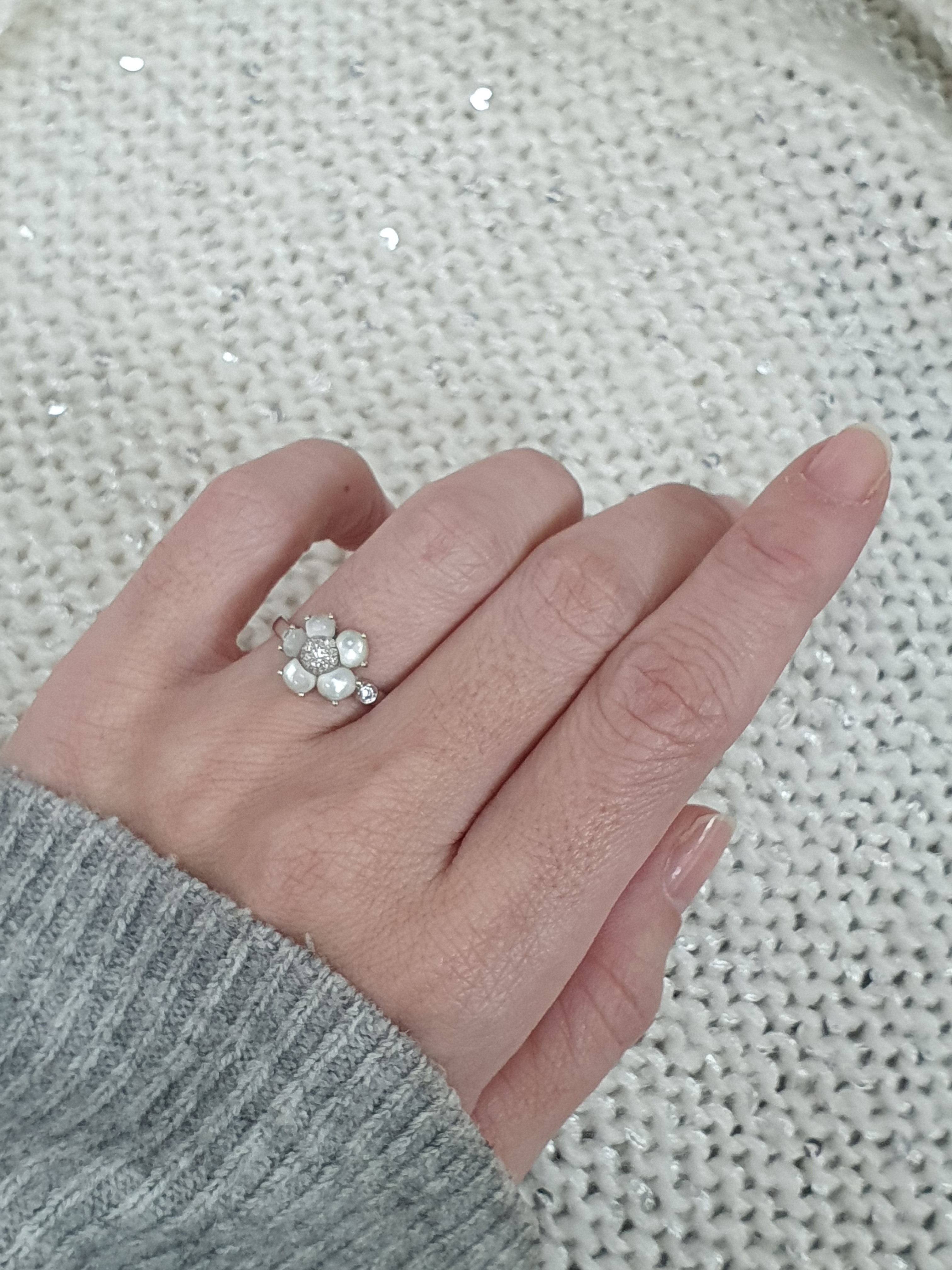 Pierres : 5 pierres nacrées et diamants