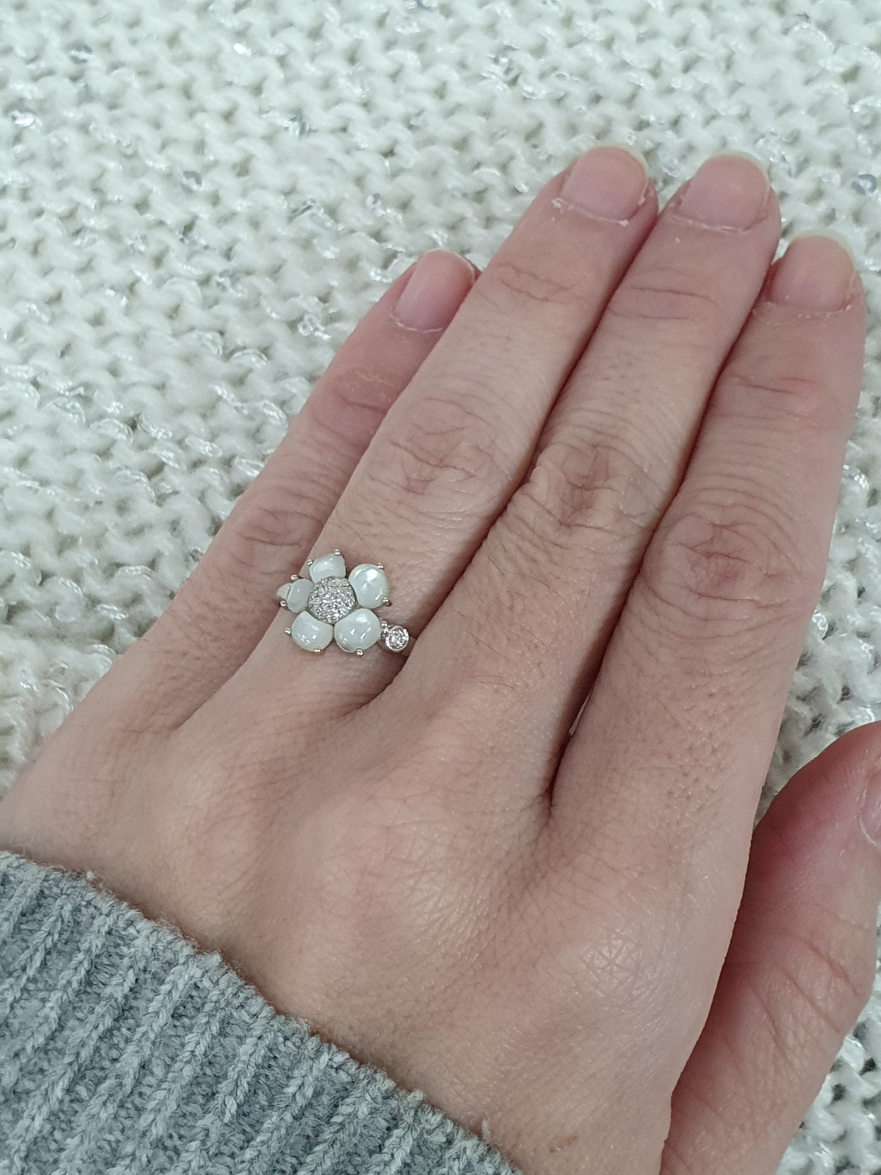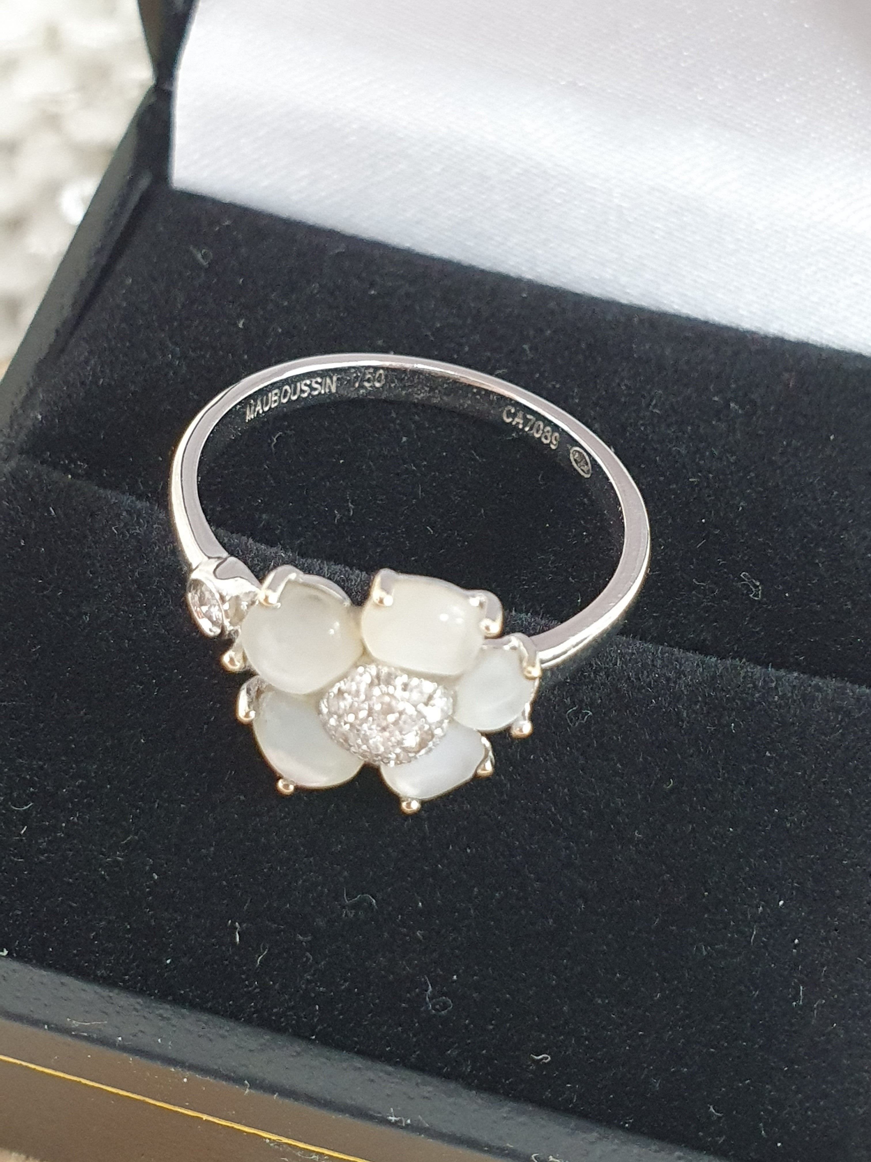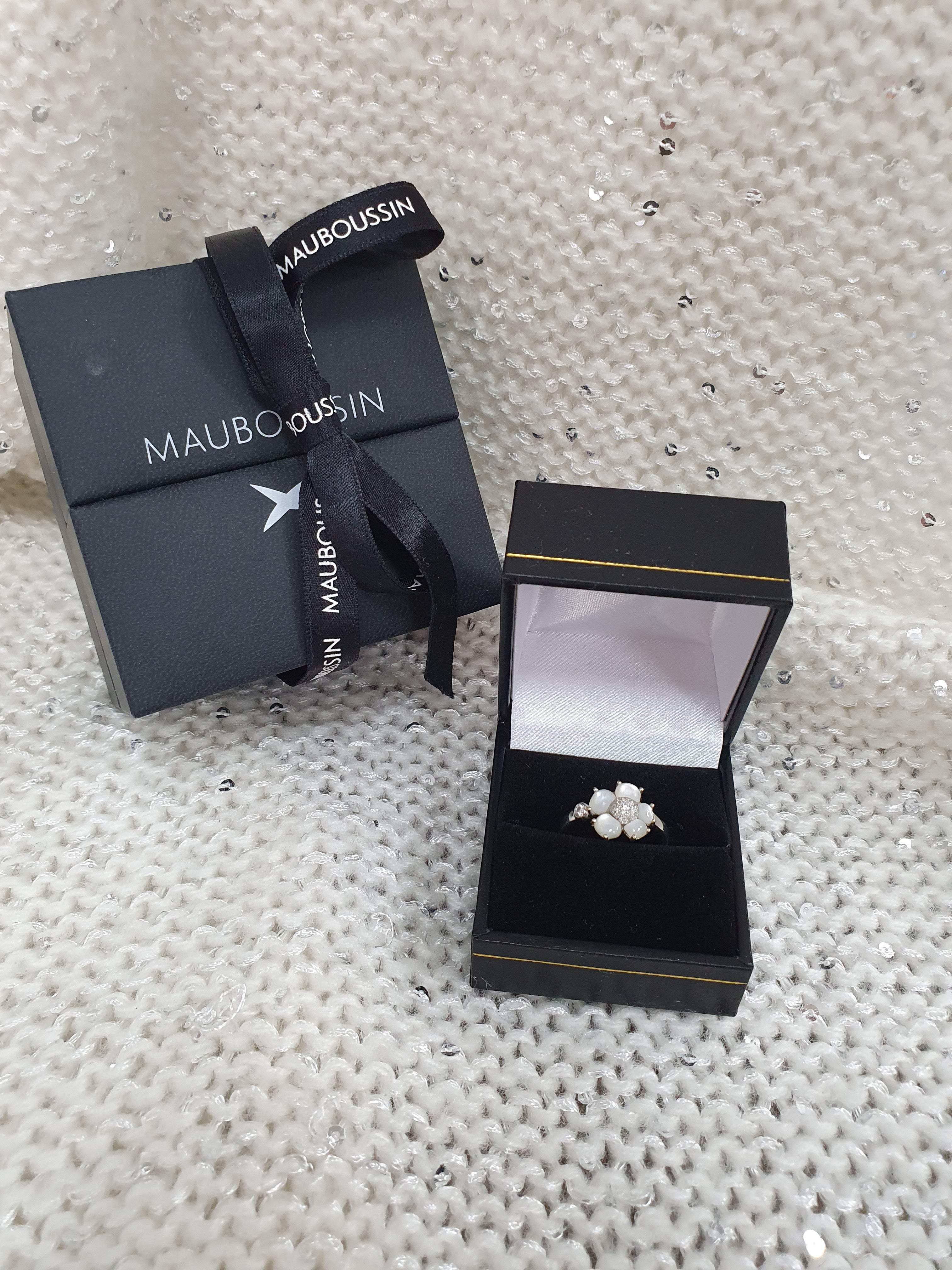 Magnifique bague Mauboussin éternité tendresse nacre et diamants.