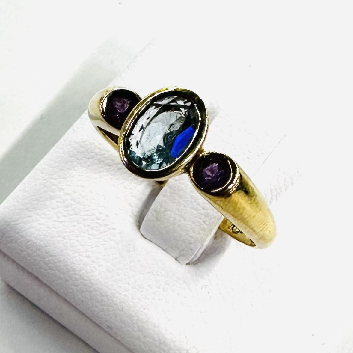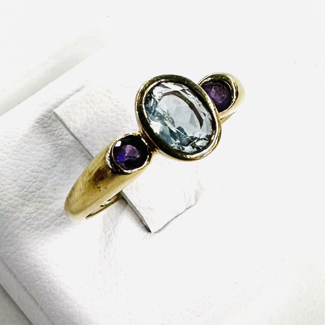 Jolie bague or jaune 18k aigue marine et améthyste