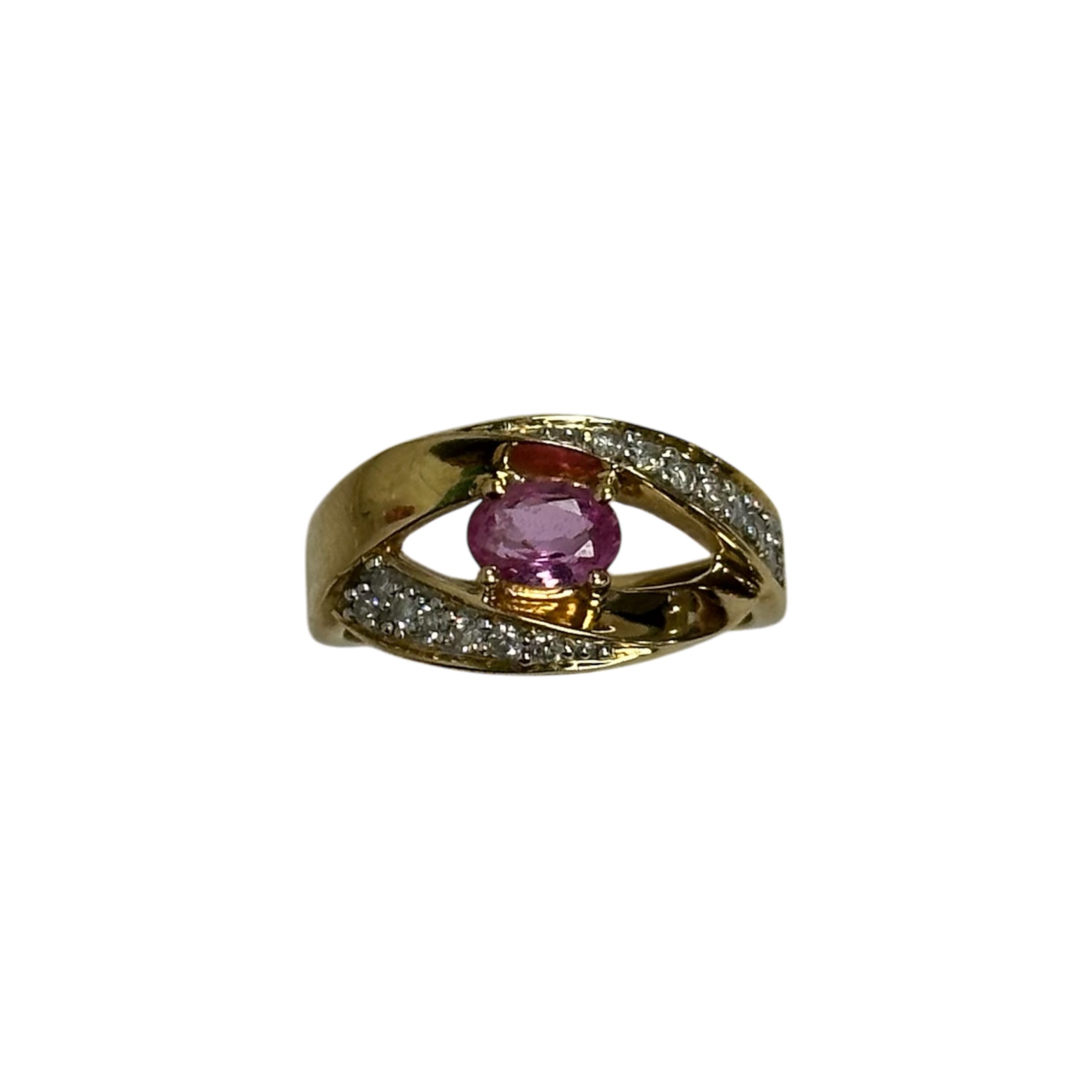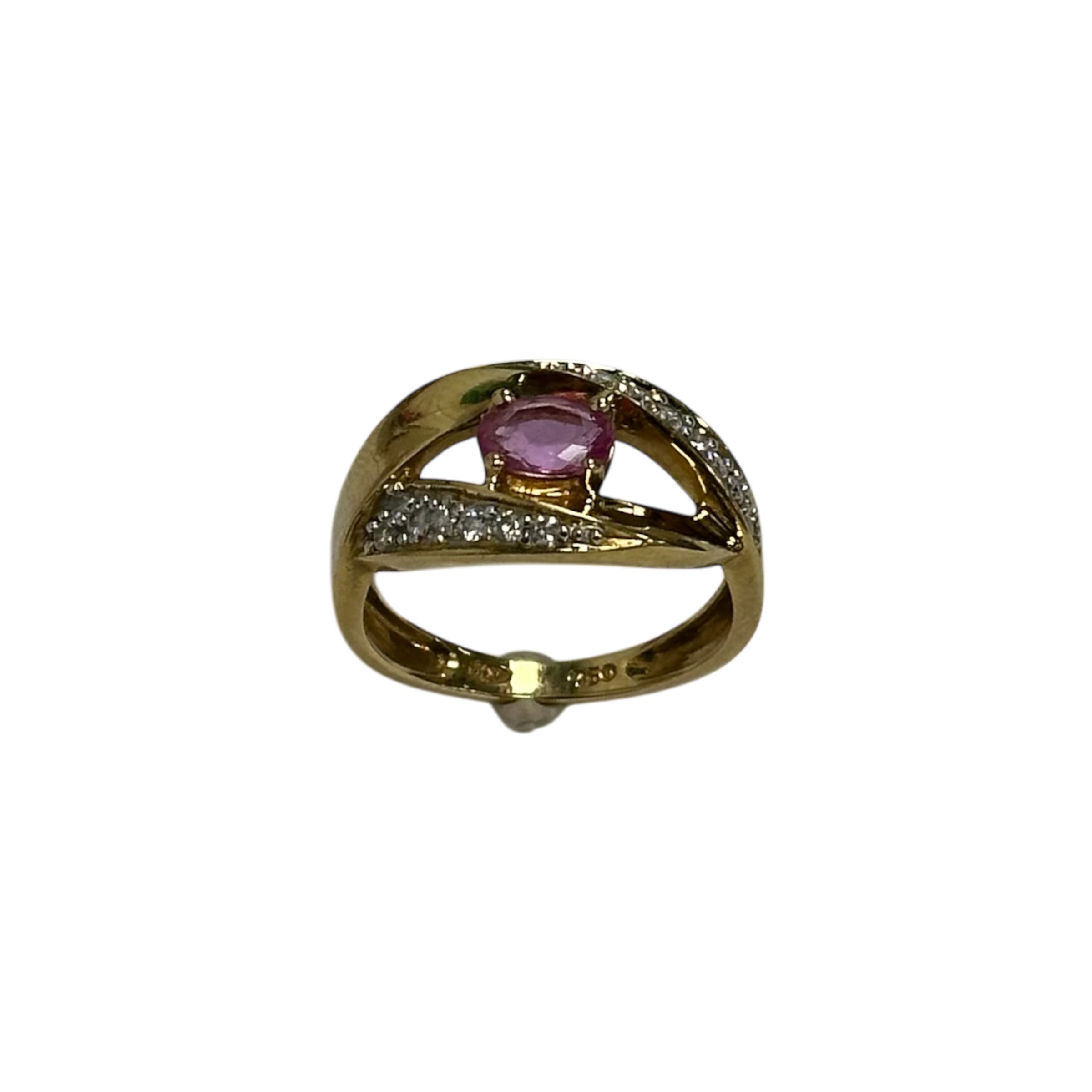 Magnifique bague en or jaune avec diamants et saphir rose
