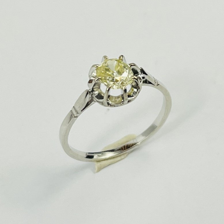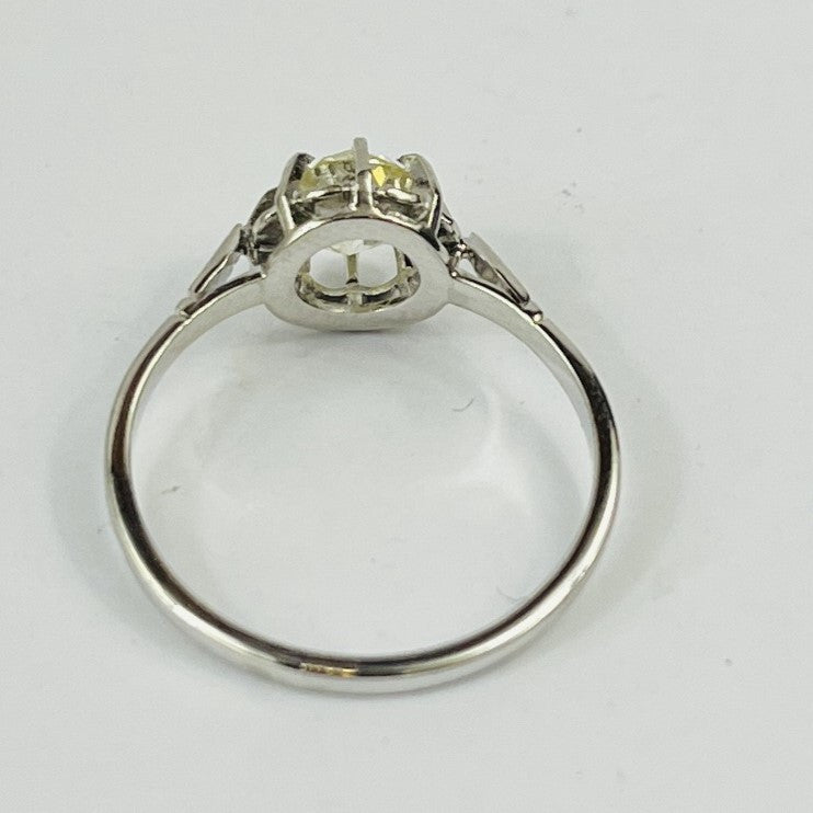 Belle bague ancienne en or blanc 750/1000 avec diamant solitaire env 0.70ct