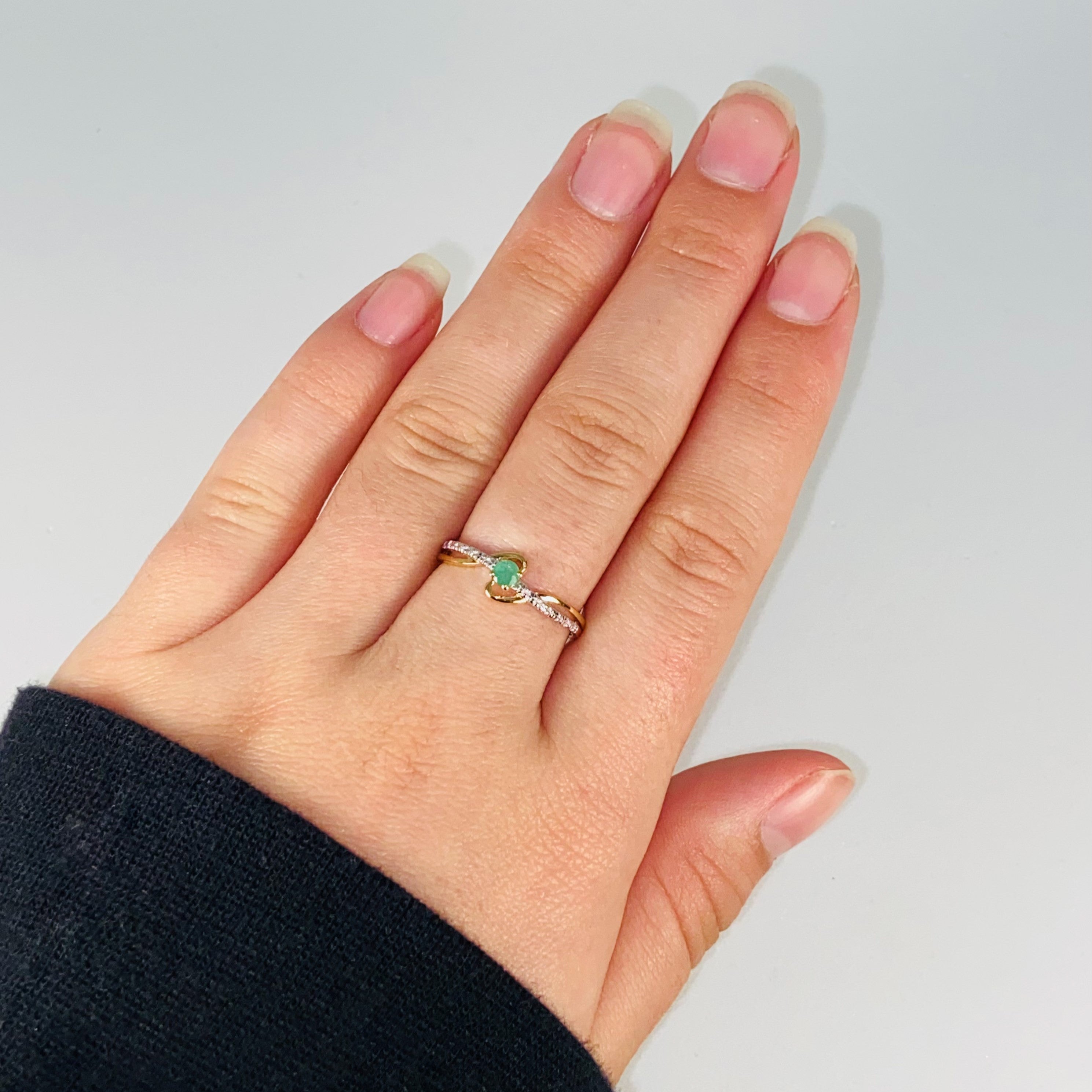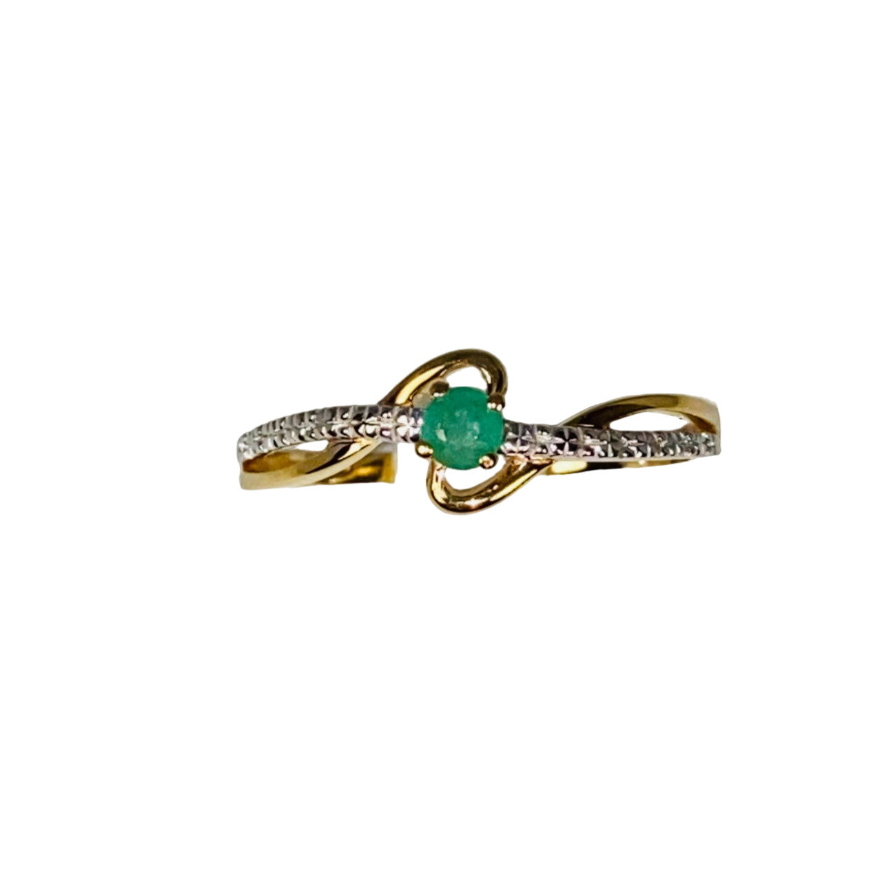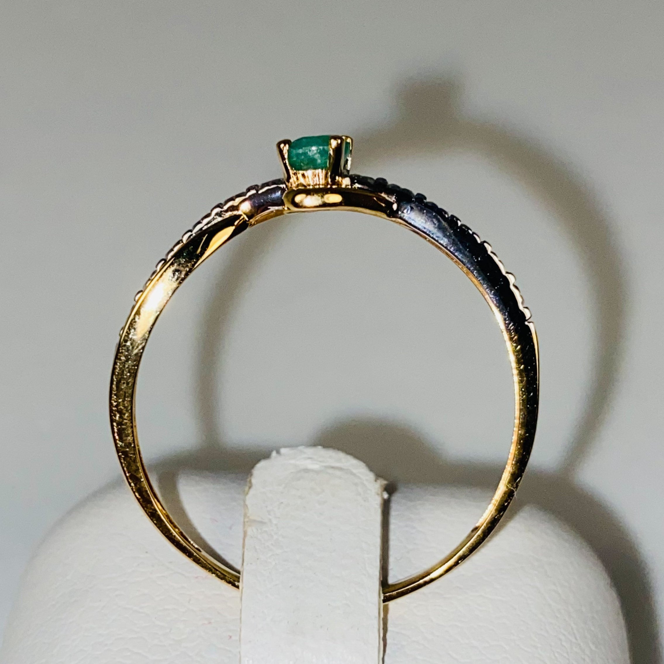 Très belle bague en or jaune 750/1000 sertie d'une belle émeraude de 2.8 mm de diamètre et un sertissage de 4 griffes.