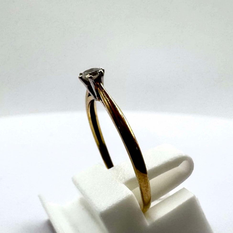 Raffinement absolu : cette bague en or jaune 750/1000, ornée d'une pierre blanche lumineuse, est une ode à l'élégance et à la pureté.