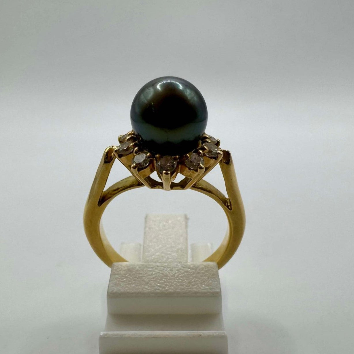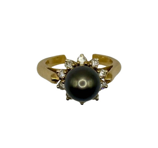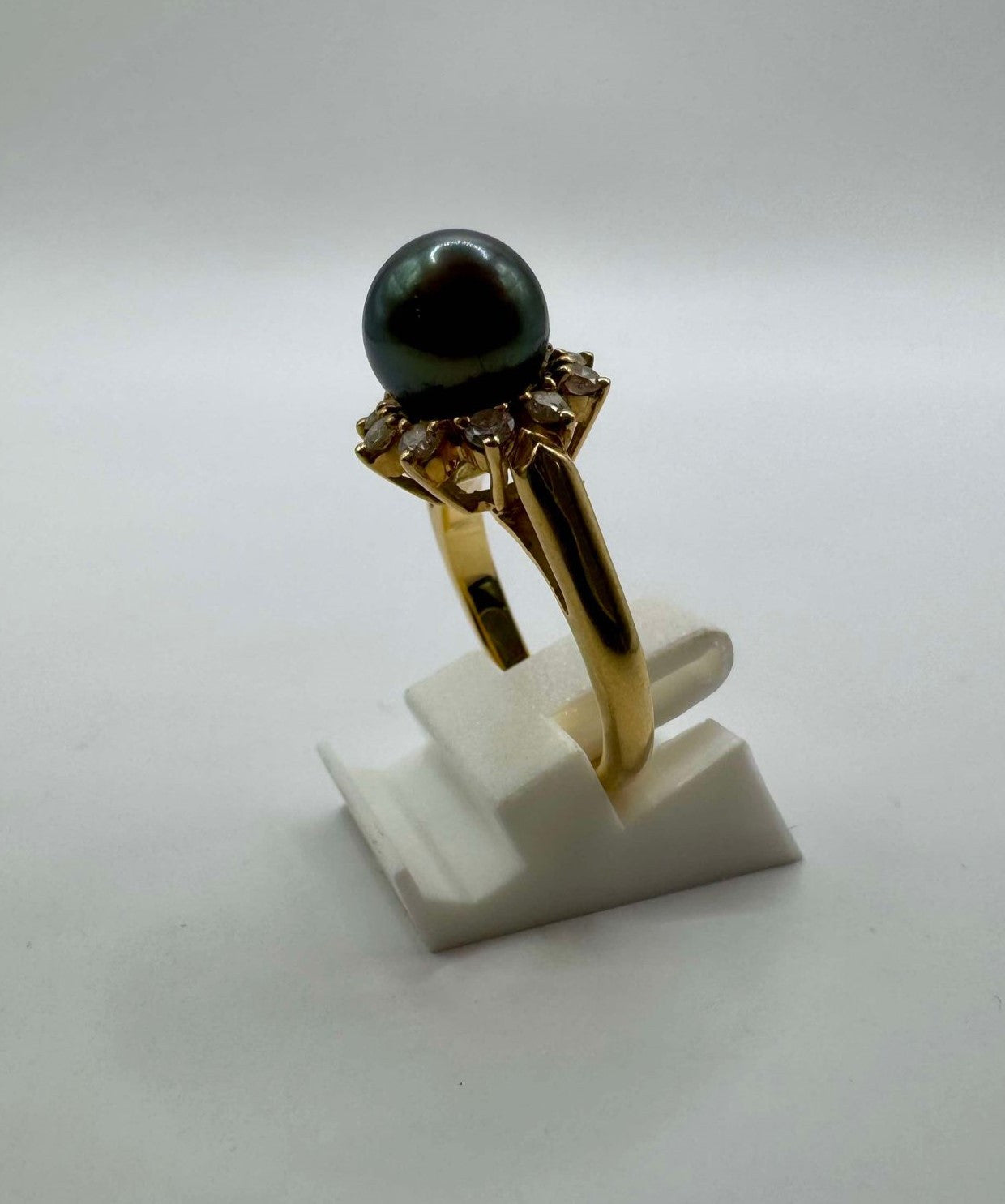 Cette bague en or jaune 750/1000, magnifiquement sertie de dix diamants scintillants de 2 mm et d'une perle délicate, incarne le summum du luxe et de l'élégance, apportant une touche de glamour intemporel à votre main