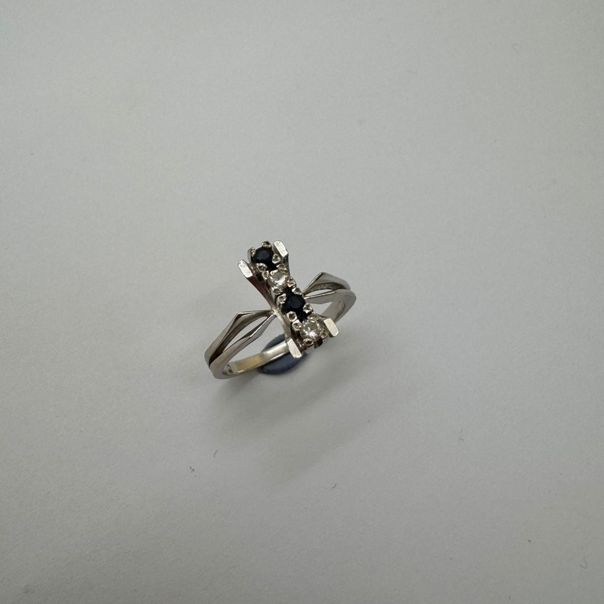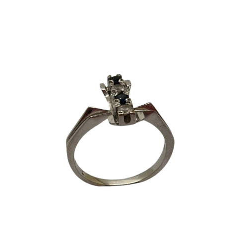 Bague en or blanc 18 carats avec zirconium et saphir – T 50,5