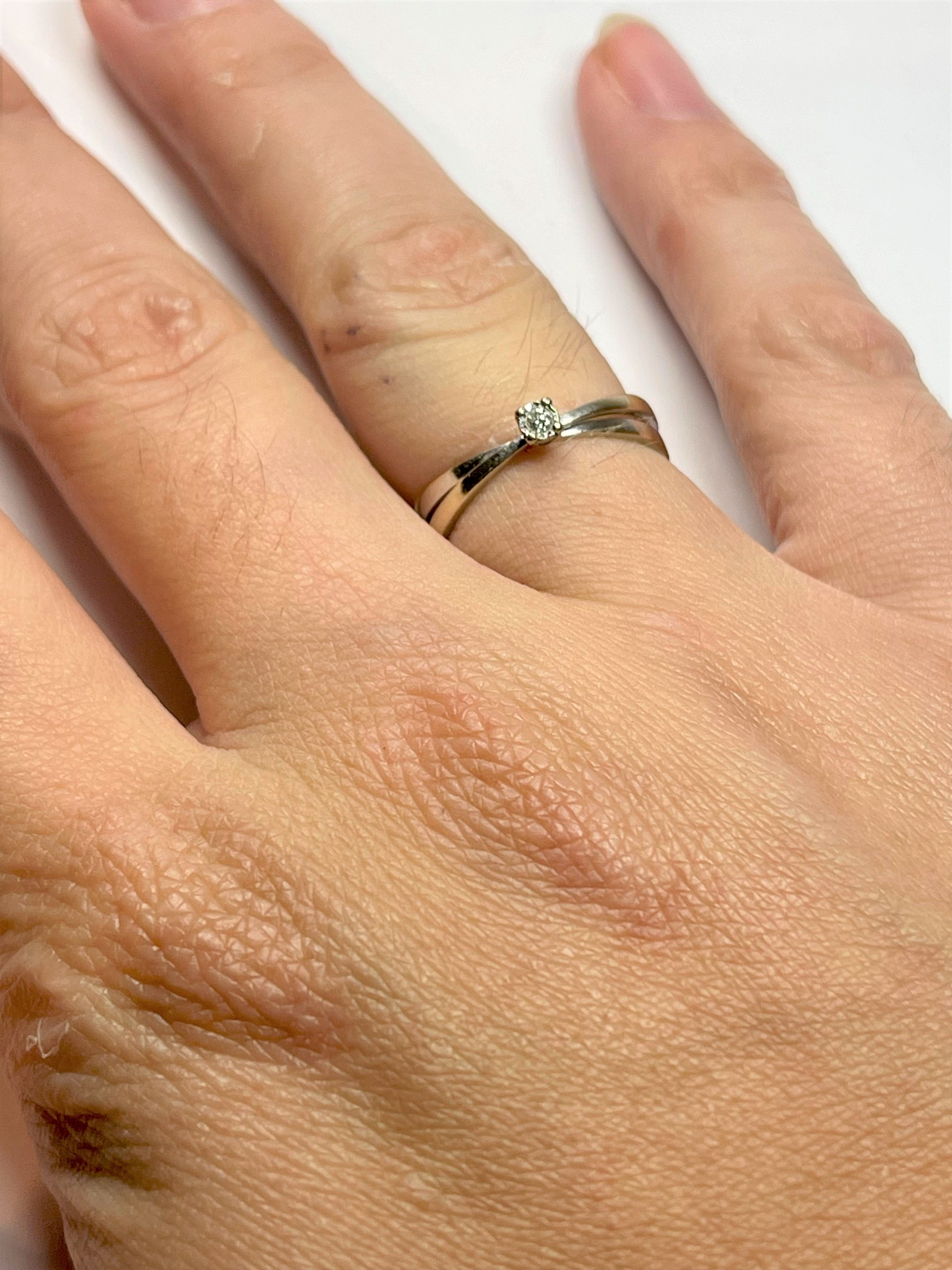 Magnifique bague en 750/1000 en or blanc, avec un 1 diamant de 0.10 carats.