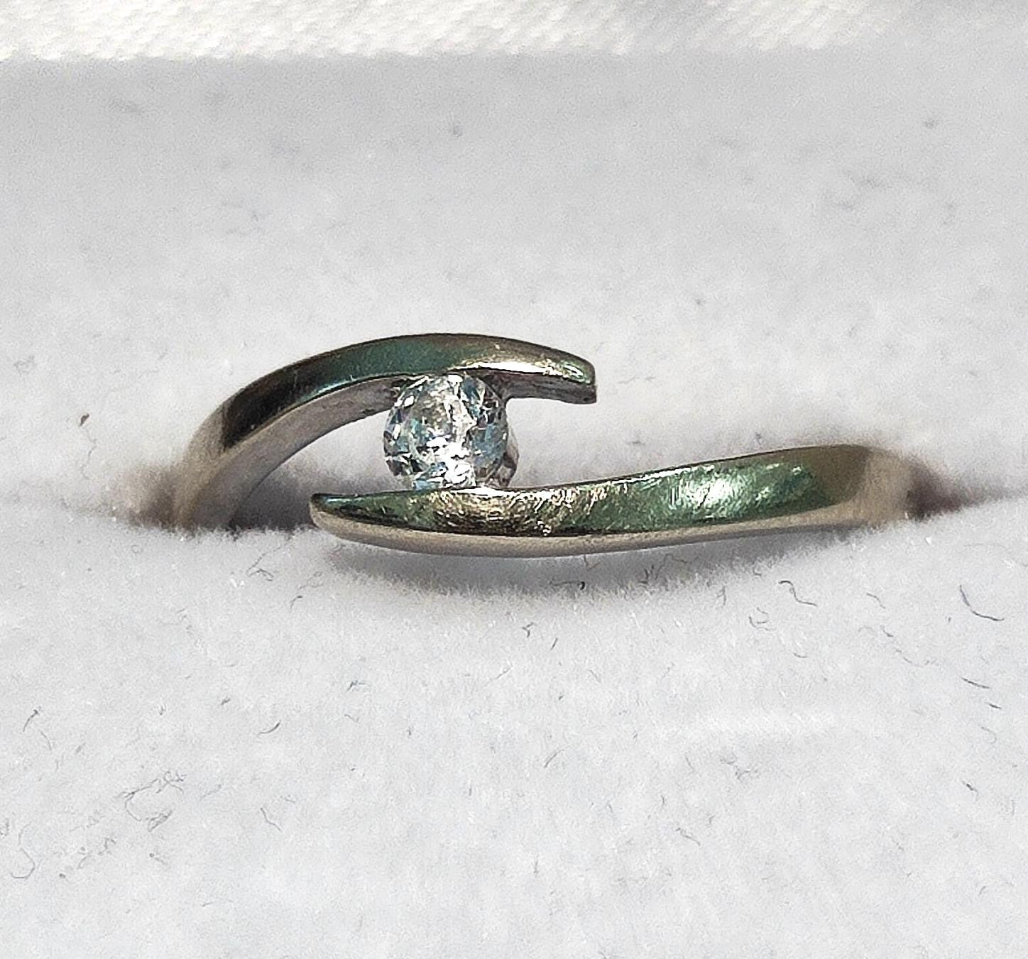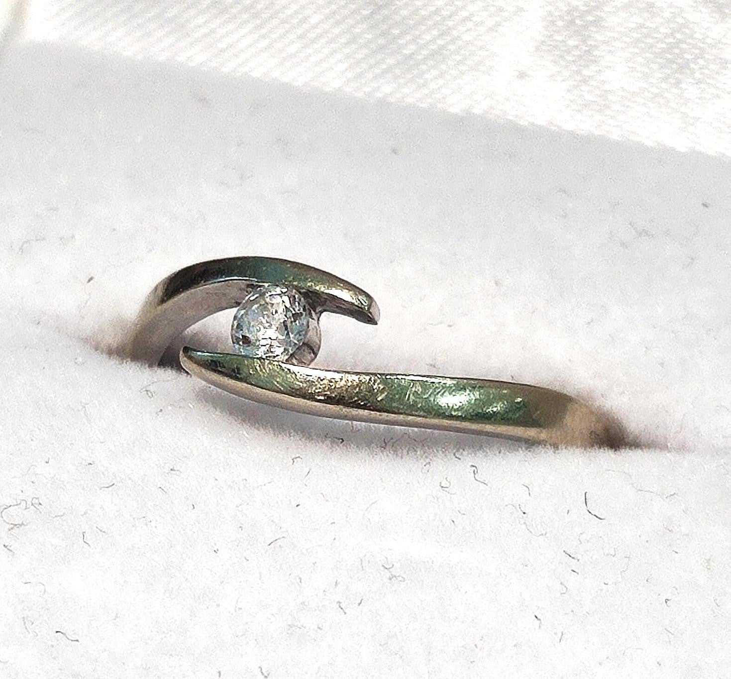 Très jolie bague en or blanc 18 carats ornée d'un oxyde de zirconium