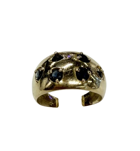 Cette bague en or jaune 18 carats est une véritable ode à l’élégance. Sertie de six saphirs de 0,3 cm, elle allie éclat et raffinement, sublimant chaque mouvement. Son poids de 5,83 g et sa taille 54 lui confèrent une belle présence, parfaite pour ceux qui aiment les bijoux de caractère.