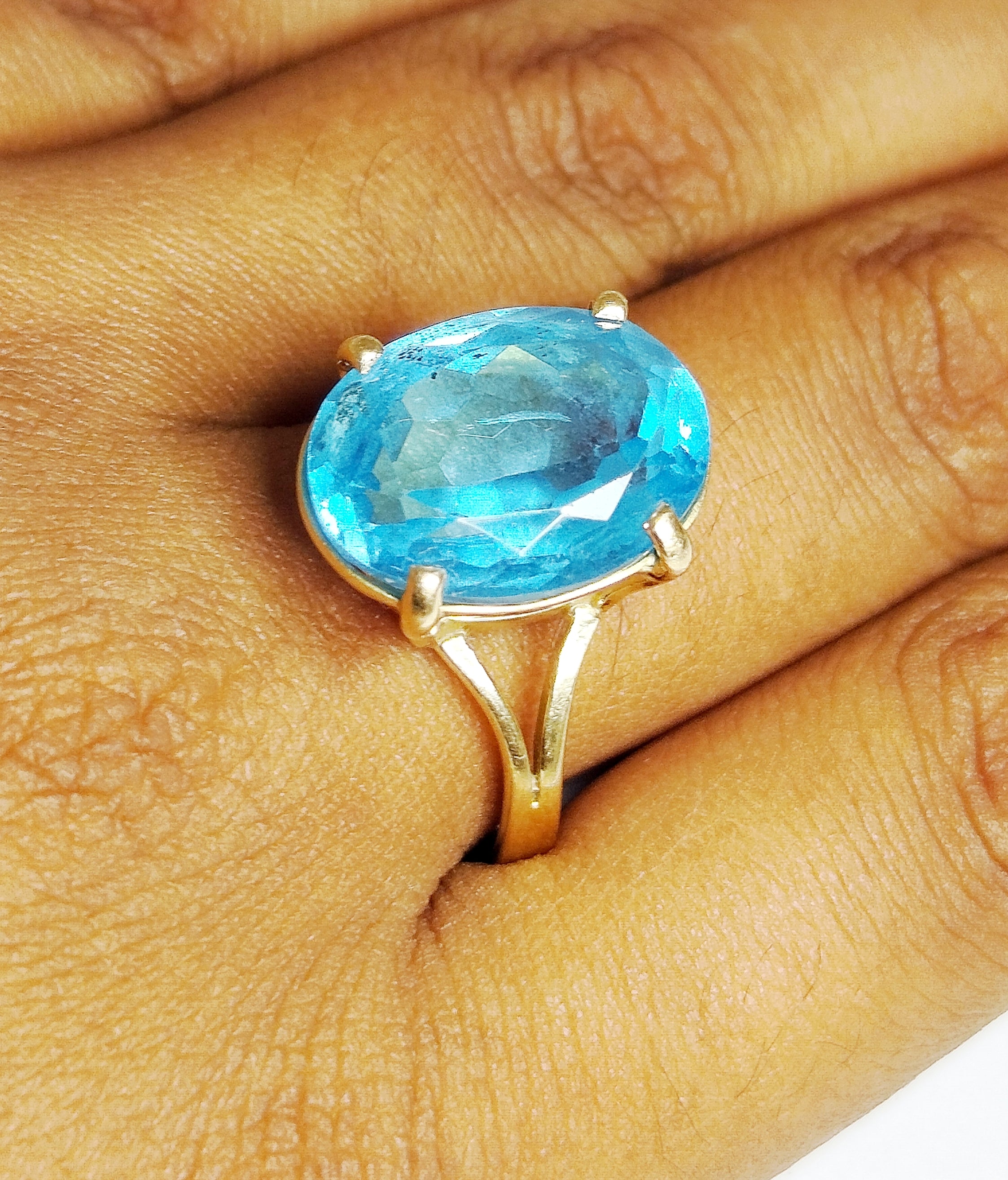 Bague empierrée en or jaune 18 carats, ornée d’une topaze. Taille 63, poids 6,07 g. Très bon état.