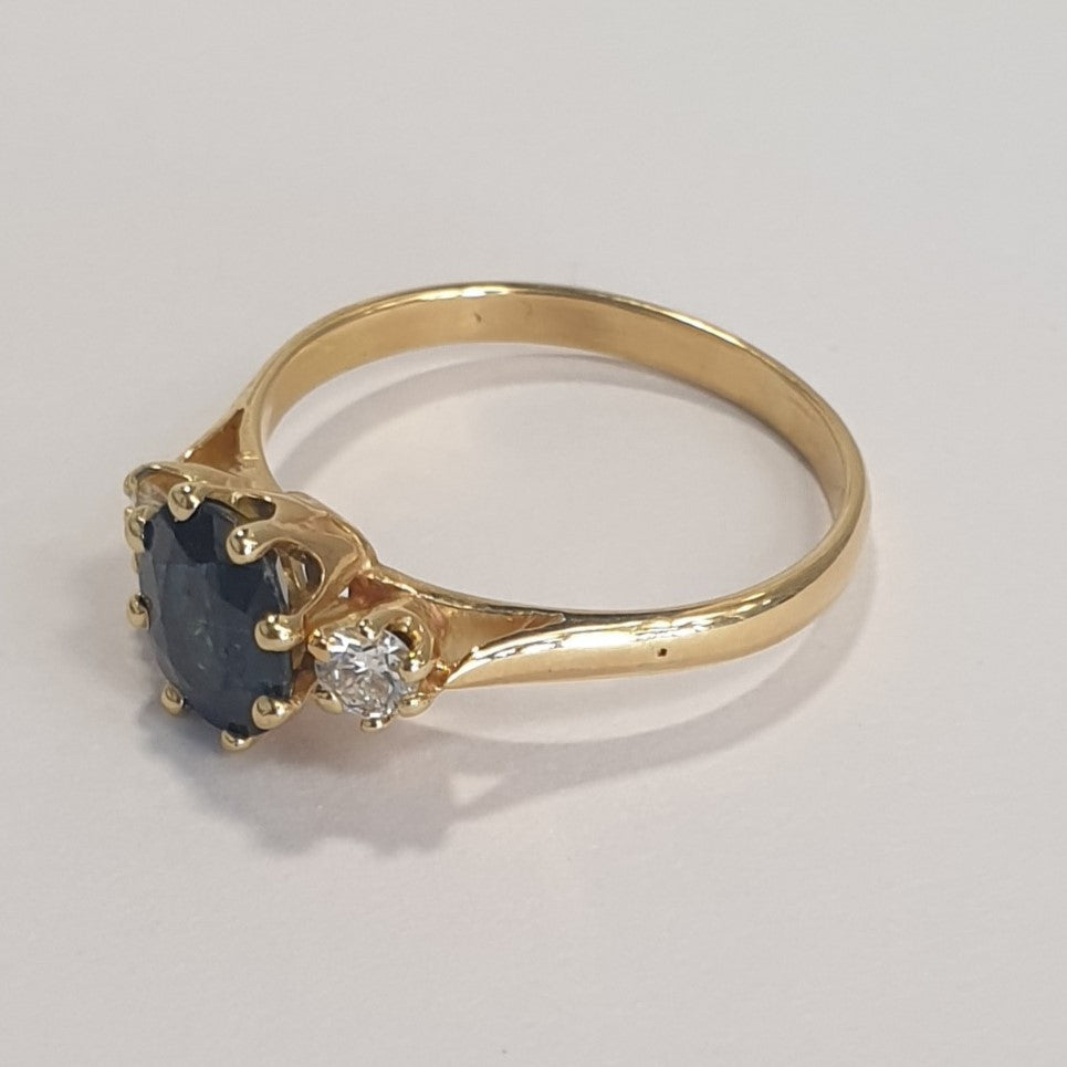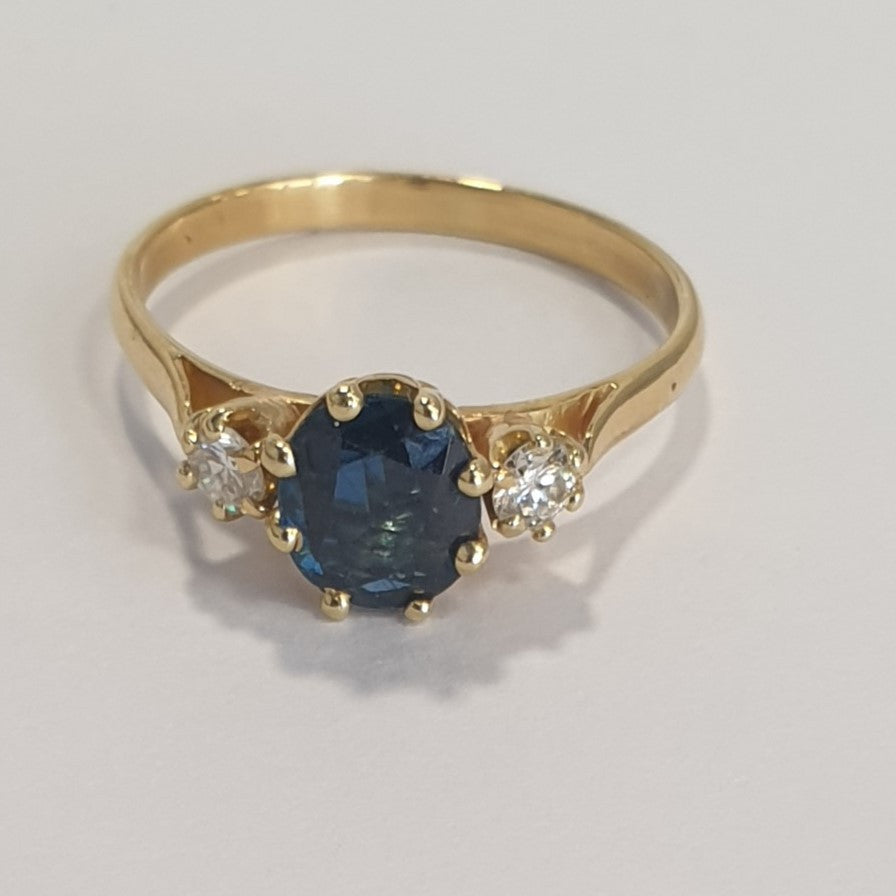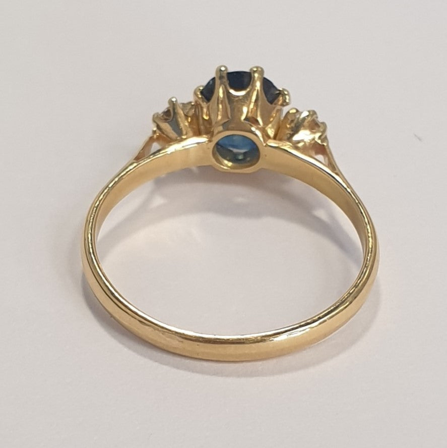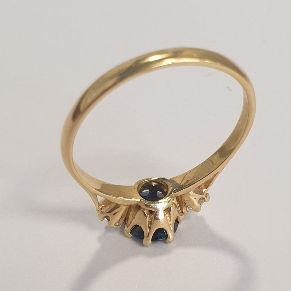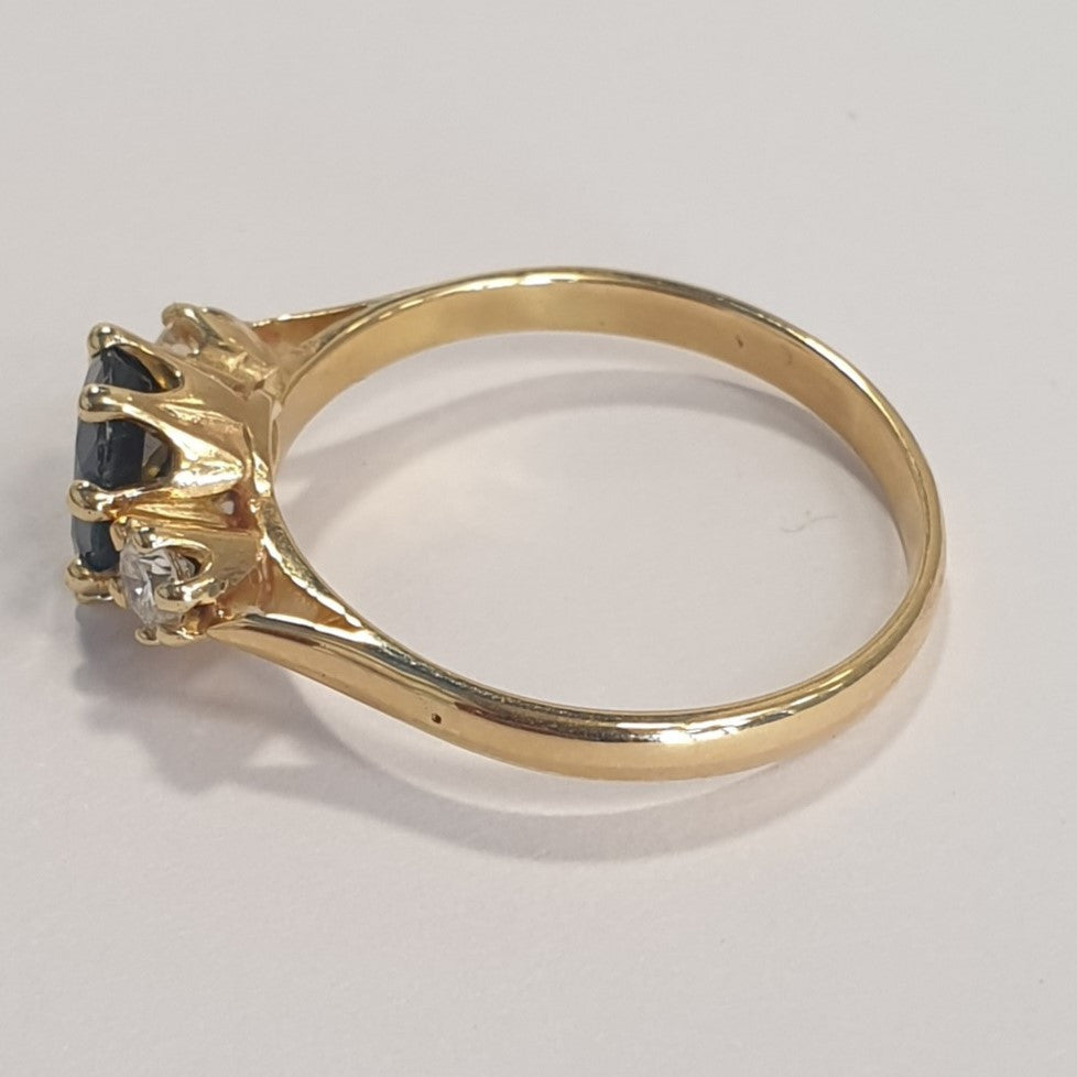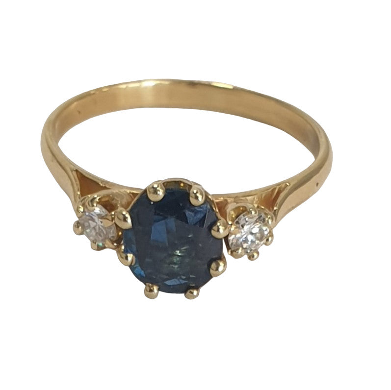 Très belle bague or jaune avec saphir et diamants