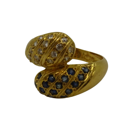 Bague en Or Jaune Diamants et Pierres Bleu 18 Carats - T48