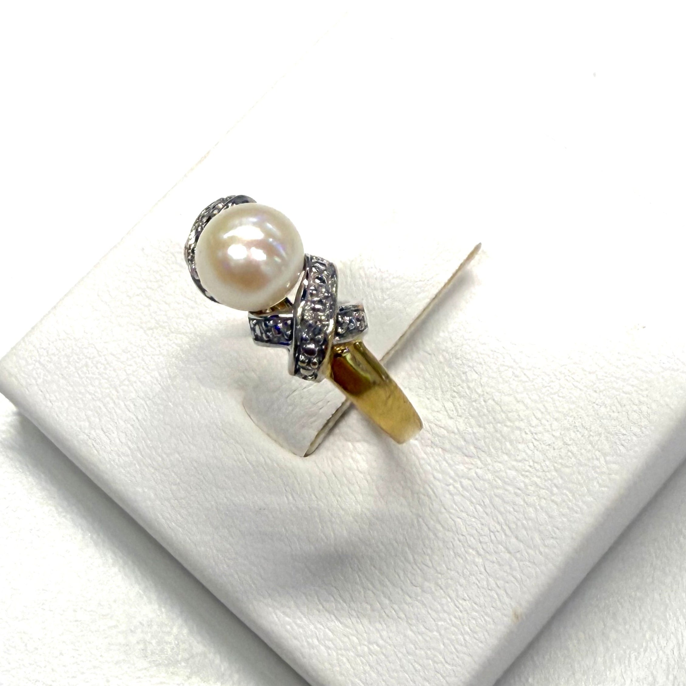 Laissez-vous séduire par cette bague élégante et raffinée, conçue en or jaune et or blanc 18K. Son design intemporel met en valeur une somptueuse perle d’eau douce, sublimée par deux éclats de diamants qui lui apportent une touche d’éclat et de finesse. Un bijou idéal pour une occasion spéciale ou un cadeau d’exception.