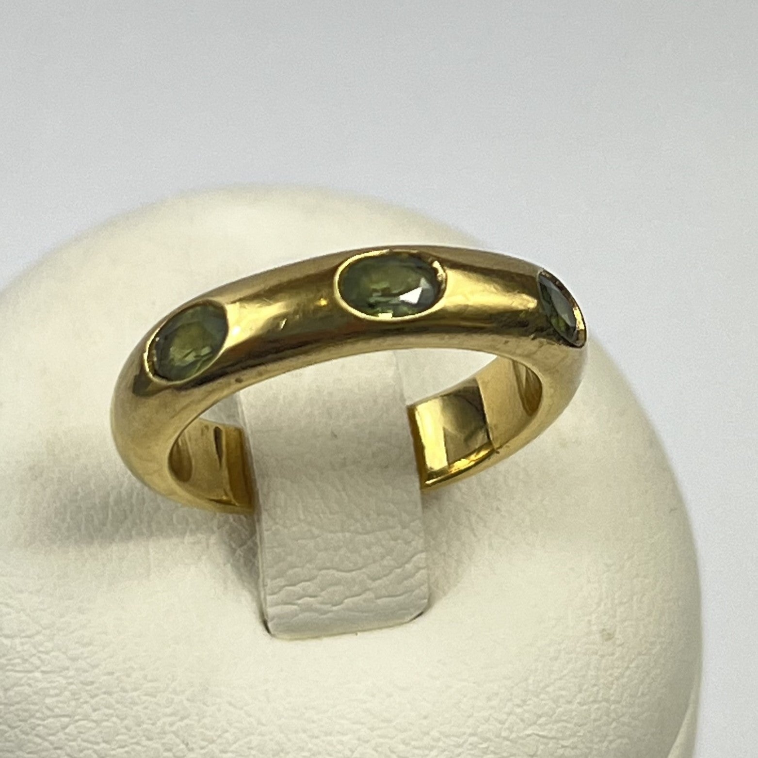 Bague Poiray jonc en or jaune 750/1000 sertie avec 3 pierres fines vertes