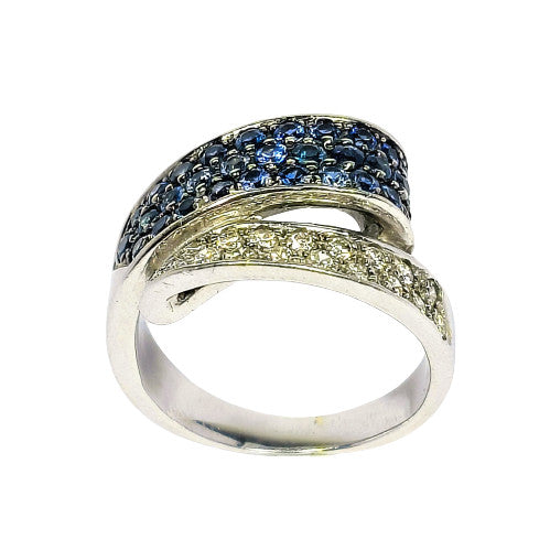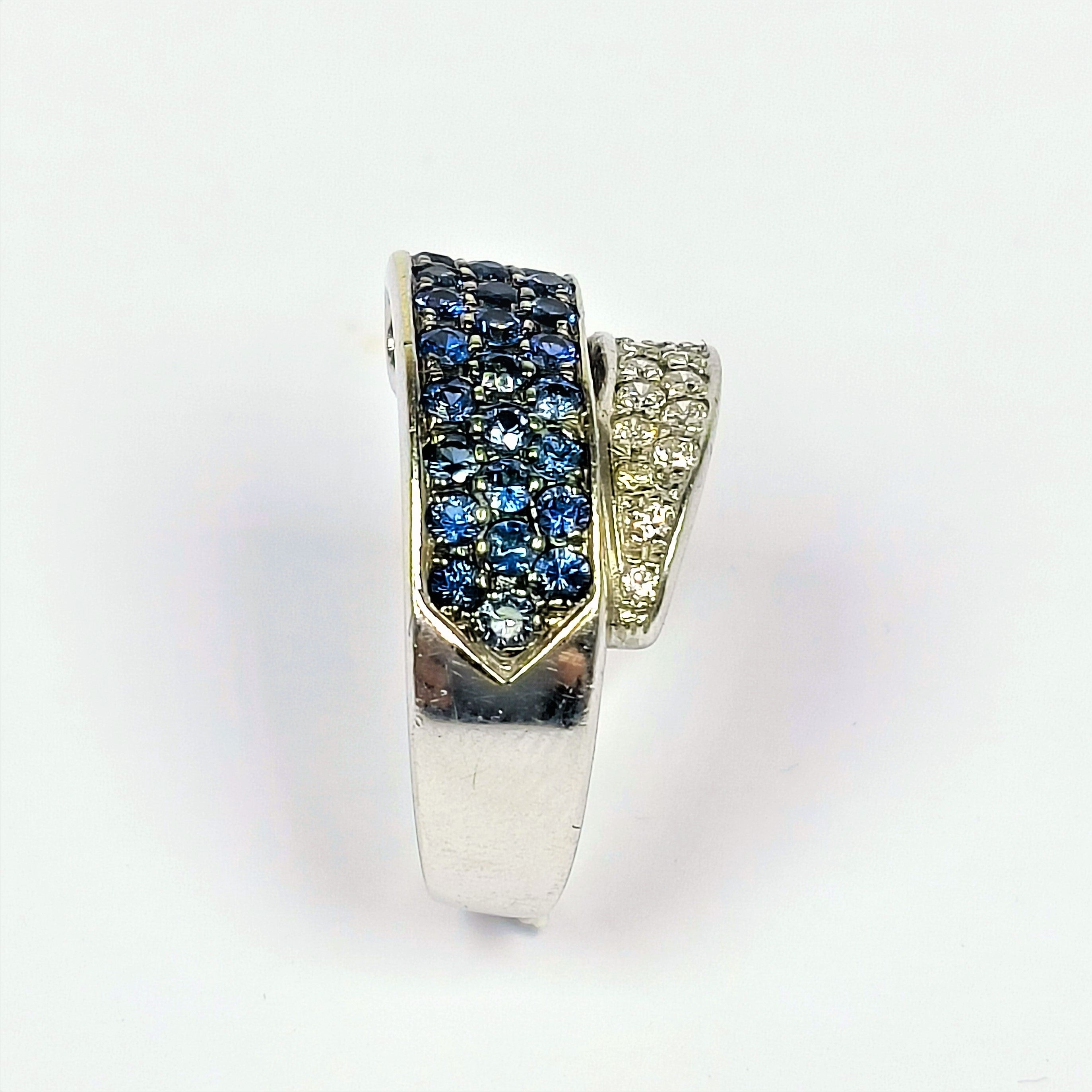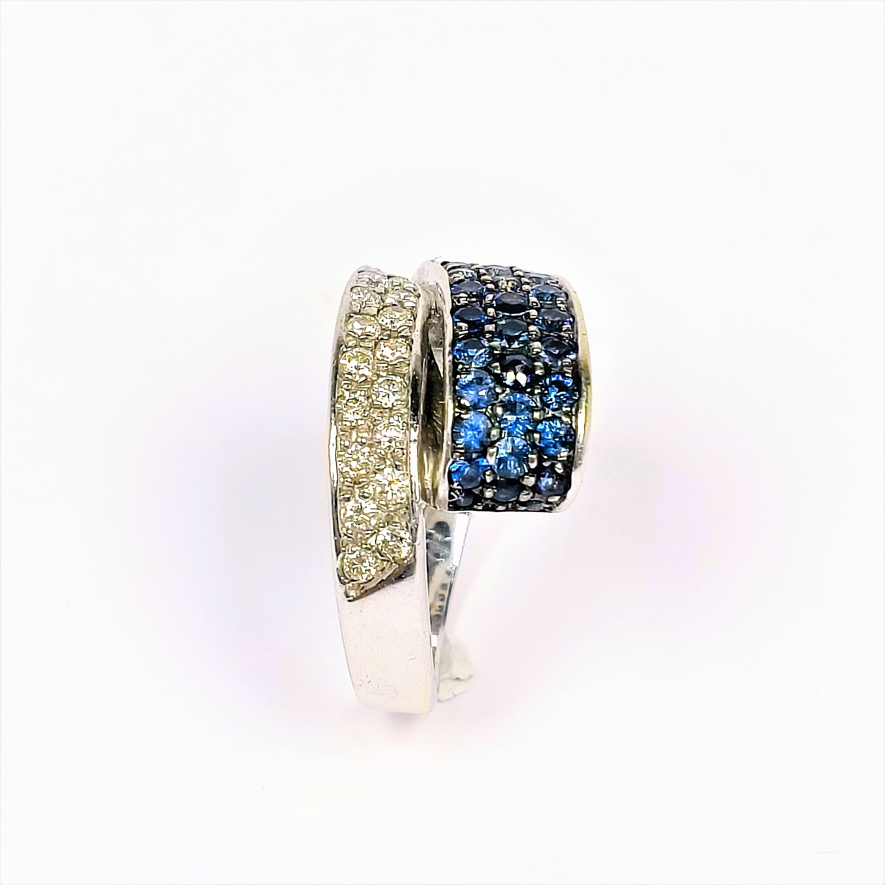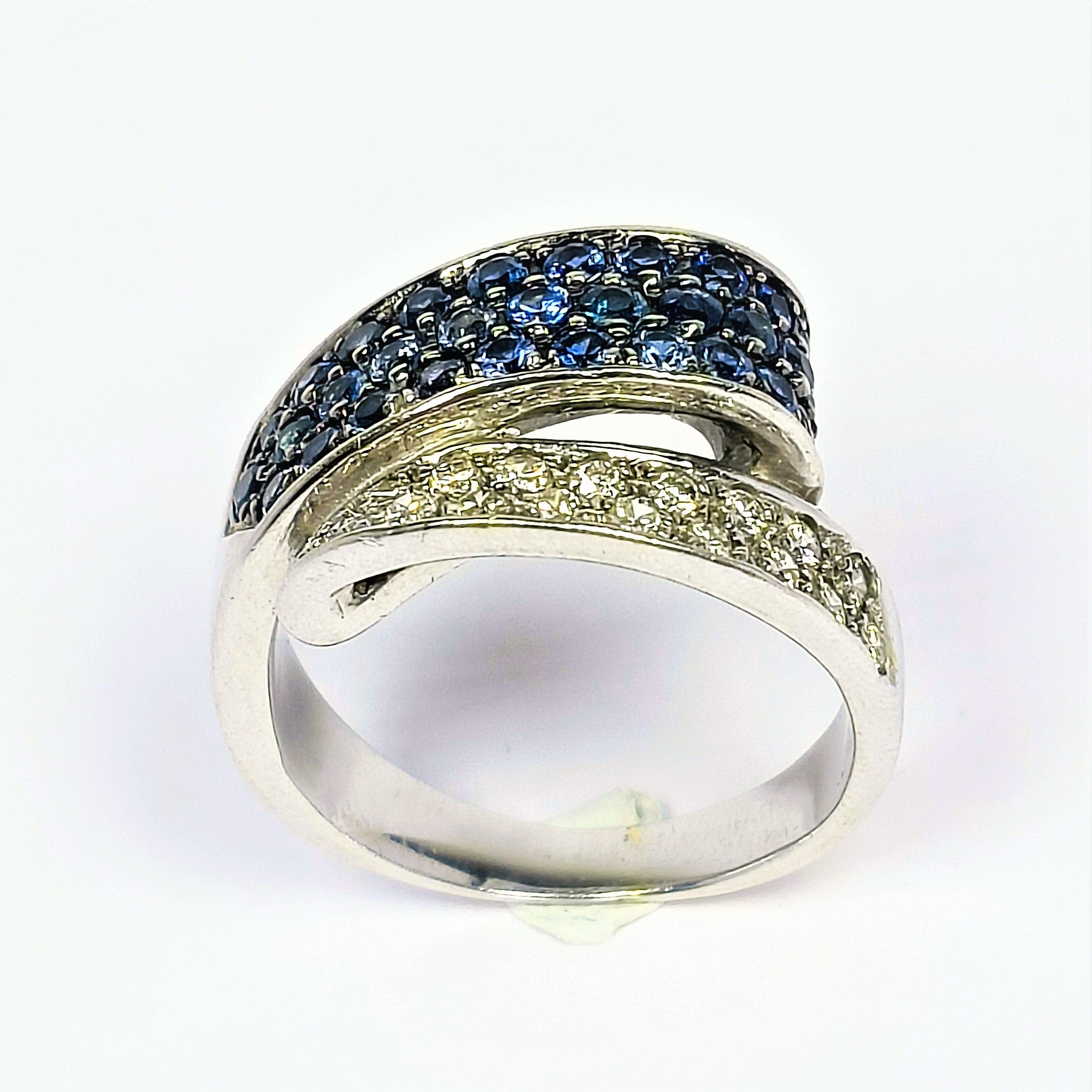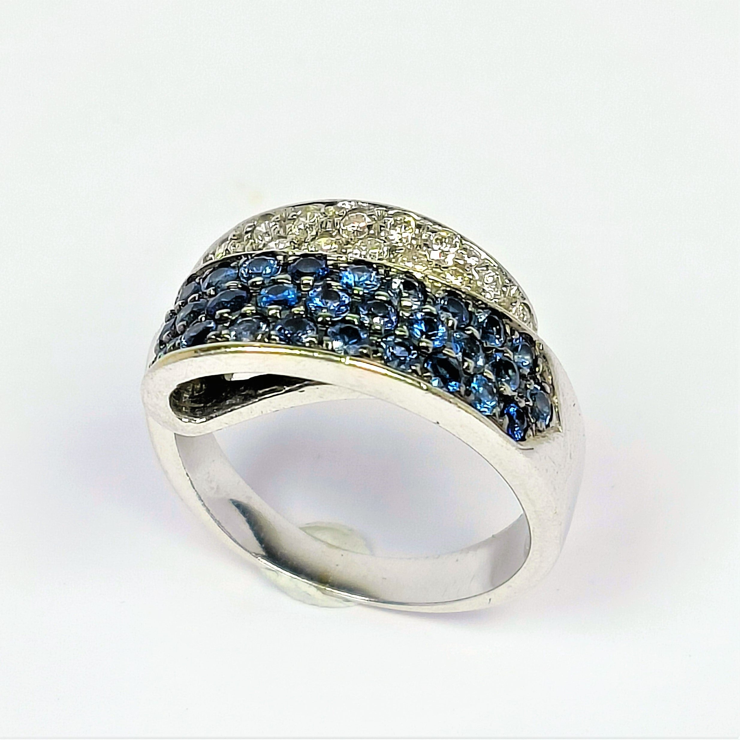 Très jolie bague en or blanc 18k avec diamants et saphirs