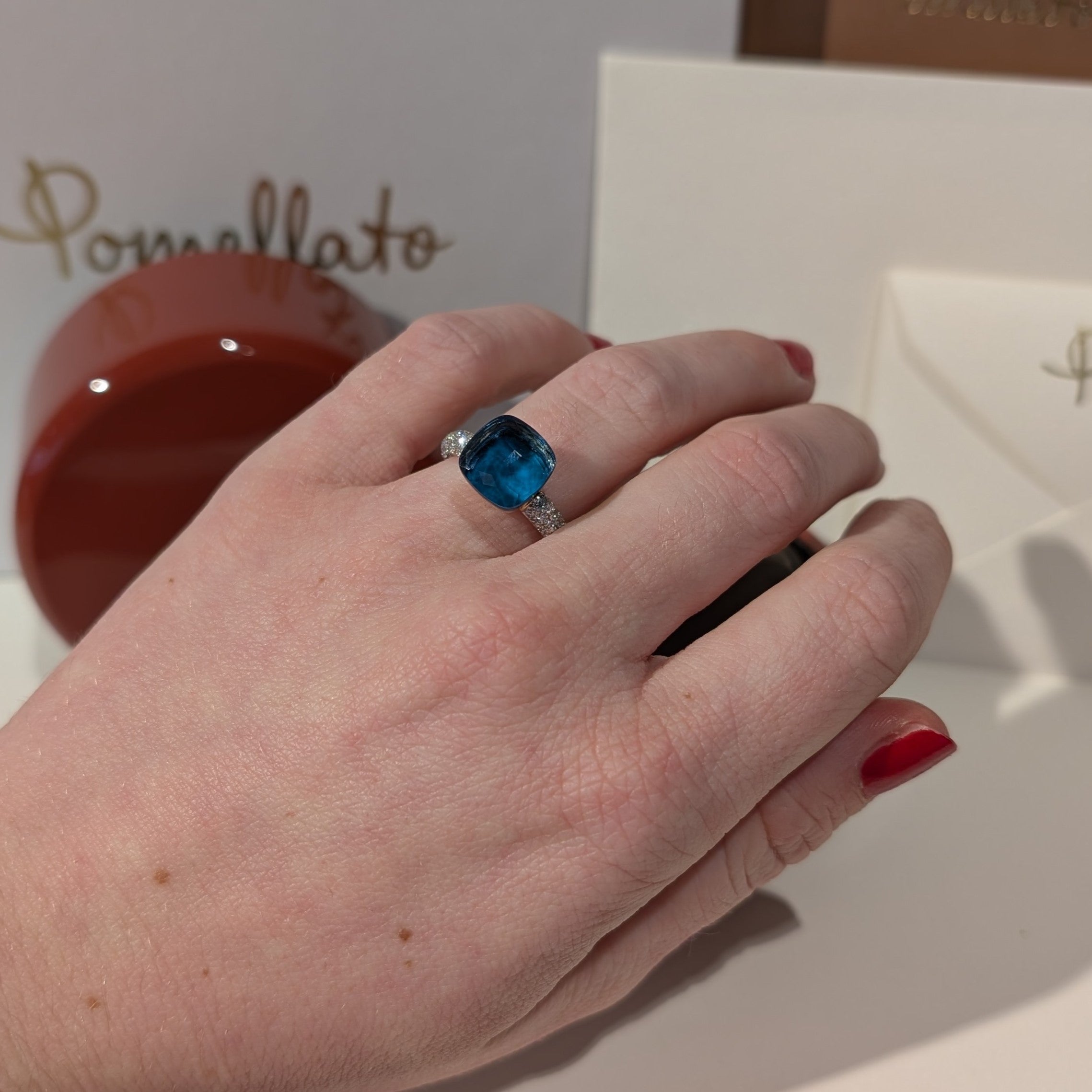 • Bague Pomellato Diamants et Topaze Bleue