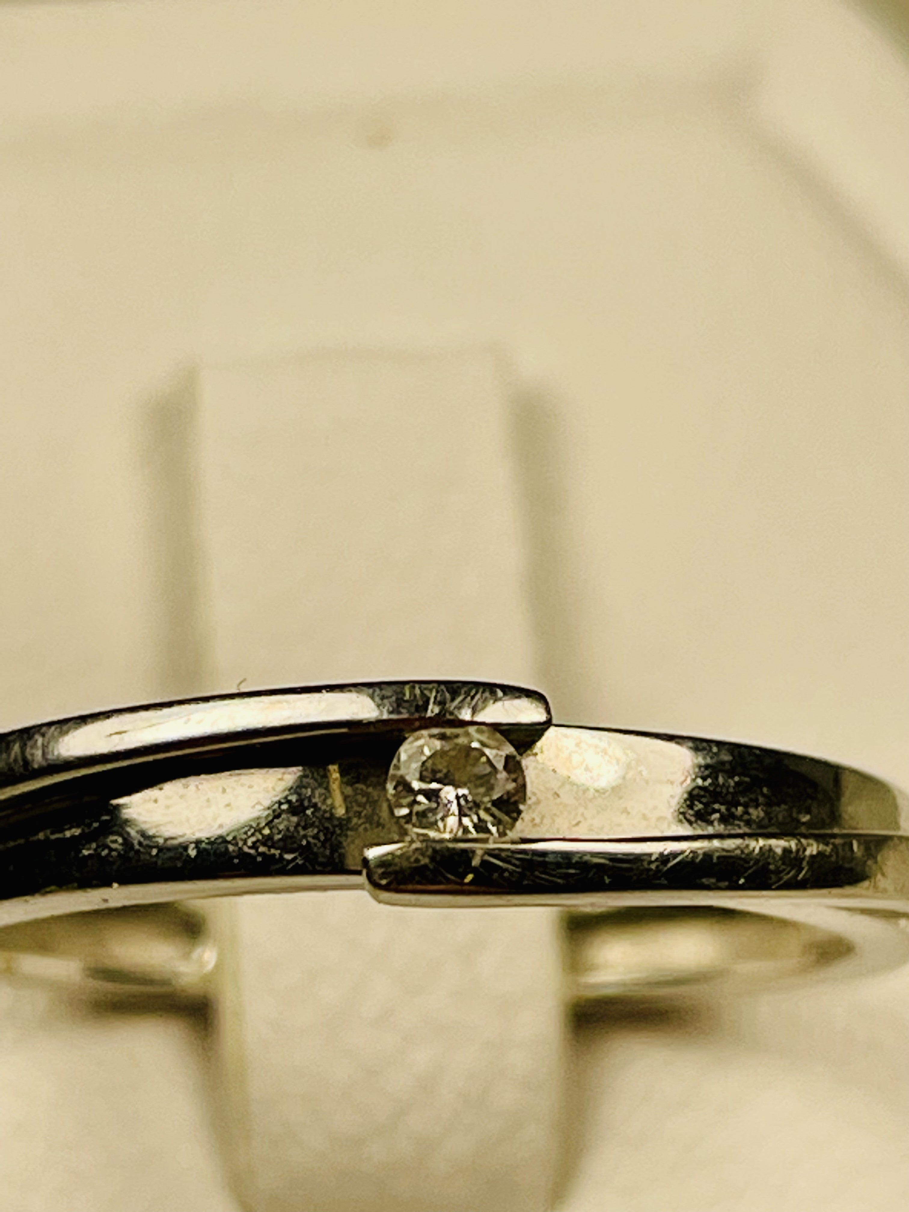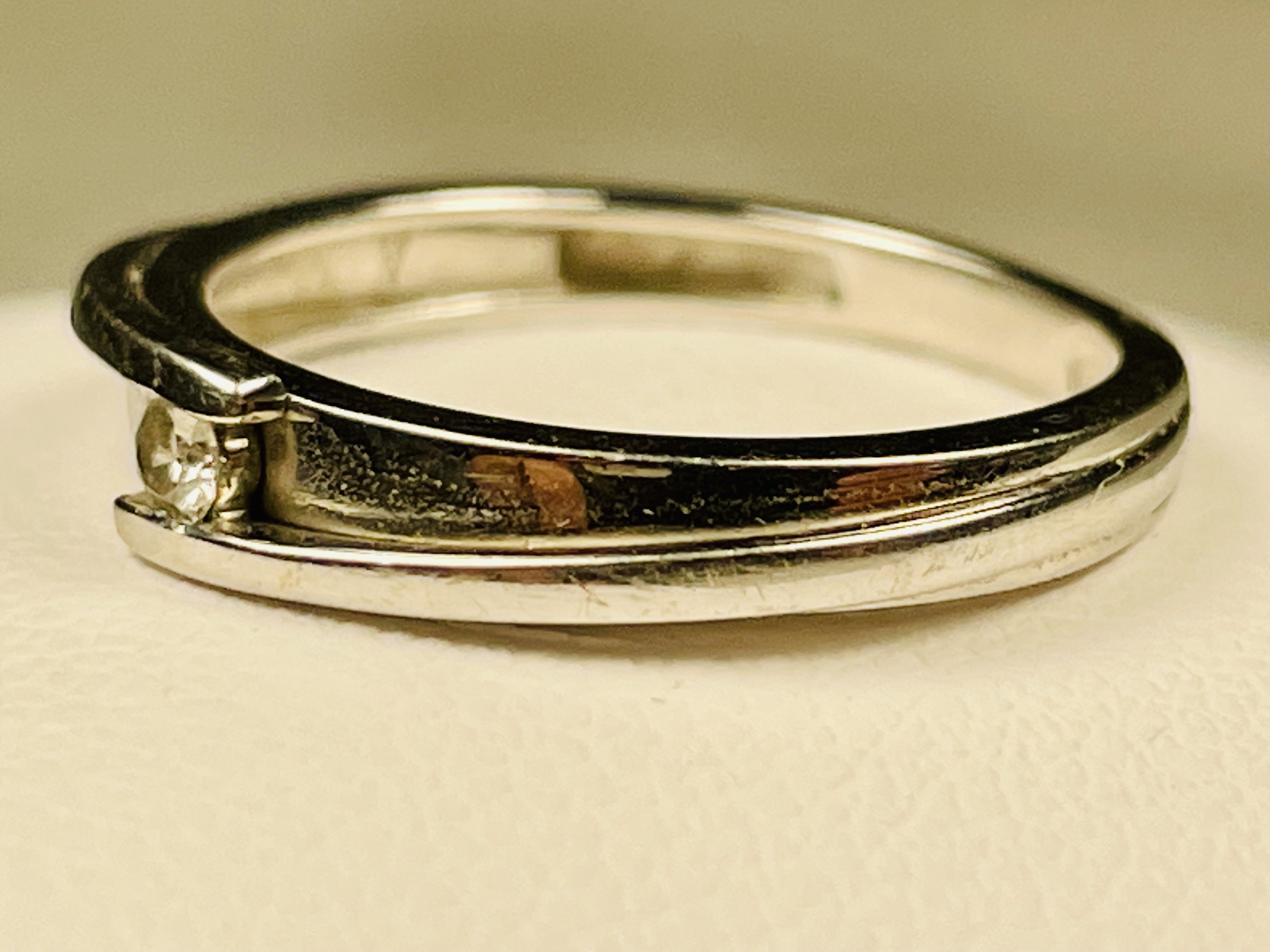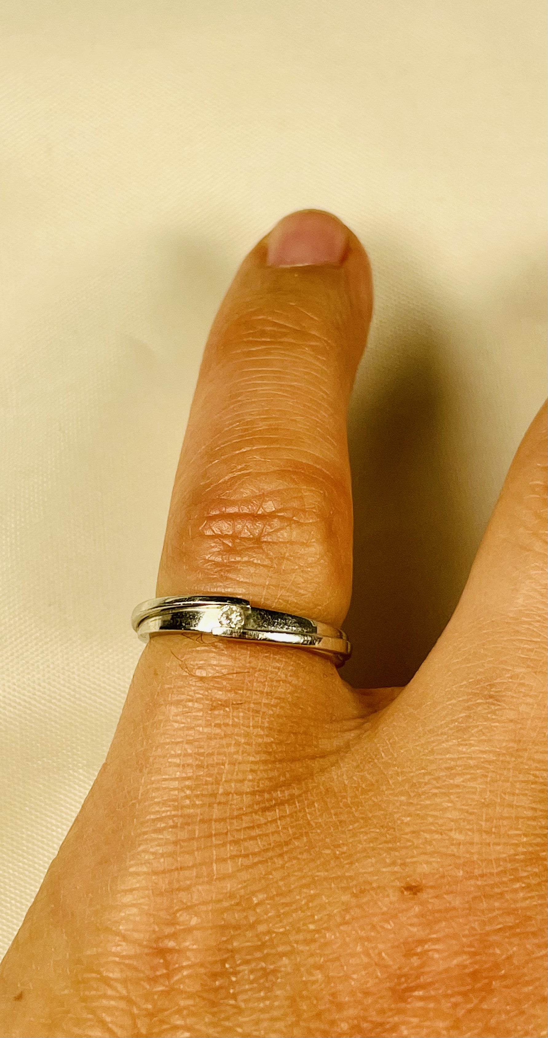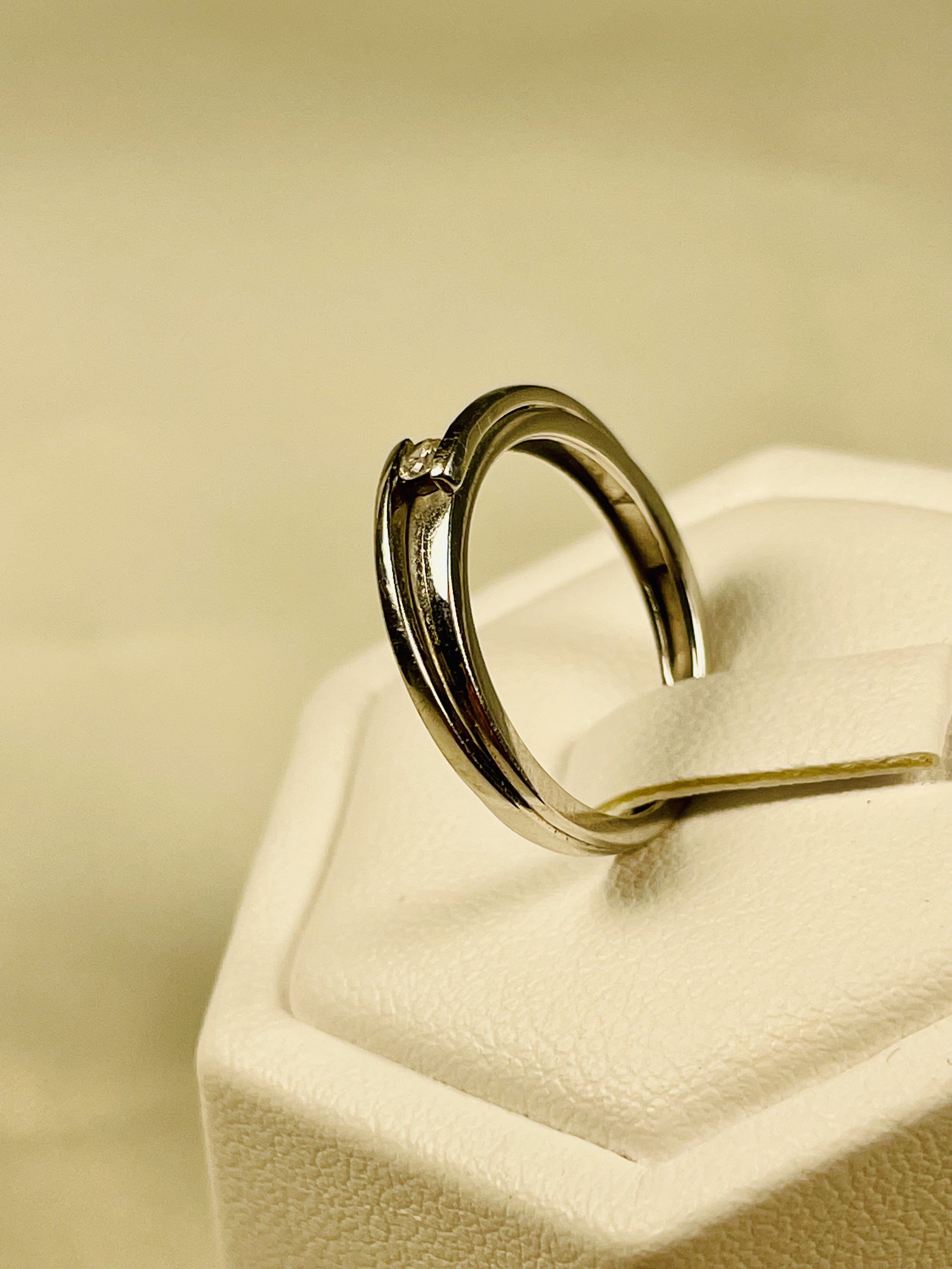 Bague Très Fine surmontée d'un beau diamant brillant d'environ 0,05 Ct