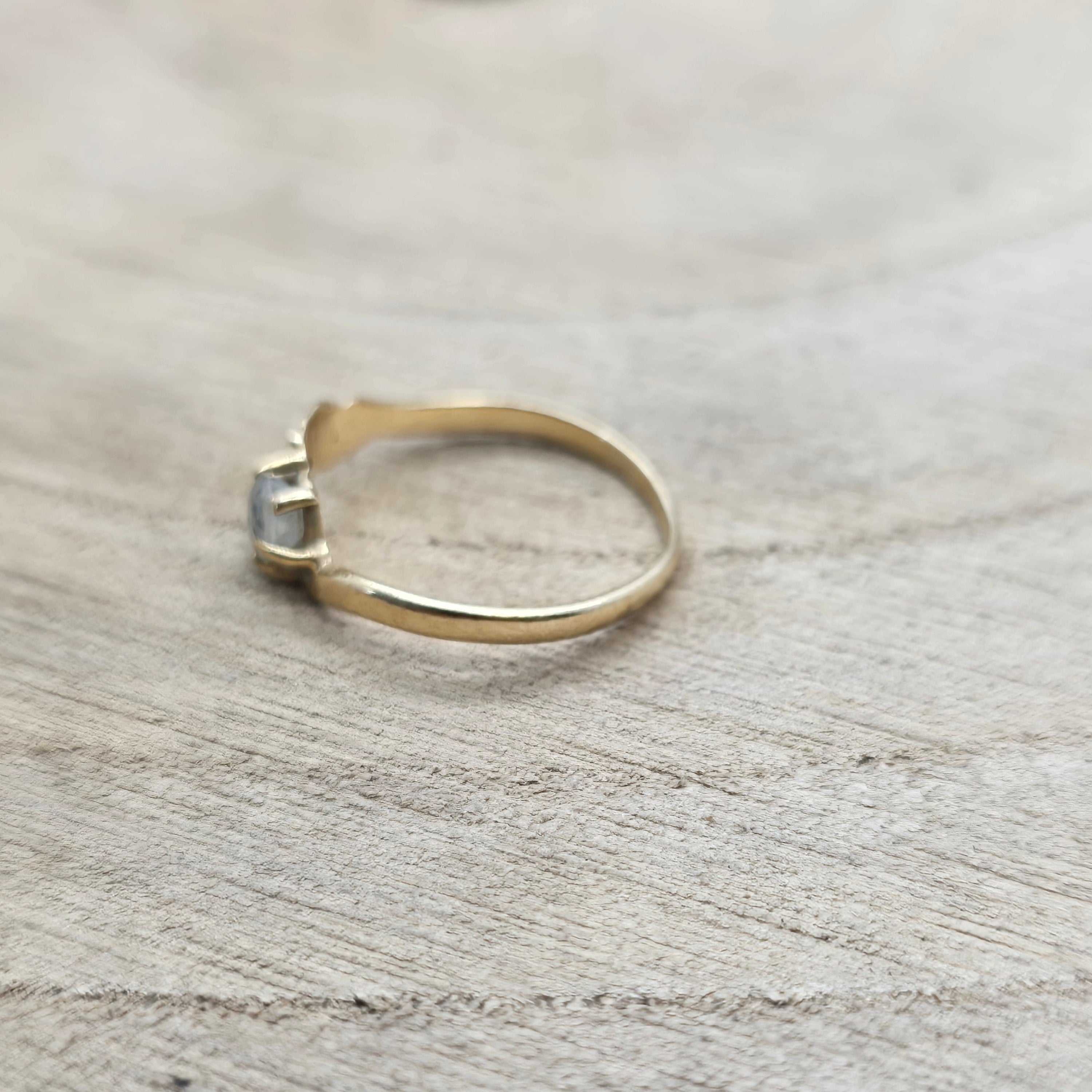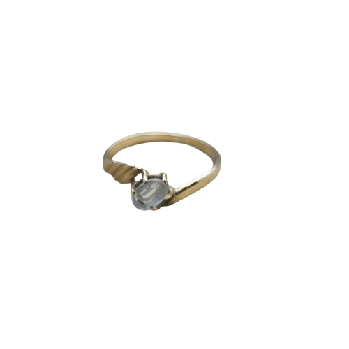 Bague solitaire en or jaune 18 carats, ornée d’un oxyde de zirconium blanc. Taille 53, poids 1,53 g. Un modèle raffiné et éclatant, en très bon état.