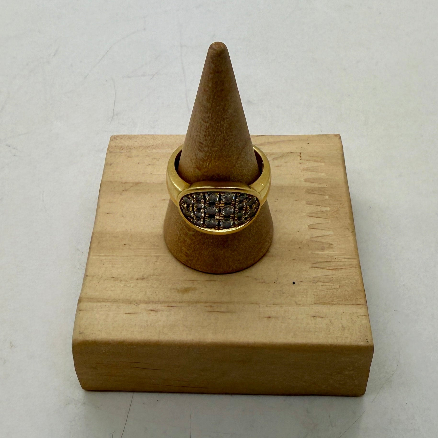 Bague Tank en or jaune 18 carats (8,91g - taille 56) ornée de 18 zirconiums brillants. Authentifiée par le poinçon tête d'aigle, ce modèle intemporel allie robustesse et élégance. En bon état, parfaite pour un look sophistiqué au quotidien.