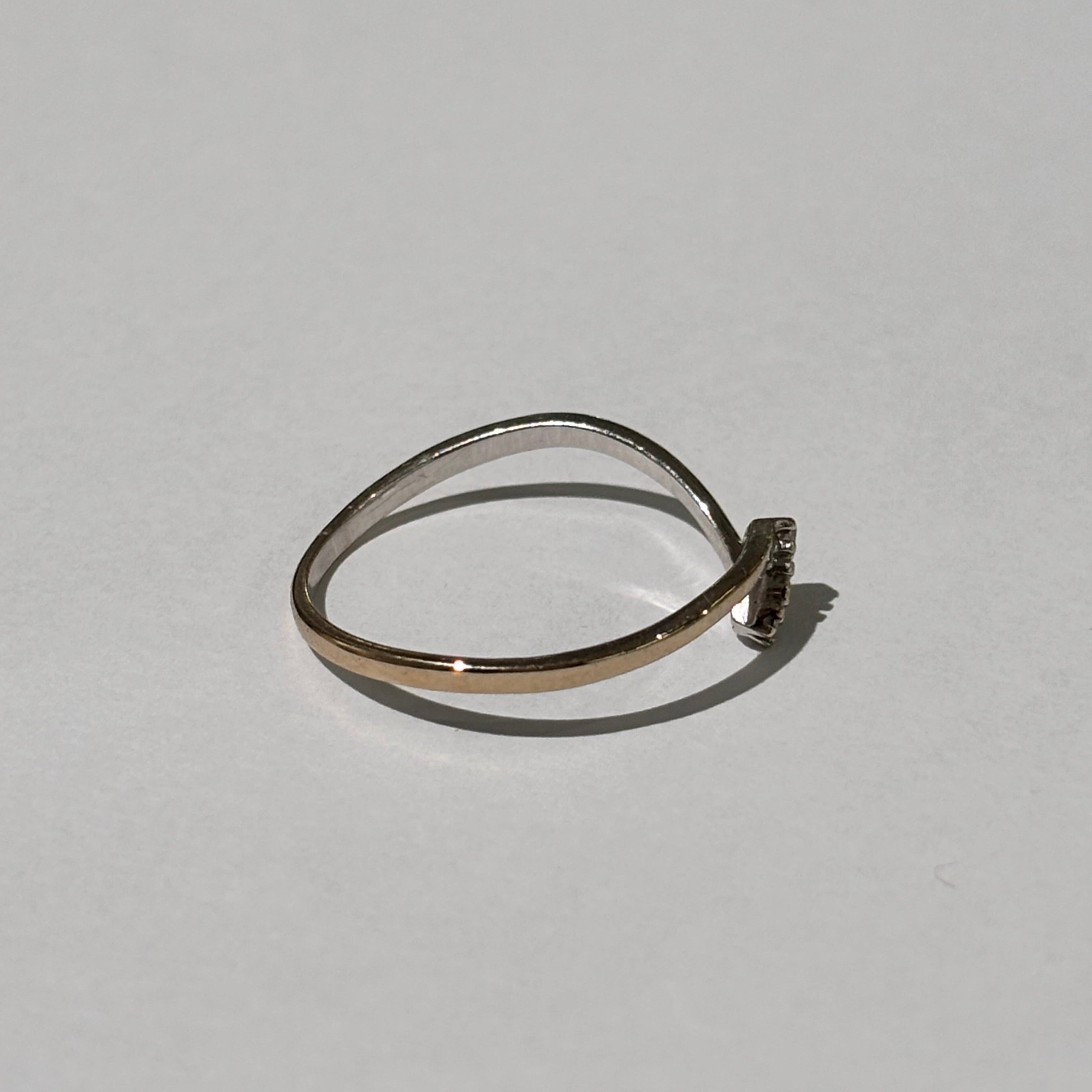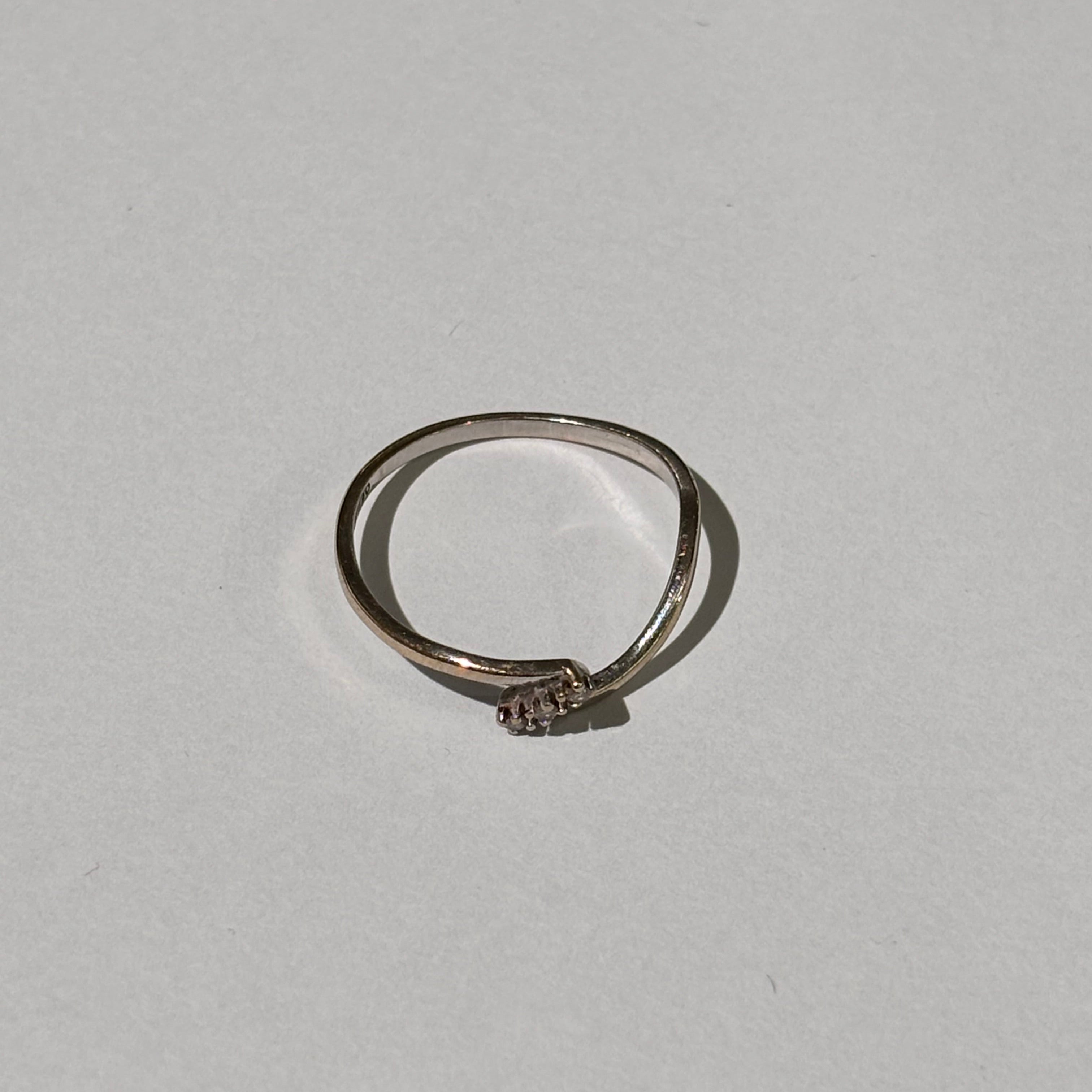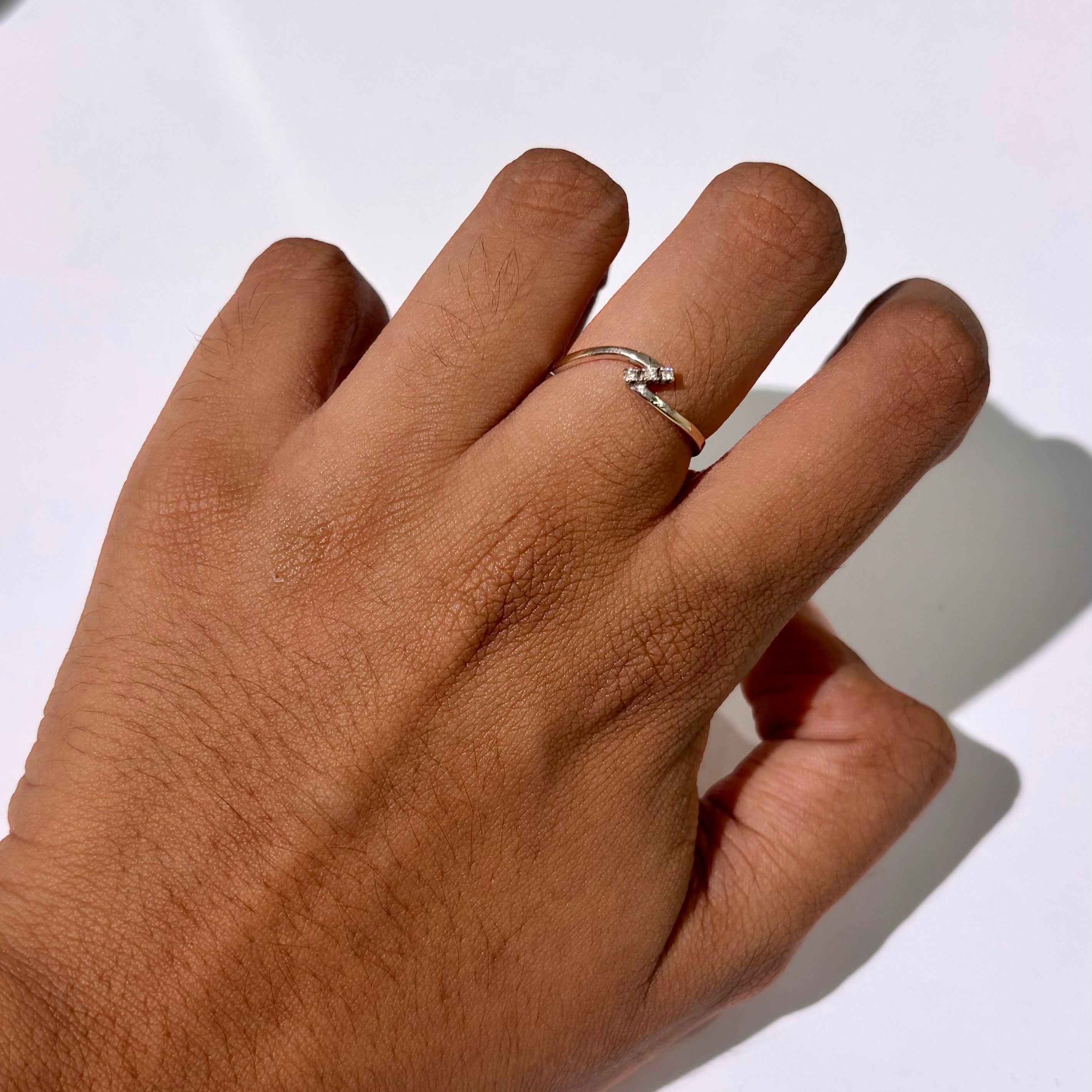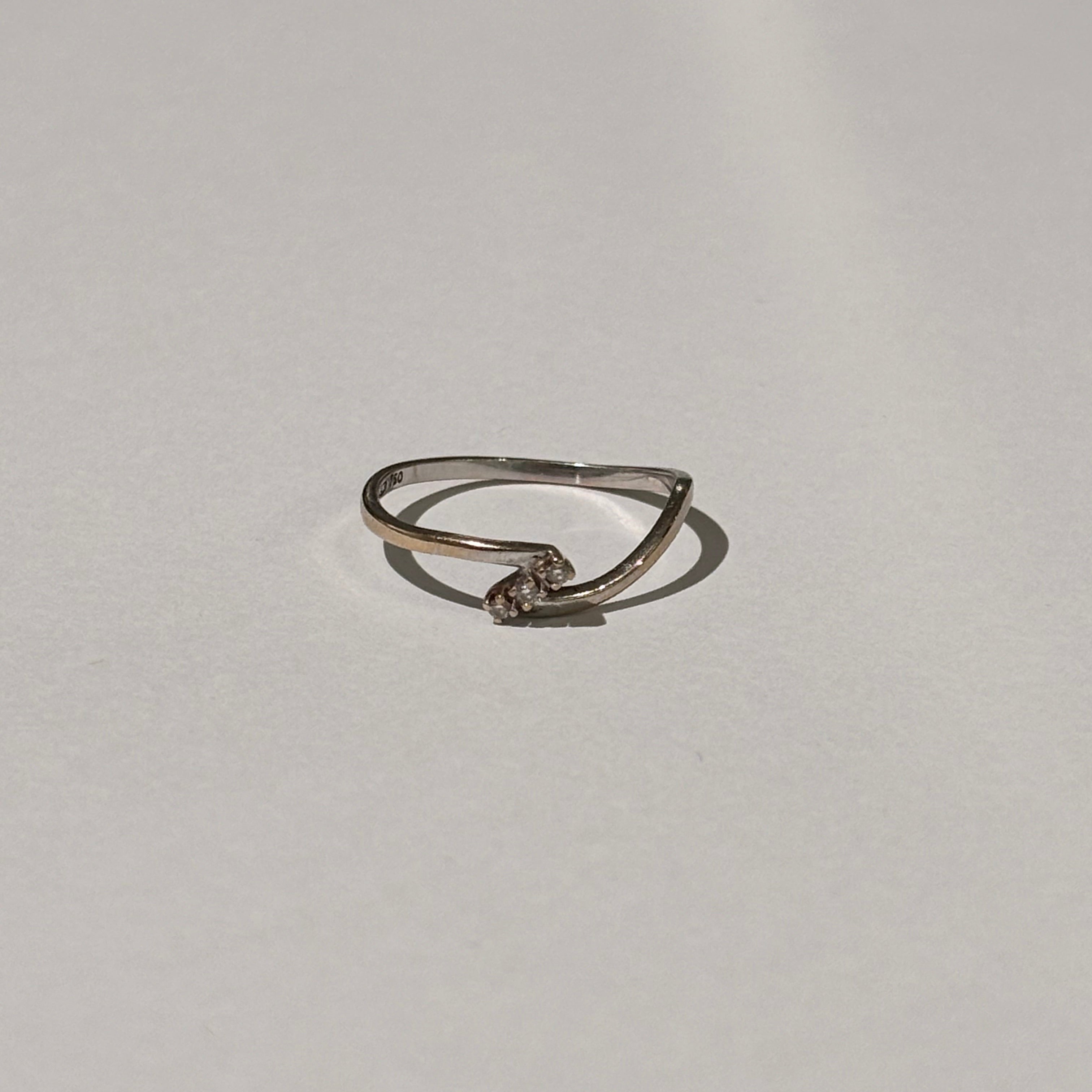 Bague empierrée en or blanc 18 carats (750/1000), poinçonnée 750, d’un poids de 1,20 gramme et de taille 53. Elle est ornée de 3 diamants et se présente dans un état comme neuf.