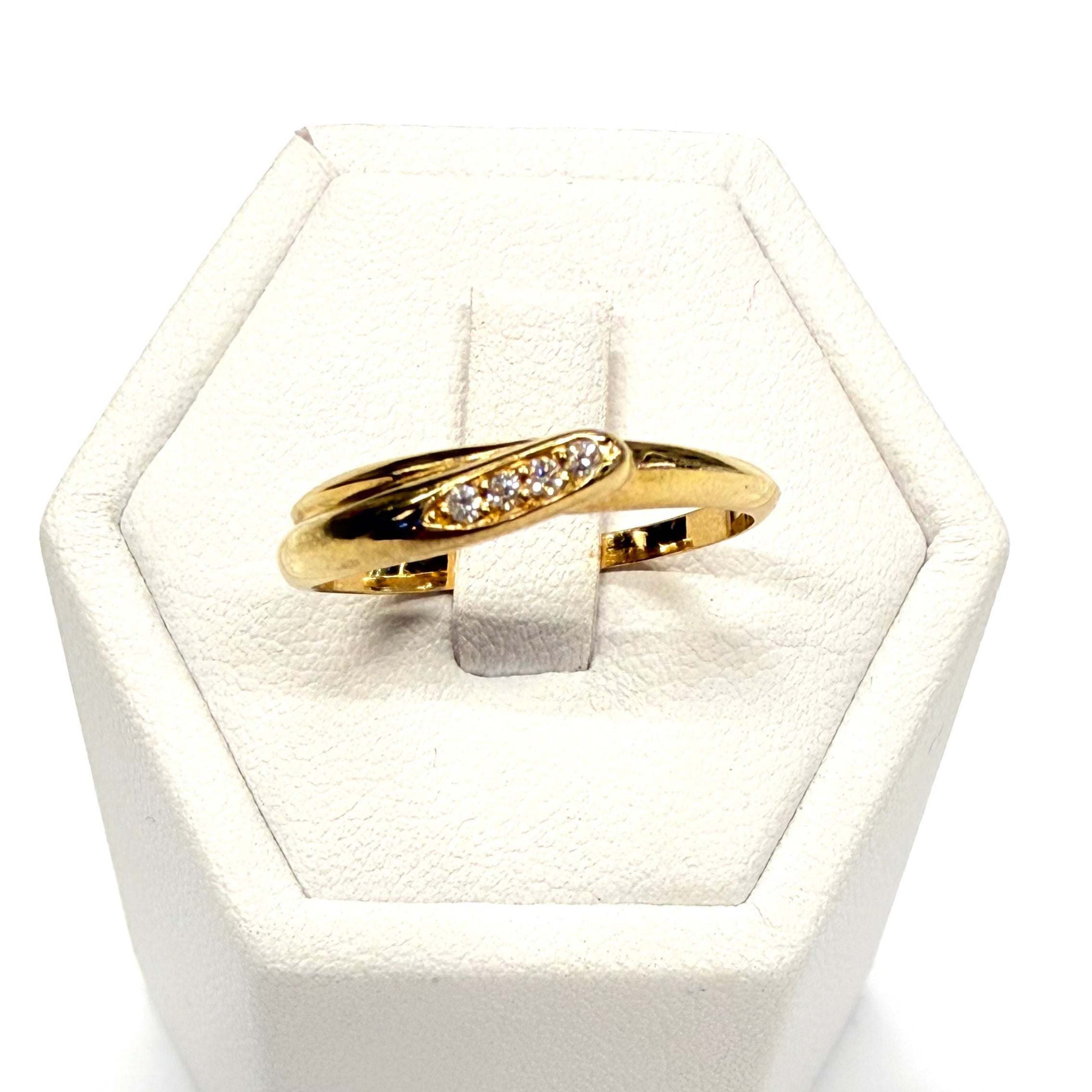 bague en or jaune 18 carats (2,42 g) ornée de 4 éclats de diamants. Son design empierré élégant met en valeur la brillance naturelle des pierres. Taille 56, très bon état, parfaite pour un cadeau ou un bijou à porter au quotidien.