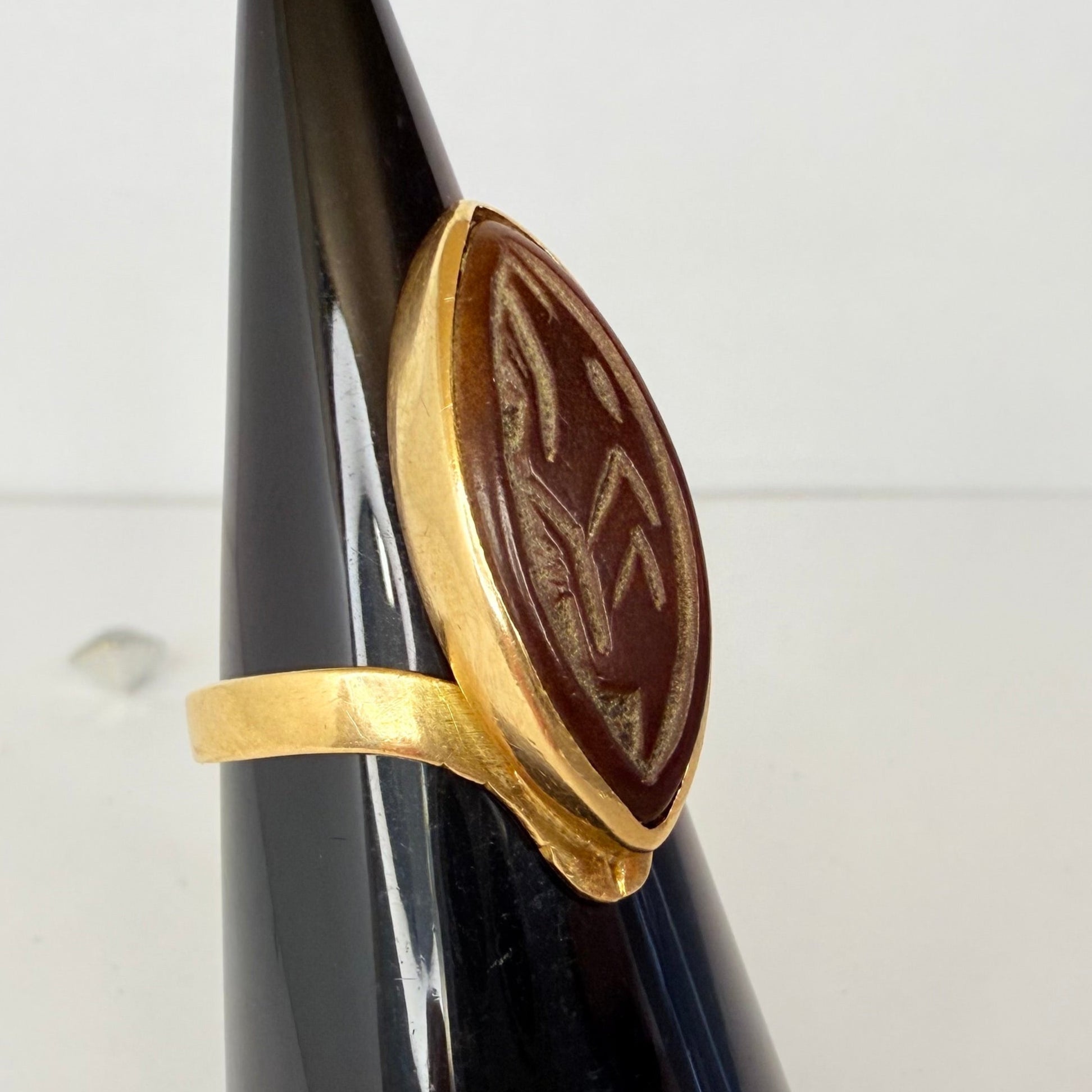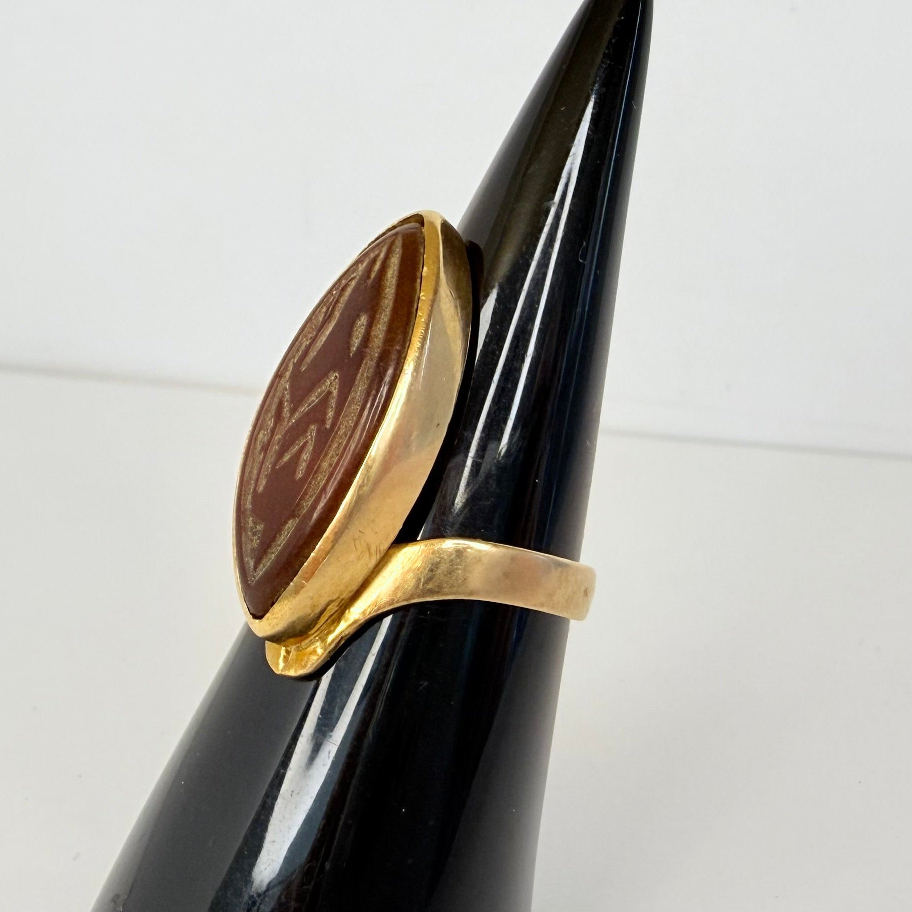Découvrez cette magnifique bague en or jaune 750/1000 (18 carats), sublimée par une pierre africaine au charme unique. Avec un poids de 5 grammes et une taille 53, mêlant tradition et élégance. Son titrage en or massif et son poinçon 750 garantissent une qualité exceptionnelle.