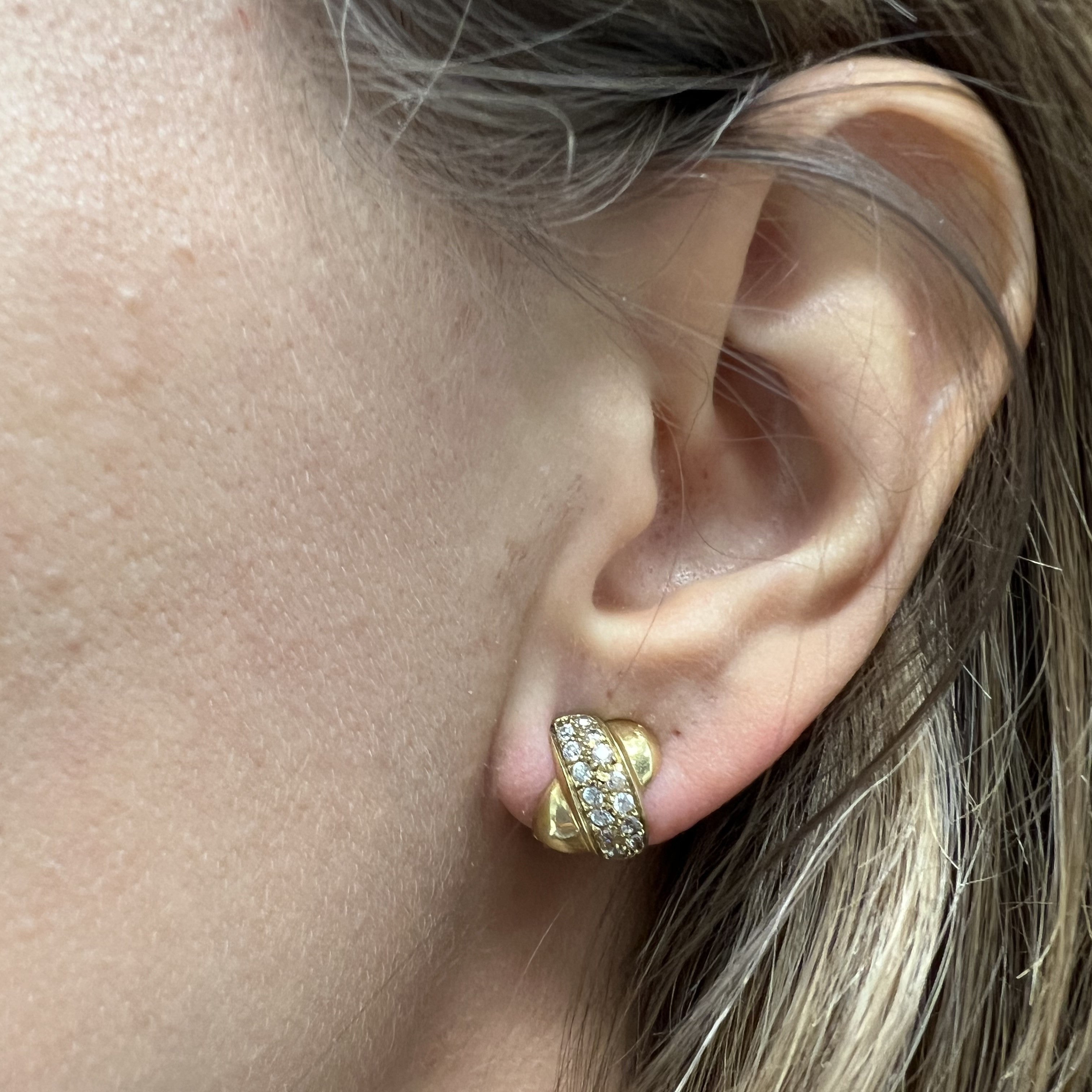 Boucles d'oreille boutons clips avec oxydes en or jaune 750/1000